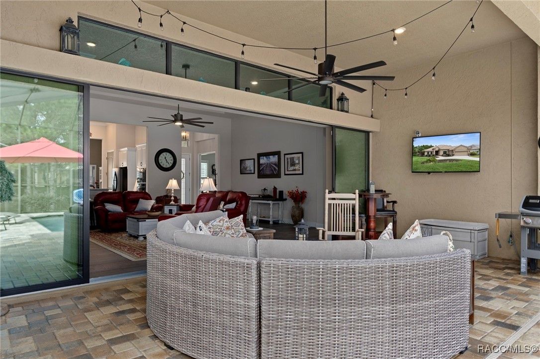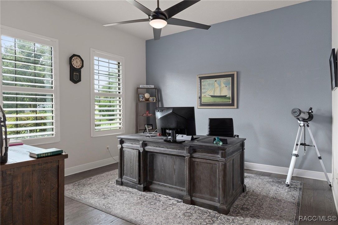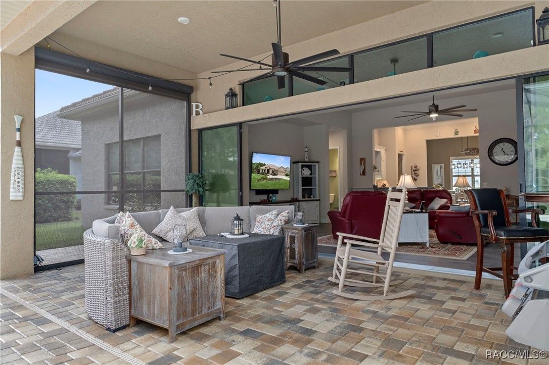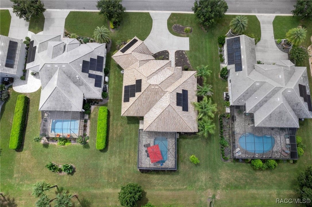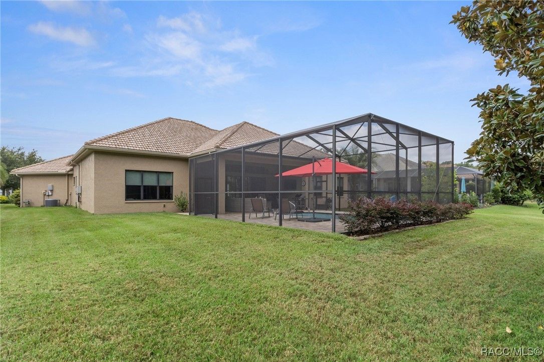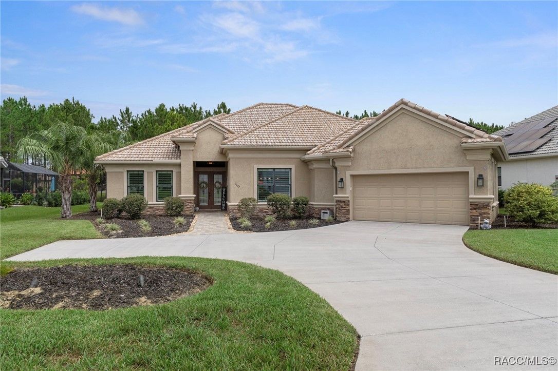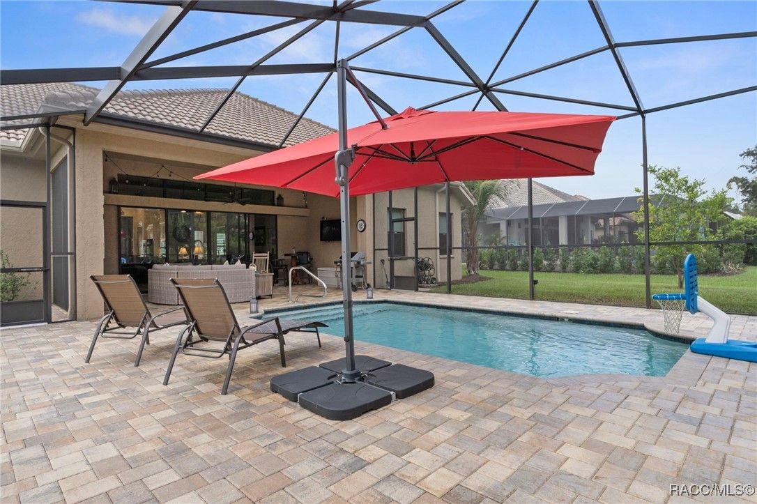 STUNNING CUSTOM SOLAR HOME WITH POOL IN FIVE STAR GATED LUXURY COMMUNITY OF CITRUS HILLS! If you are considering building a new home, take a look at this beautiful home first! This FULLY CUSTOMIZED Dali model home has 3 bedrooms PLUS a large study/office/ possible 4th bedroom flex space. The custom front door welcomes you and your guests home with a paved entrance and view that pulls the eye out into the large pool through the fully extended custom sliding doors. Entertaining is easy with this open floor plan so guests can ease onto the lanai pool area,into the beautiful living room with volume ceilings, get apps in the kitchen on the massive island or sit in the formal dining room. The master suite has a very large area that has two large walk in closets, two seperate corner sinks, walk in shower and closed toilet area. The two other bedrooms are great sizes for large scale furniture. The flex area is large enough for a 4th bedroom if you add a closet! The owners have spared no expense in the kitchen either. The gas stovetop is top of the line with a custom hood. The appliances and countertops and cabinets are all top of the line as well. Do you need space for your toys? No worry as this garage has been customized and angled for more room for a golfcart, tool area, or any toy you may have or want to get. The custom flooring is done for you and looks stunning. The beautiful furniture is also negotiable for ease of moving. Looking for energy efficiany? The radiant barrier in the attic has been added as well as a solar system for MUCH lower utility bills that are increasing yearly. Newer home, plenty of space, energy efficient, luxury finishings, win win win!!! Do NOT miss viewing this one!