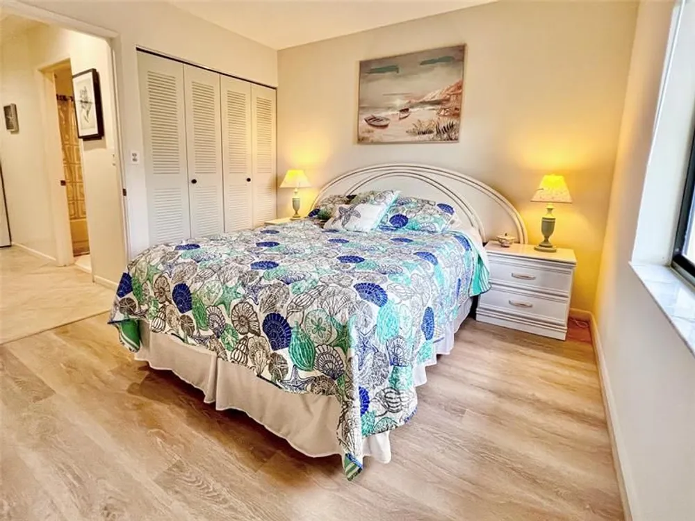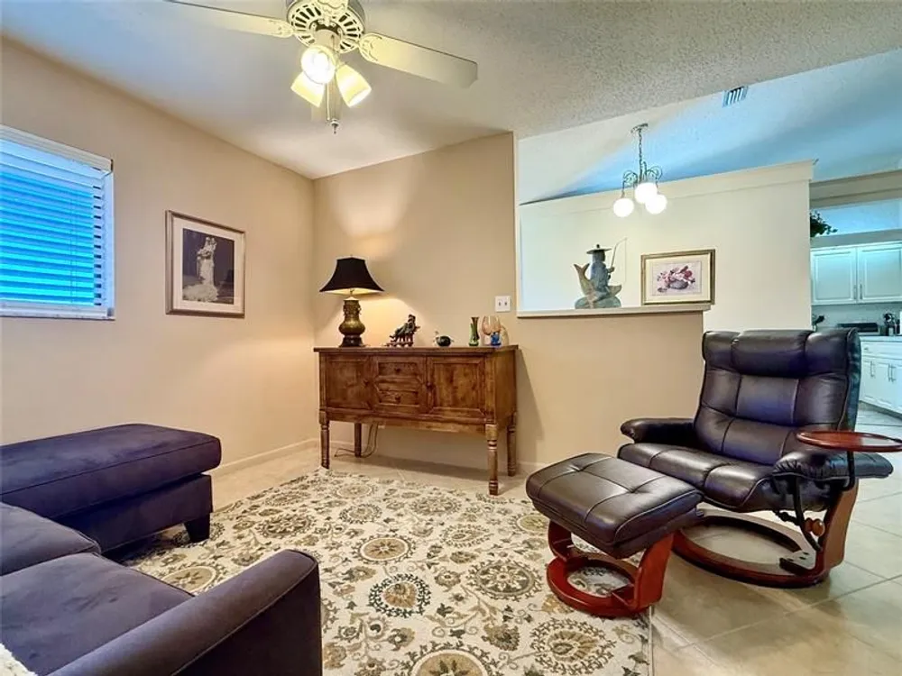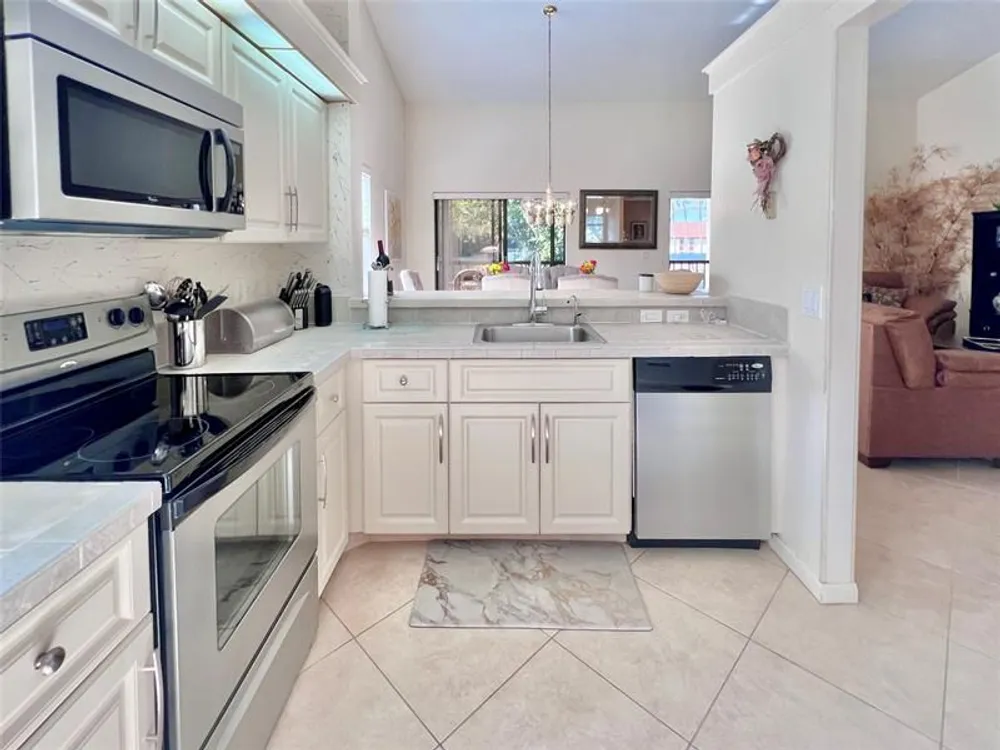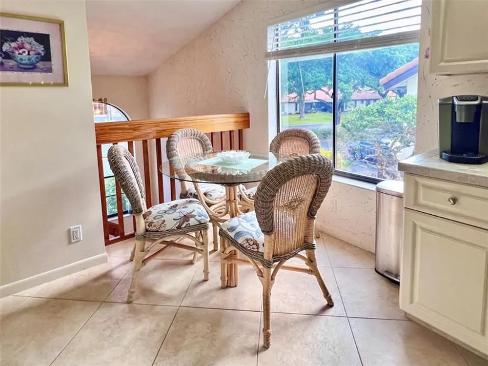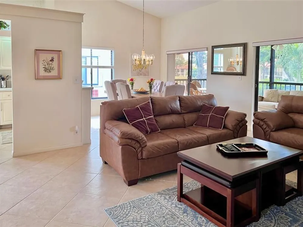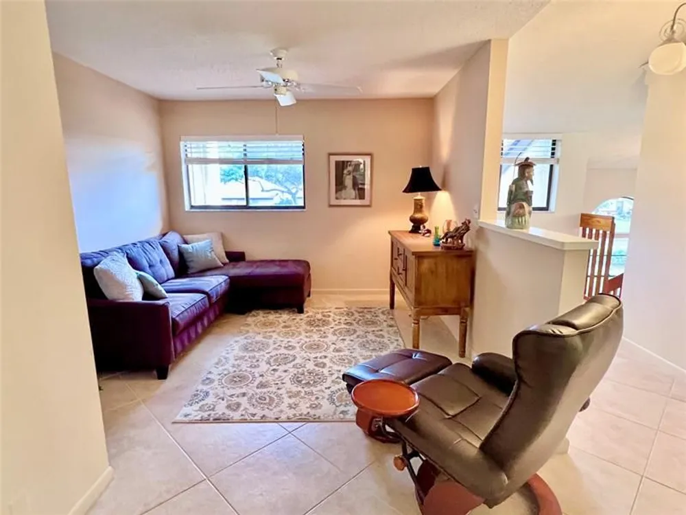 What a Welcoming Condo! 2-Bedroom, 2-Bath plus a Den. Bright & Open Concept with Vaulted Ceilings & many upgrades throughout. Kitchen boasts an abundance of White Cabinetry including Pantry and Stainless Steel Appliances. Master Retreat includes Walk-in Closet & Gorgeous Walk-in Shower. Sliders lead to your Spacious Enclosed Patio with Private Peaceful Views with a perfect peak at the lake. Washer/Dryer inside unit. Palm Chase is a Desirable 55+ Active Community Nestled Behind a Church & Seminary with a quarter-mile Drive to the Gate. Many Activities along with Temperature-Controlled Pool (Heated and Cooled!) Including Billiards, Card Games, Fitness Rooms, Ping Pong, Pickleball, Bocce & Tennis. Maintenance Fee includes Roof Repairs/Replacement, Fiber-optic Cable/Internet, Insurance & More!