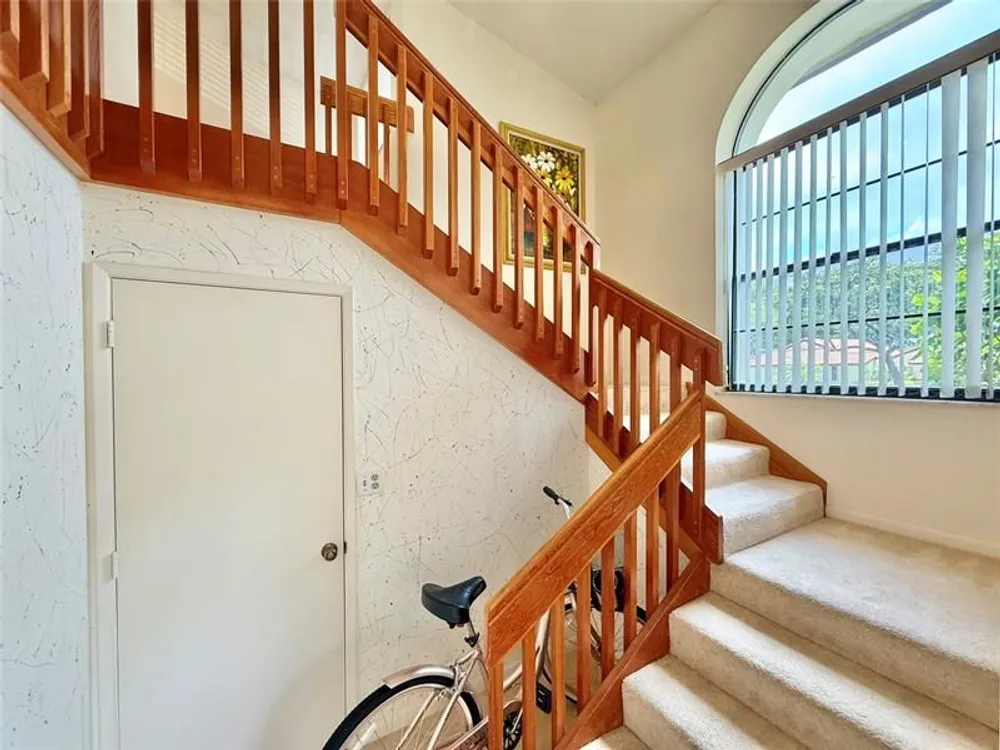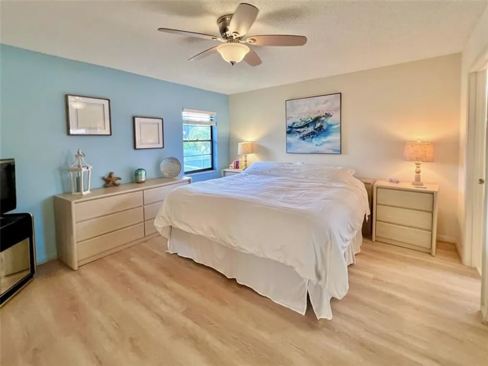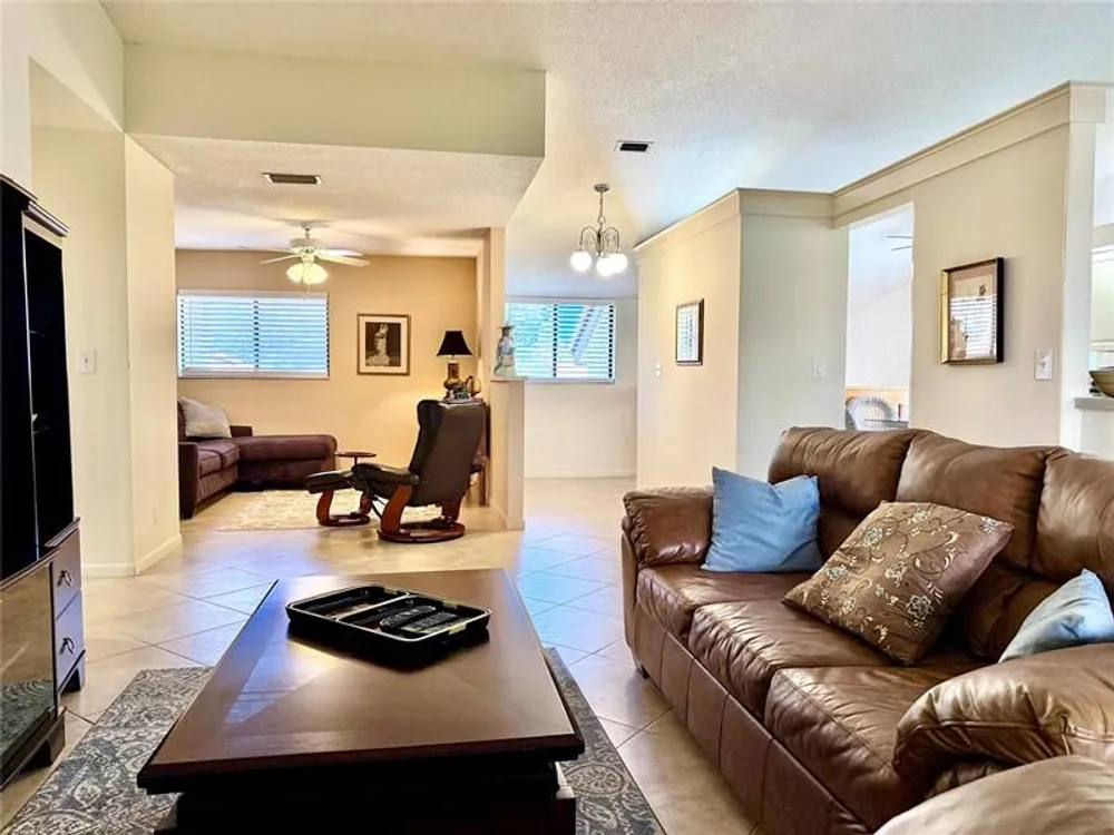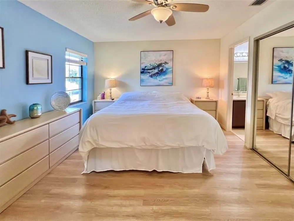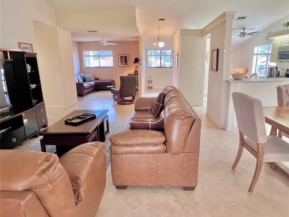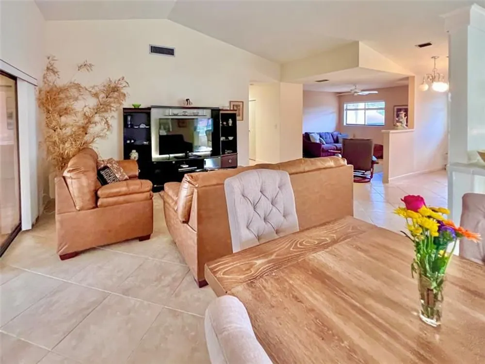 What a Welcoming Condo! 2-Bedroom, 2-Bath plus a Den. Bright & Open Concept with Vaulted Ceilings & many upgrades throughout. Kitchen boasts an abundance of White Cabinetry including Pantry and Stainless Steel Appliances. Master Retreat includes Walk-in Closet & Gorgeous Walk-in Shower. Sliders lead to your Spacious Enclosed Patio with Private Peaceful Views with a perfect peak at the lake. Washer/Dryer inside unit. Palm Chase is a Desirable 55+ Active Community Nestled Behind a Church & Seminary with a quarter-mile Drive to the Gate. Many Activities along with Temperature-Controlled Pool (Heated and Cooled!) Including Billiards, Card Games, Fitness Rooms, Ping Pong, Pickleball, Bocce & Tennis. Maintenance Fee includes Roof Repairs/Replacement, Fiber-optic Cable/Internet, Insurance & More!