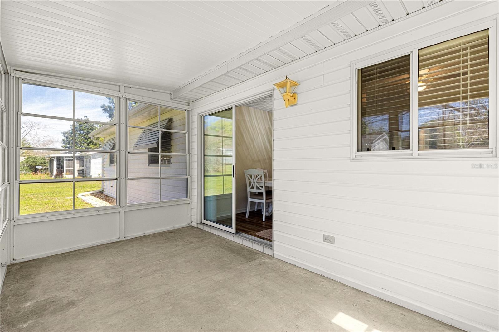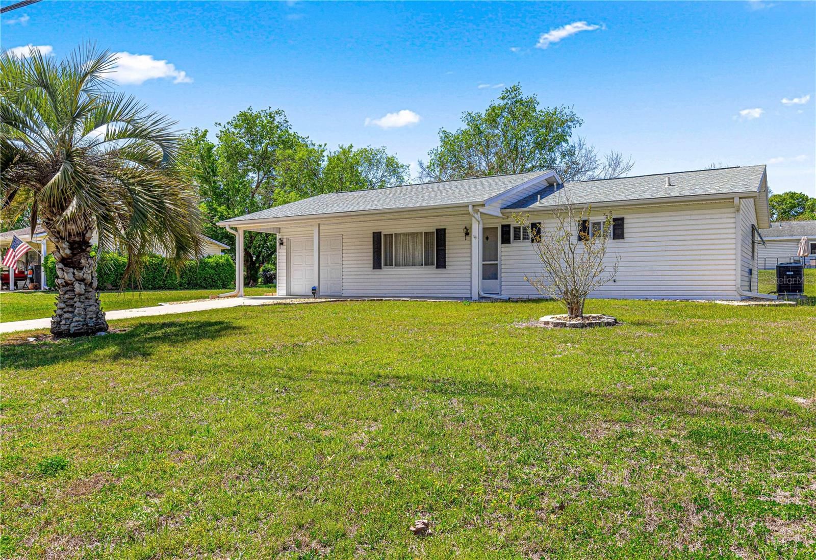 Welcome to easy, carefree living in the Spruce Creek Active 55+ Community. This immaculate, light-filled 2-bedroom, 2-bath home showcases luxury vinyl plank flooring, stainless steel appliances, and freshly painted interiors for a crisp, inviting feel. The comfortable layout features a spacious primary suite with a large walk-in closet and an en-suite bath with a tub/shower combination. A generously sized secondary bedroom offers easy access to the guest bath with a walk-in tile shower. Recent updates include a roof replaced in 2021 and an HVAC system upgraded in 2020. Enjoy the Florida lifestyle with an enclosed lanai, covered front porch, ceiling fans throughout, and a garage with a durable epoxy-coated floor. A convenient parking pad provides easy turnaround and added ease when entering or exiting the property. Low HOA fees include trash service and security patrol, while community amenities offer a clubhouse, swimming pool, fitness center, library, billiards, and a full calendar of year-round social activities. Conveniently located near shopping, dining, medical facilities, and major roadways. Move-in ready, well maintained, and affordably priced—schedule your showing today.