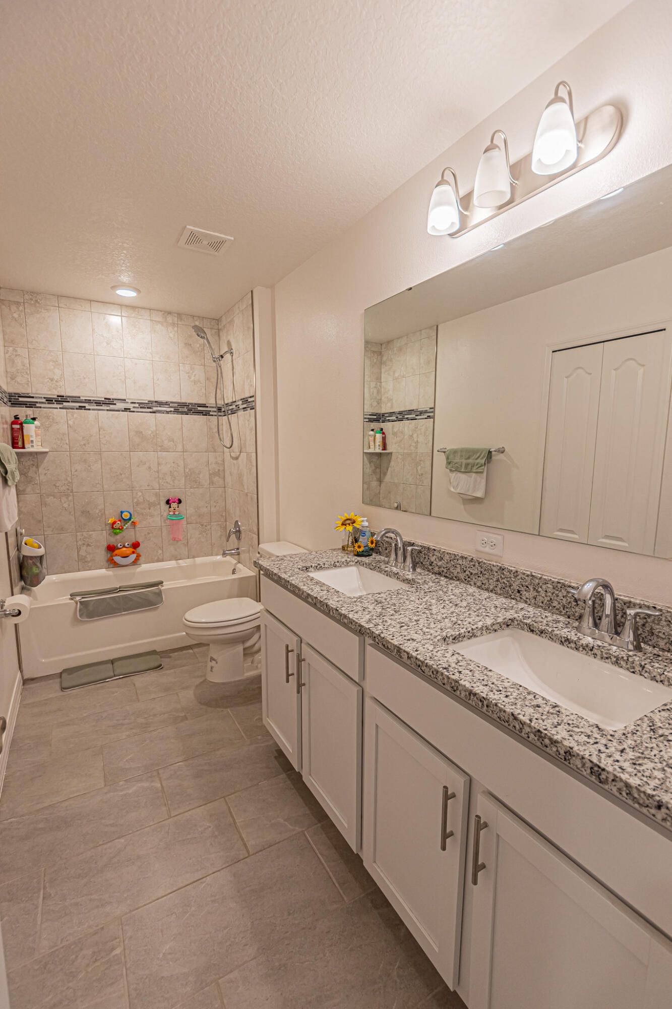 - Entrance Foyer, High Ceilings, Pantry, Walk-In Closet(s), Split Bedrooms, Upper Level Living Area, Impact Glass, Living/Dining Room, Snack Bar, Multiple Primary Suites, Dual Sinks, Main Level Primary, Upper Level Primary, Separate Shower