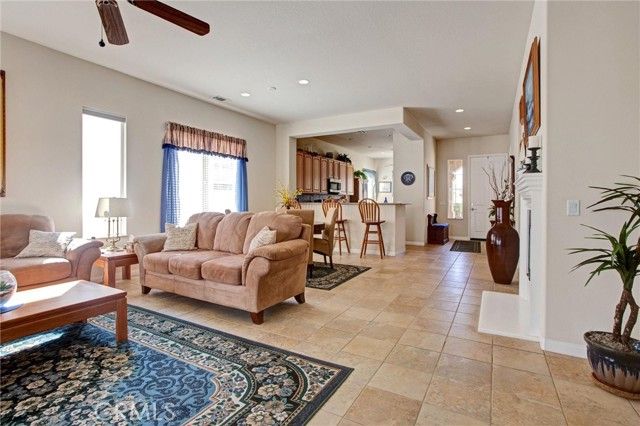 Welcome to 10788 Green Valley Road, a spotless and beautifully maintained view home located in the highly desirable Sun City by Del Webb's 55+ community. This immaculate 2-bedroom, 2-bath plus office home offers 1,768 sq ft of comfortable single-story living with an open layout. This popular Sycamore model is enhanced by natural tile floors, 10-foot ceilings, abundant light, and a warm, inviting atmosphere. The spacious living and family areas flow together effortlessly, anchored by a cozy fireplace and large windows that capture serene golf course views while still providing exceptional privacy. The kitchen features solid-surface countertops, mosaic tile backsplash, stainless appliances, an eat-in area plus counter/bar that opens to the living space, making it ideal for both everyday living and entertaining. In addition to the two bedrooms, the home includes a bright office/den with beautiful views, offering the perfect space for work, hobbies, or quiet reading. The primary suite provides a peaceful retreat with generous space, a huge walk-in closet, and an en-suite bath, while the additional bedroom and full bath offer comfort for guests. Step outside to a charming covered patio, perfect for enjoying quiet mornings or relaxing evenings overlooking the manicured surroundings. Lo
