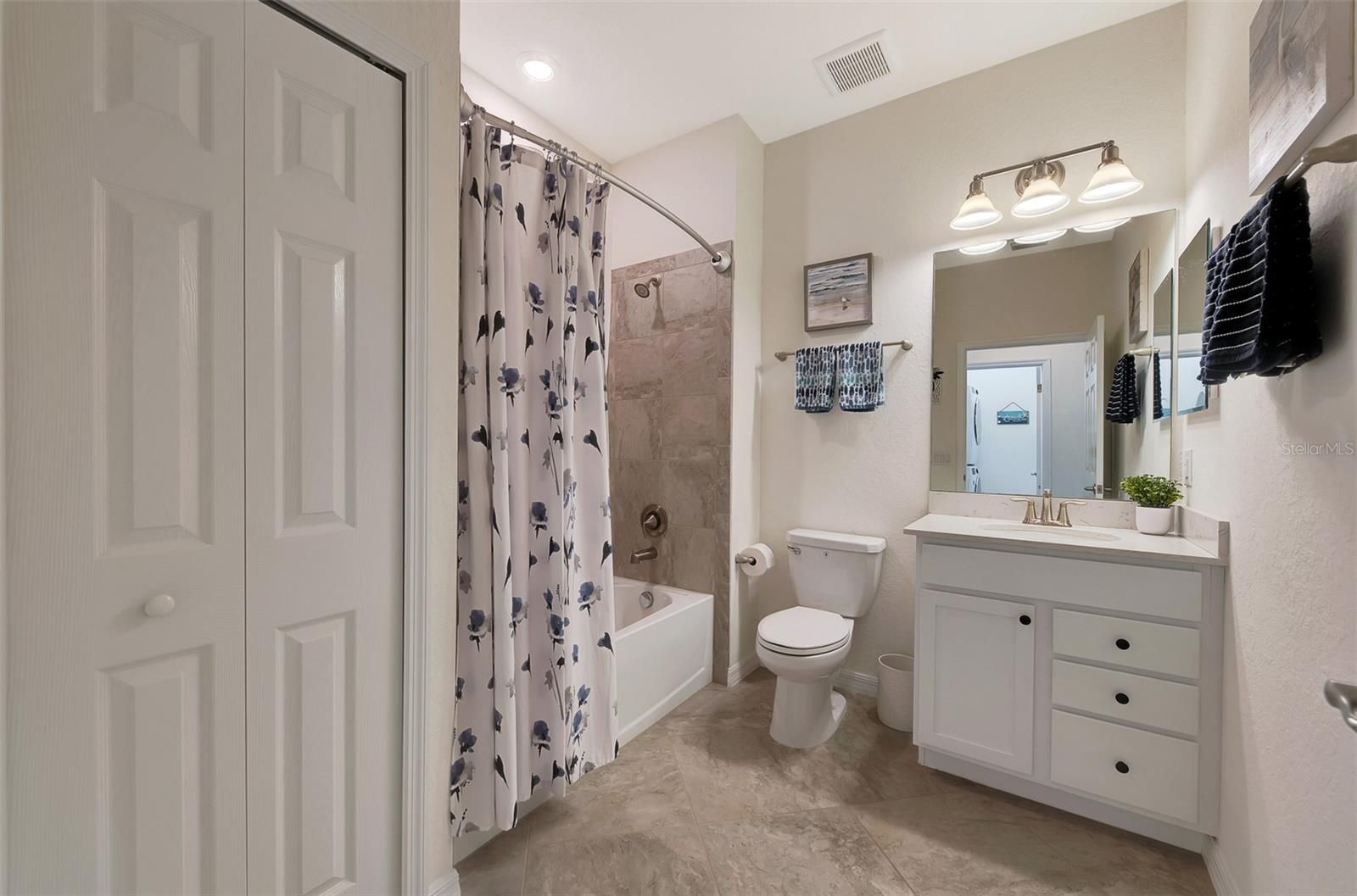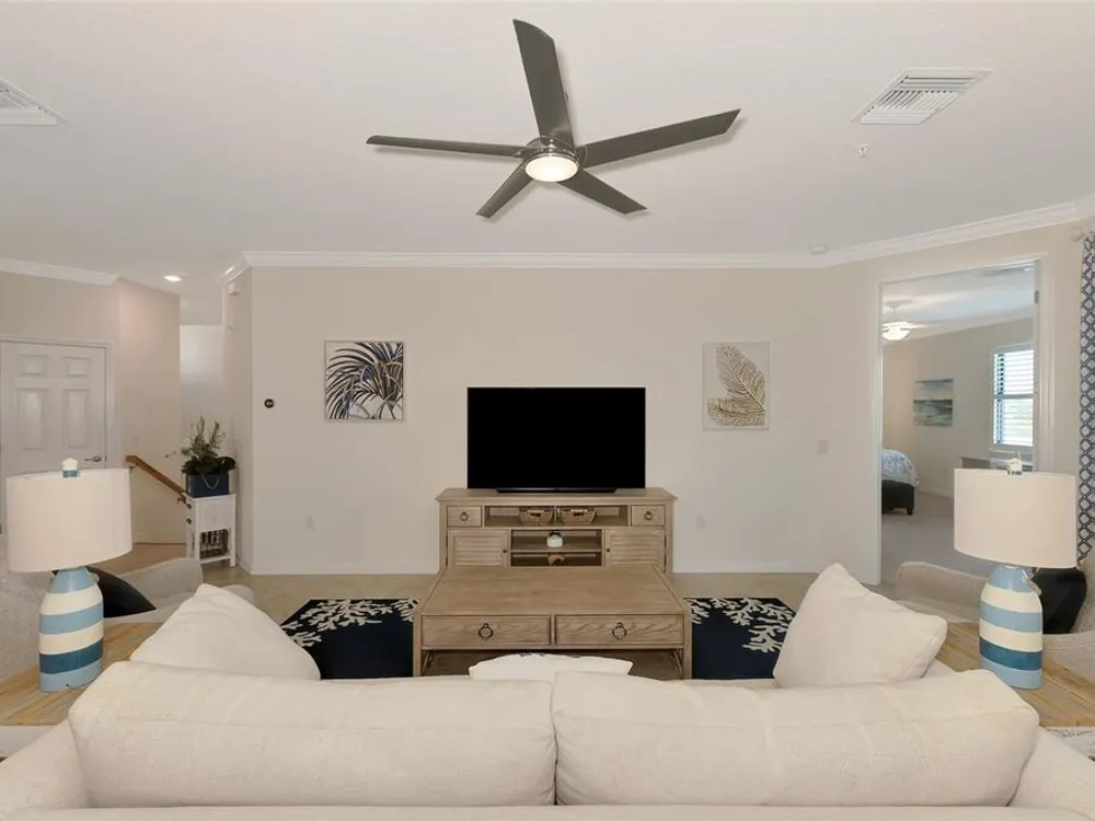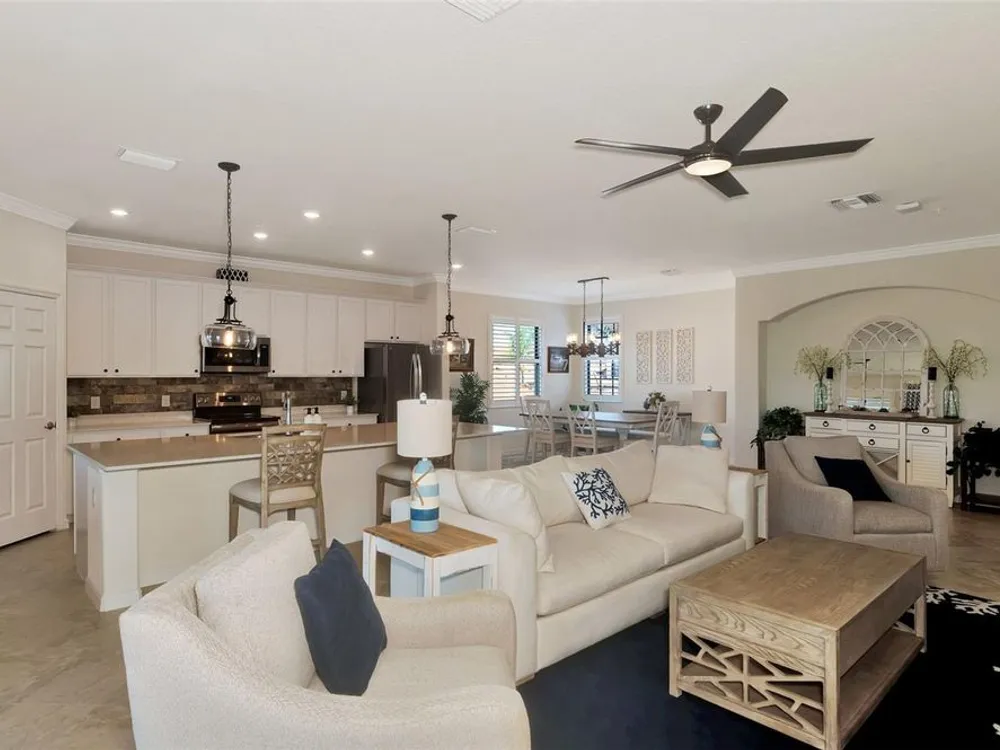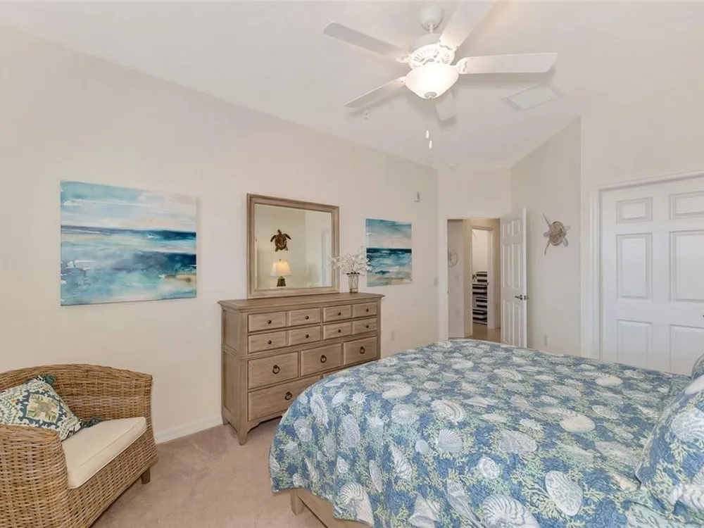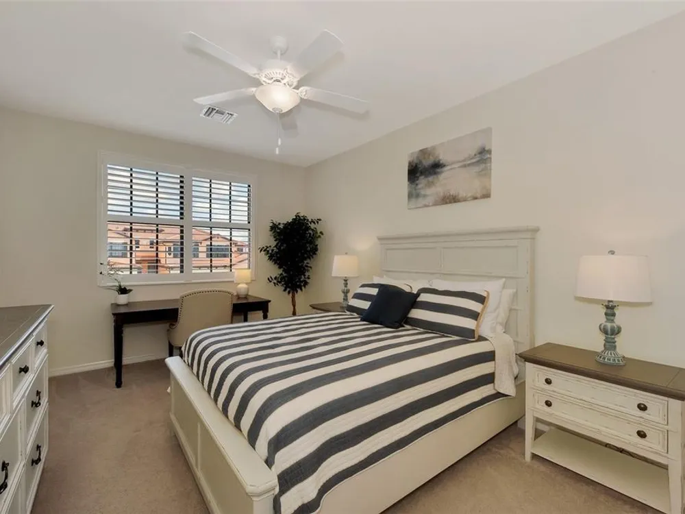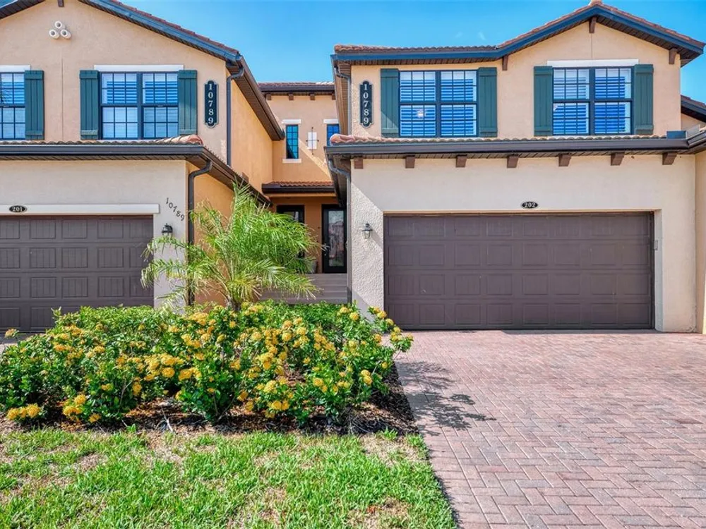 SELLER OFFERING $2500 TOWARDS ONE-TIME CAPITAL CONTRIBUTION! Live in this beautiful TOP FLOOR END UNIT condo, located in the highly sought after guard gated community of Sarasota National. Enjoy SOUTH FACING water, preserve, and golf course views stretching in all directions that will bring you hours of peace and enjoyment right from the comfort of your oversized screened lanai with custom sun shade. Boasting a grand 2-story foyer entrance, this condo is flooded with light and has an open concept floor plan featuring 3 bedrooms and 2 bathrooms, as well as a 2 car garage with a 3rd tandem. From the moment you walk through the decorative lead glass front door, you will notice upgrades such as tile on the diagonal and decorative crown moldings that run throughout all of the main living areas, as well as custom plantation shutters and custom drapery in the living room. The kitchen is a chef's dream that features white shaker style cabinets, beautiful quartz countertops, and an upgraded stainless steel appliance package with new Bosch dishwasher, LG refrigerator, and upgraded Delta faucet. Enjoy stunning views while you prepare a fantastic meal that is easily served buffet style on the oversized island. The pantry has custom built-ins by Closet-Tec and the oversized dining area showcases a beautiful chandelier. The entire space is filled with light thanks to large windows throughout and oversized sliders that all feature the highest rated HURRICANE IMPACT GLASS! The primary suite is huge on space with room to create a home office or extra sitting area. Large sliders lead out to the lanai, and a huge window will allow you to enjoy the stunning views from every angle. 2 walk-in closets give you ample space and you will enjoy more custom built-ins by Closet-Tec. The en suite bathroom showcases dual vanities with tons of storage, an oversized walk-in shower with seamless glass enclosure, and a separate water closet. Across the condo you will find 2 additional bedrooms that are generous in size, and a large full bathroom that features a tub/shower combo. With a pocket door at the end of the hall, it is easy to create privacy for guests from the main living areas of the home. There is an in-unit laundry room with upgraded stackable washer and dryer, freeing up space for extra storage. This building is completely maintenance free and includes all landscaping maintenance, pest control, cable tv, water, sewer, and trash pick up. Your monthly HOA fee also includes 2 GOLF MEMBERSHIPS that require no extra buy-in fee! This condo is perfect to use as a full time residence, a part-time seasonal home, or even a great investment... one that will generate substantial rental income! Live like you are on a 5-star vacation with a 30,000sf clubhouse with resort style pool, hot tub, outdoor tiki bar serving food and drinks daily, a coffee house, fine dining restaurant, 7,000sf fitness center with top-of-the-line equipment and classes, day spa, card room, bocce ball, pickle ball, tennis, dog park, playground, event lawn, and 18-hole championship golf course. Sarasota National is a guard gated 2400-acre International Audubon Bird Sanctuary that offers some of the most beautiful water and preserve views in all of Venice. This home is just minutes to the new Atlanta Brave's spring training camp at the CoolToday Park Stadium, as well as the town center of Wellen Park. Explore 3 local beaches and historic downtown Venice, all less than 15 minutes from your front door!