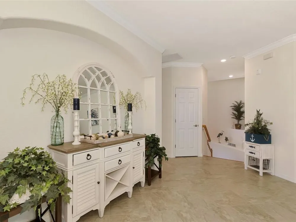 - Ceiling Fan(s), Crown Molding, Eat-in Kitchen, High Ceilings, In-Wall Pest Control, Kitchen/Family Room Combo, Living/Dining Room, Open Floorplan, Solid Surface Counters, Split Bedrooms, Thermostat, Walk-In Closet(s), Window Treatments