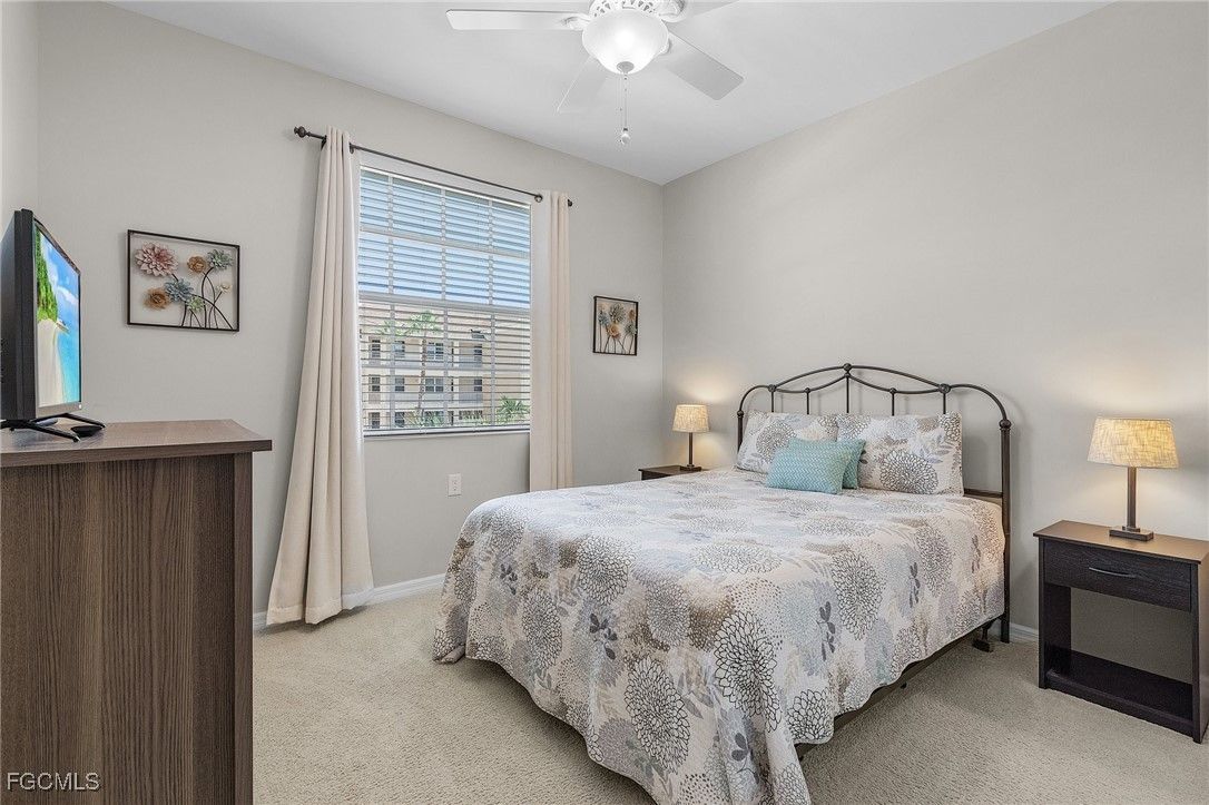 A must see 3 bedroom, 2 bath beautifully appointed condo, being offered turnkey. What makes this unit even more exceptional is its location, located on the top floor and just steps away from the neighborhood pool in Palazzo. This top floor end unit has lots of natural light with the primary bedroom split from the guest bedrooms allowing for ideal privacy. Other features include impact windows and doors, Tray ceilings and the hot water heater replaced in 2023. Pelican Preserve is an active 55+ community with endless amenities including the Flip Flops outdoor restaurant, 3 pools, Tennis, Pickleball, Bocce, Softball, Fitness, Movie Theater, Billiards, Hobby Rooms, Amphitheater, Destinations indoor restaurant, plus many special events throughout the year. The Brokke Center includes a Library, Card Rooms and Coffee Center for socializing with friends. Pelican Preserve has a 27 hole Private Golf Club with optional memberships. Don't miss out on this opportunity to live in this nationally recognized 55+ community and enjoy the resort lifestyle in Pelican Preserve.