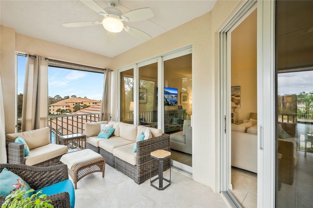 Welcome to effortless Florida living in the highly sought-after Palazzo at Pelican Preserve, located within Pelican Preserve, Fort Myers’ premier gated 55+ resort-style community. This top-floor Tivoli model 2-bedroom, 2-bathroom condominium offers a bright, open layout filled with natural light and enhanced by elegant trey ceilings and a crisp white palette throughout. The thoughtfully designed floor plan features tile in the main living areas and luxury vinyl flooring in the bedrooms for both style and durability. The open kitchen is perfect for entertaining, showcasing a large island with additional seating, granite countertops, white cabinetry, stainless steel appliances, and a sunny breakfast room ideal for casual dining. The primary suite serves as a relaxing retreat with abundant natural light and a spacious ensuite bathroom featuring a beautifully tiled walk-in shower. Step outside to your private screened lanai with tile flooring, where serene preserve views provide a peaceful backdrop for morning coffee or evening relaxation. This residence is perfectly positioned just steps from the exclusive Palazzo neighborhood pool and hot tub, complete with cabana dining and a grill area, offering a private oasis right outside your door. Residents of Pelican Preserve enjoy an unmatched array of resort-style amenities and social opportunities. Sports enthusiasts will appreciate 12 pickleball courts, 8 tennis courts, a community softball field, basketball court, indoor table tennis, lawn bowling, two bocce courts, and miles of sidewalks and walking trails winding through 38 acres of pristine boardwalk and nature preserve. The community also features a dog park and butterfly garden for outdoor enjoyment. At the vibrant Pelican Preserve Town Center, residents can enjoy two outdoor pools (including a lap pool) and one indoor pool, an attended fitness center offering yoga, spin, Pilates, and Zumba classes, cardio and strength equipment, indoor walking track, sauna, steam rooms, and spa treatment rooms. Additional amenities include a theater, outdoor amphitheater pavilion, fishing pier, billiards room, arts and crafts studio, sewing studio, woodworking shop, business center, library, card rooms, and meeting spaces. For golf enthusiasts, optional social and full golf memberships are available at the 27-hole championship course within Pelican Preserve. Conveniently located near Interstate 75, Southwest Florida International Airport, and the spring training homes of the Minnesota Twins and Boston Red Sox, you’ll also enjoy easy access to a variety of restaurants, shopping, and the beautiful white sandy beaches of Southwest Florida. This is resort-style living at its finest where every day feels like a vacation.
