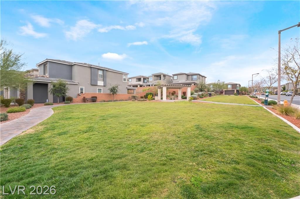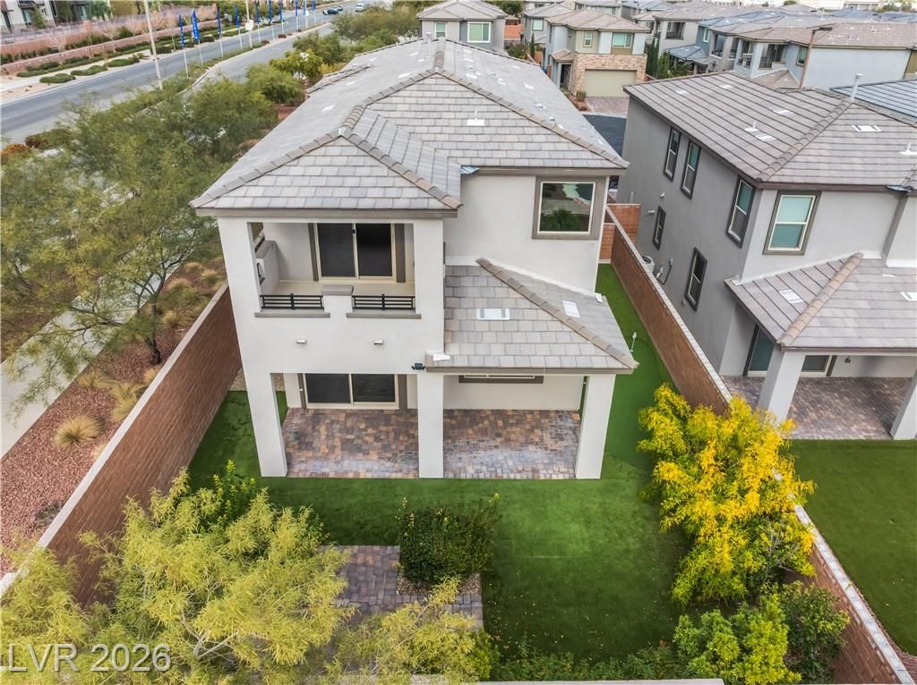 TRUE GEM! ~ Stunning two story stunner in the heart of Summerlin! This beautifully upgraded home sits on an oversized 5,227 sq ft lot and blends luxury with functionality. Step inside to soaring vaulted ceilings, rich floors, custom built-ins, and a spacious open layout perfect for entertaining. The chef’s kitchen features granite counters, stainless appliances, breakfast bar, and ample storage. Retreat to the primary suite with backyard access, spa like bath, and walk-in closet. Enjoy desert living at its best in the private backyard with covered patio, ideal for relaxing or hosting. Additional highlights include a den/office, gas fireplace, ceiling fans throughout, and attached 2-car garage. Prime location near parks, trails, shopping, dining, and top-rated schools. This one checks all the boxes don’t miss it!