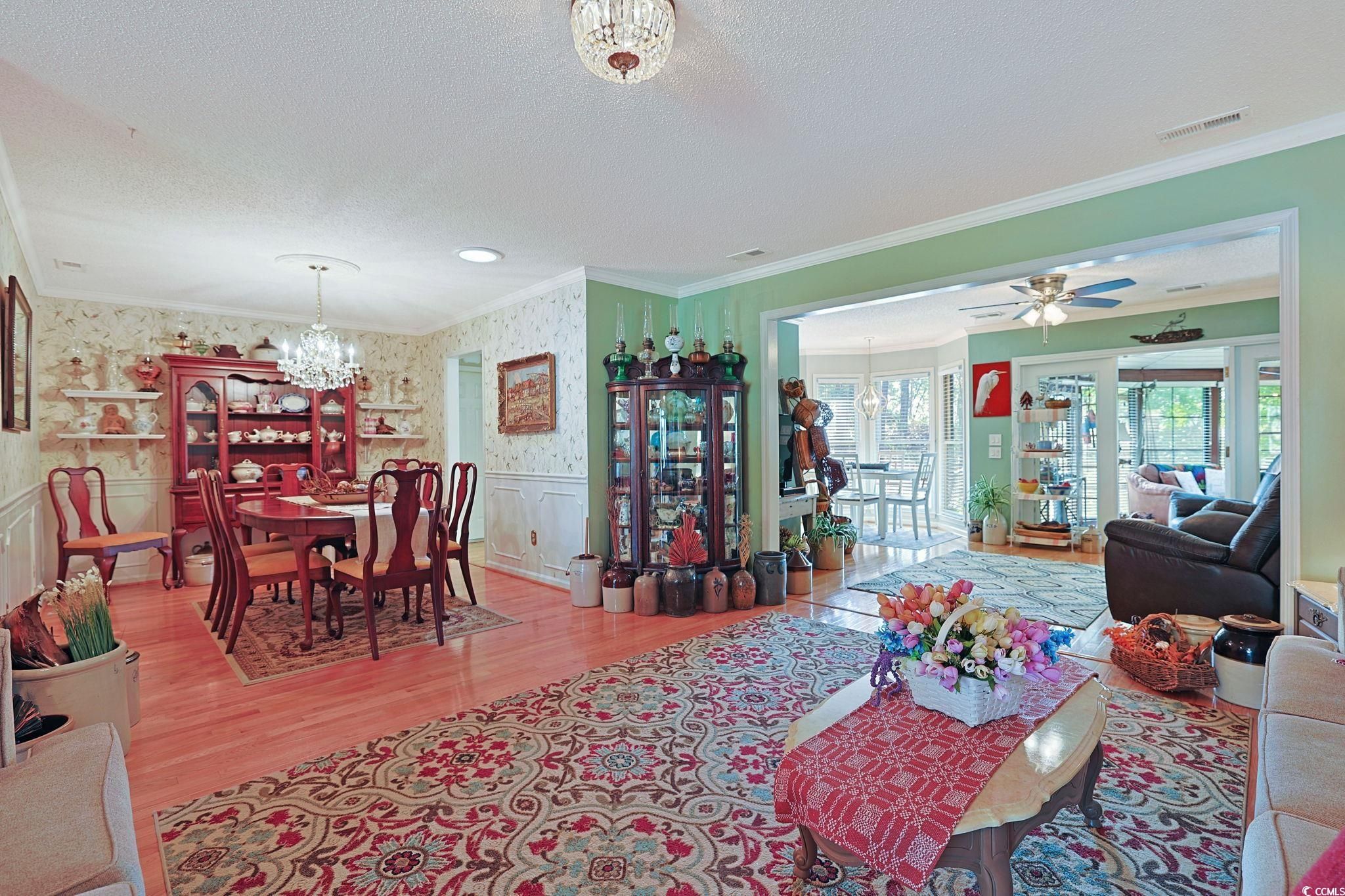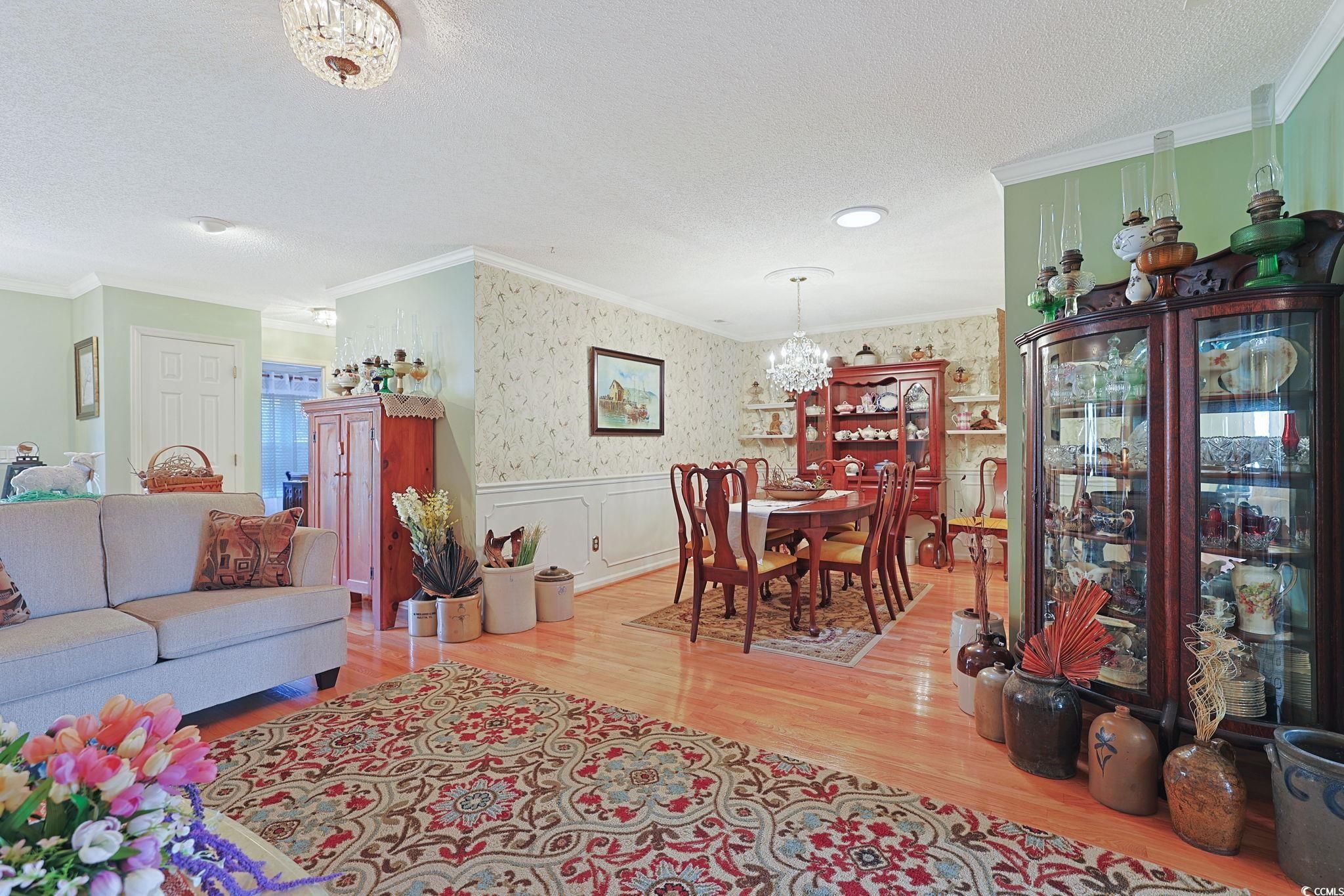 Presenting this charming 2 bedroom 2 bath home located in the exciting 55+ Myrtle Trace gated golf community. This graceful home has hardwood, tile, & carpet flooring, crown moulding, ceilings fans, an abundance of natural lighting, a spacious living room gives way to a delightful retreat area with a cozy fireplace, and showcases a 3 panel patio door that opens up to the relaxing sunroom. The formal dining room boasts shadow box chair railing, a ceiling medallion with a chandelier, and a sun drenched solar tube. The family friendly kitchen is equipped with a range, built-in microwave, dishwasher, side by side refrigerator with ice & water door dispenser, ample counter & cabinet spaces, tile back splash, a practical pantry, and a memorable bay window breakfast nook. The primary suite offers a ceiling fan, a large walk-in closet, access to a private office or 3rd bedroom, private access to the primary bath that hosts a vanity with a single sink, a comfort station, and a deluxe step-in shower. This captivating home is completed with an addition bedroom, a full guest bath that includes a laundry closet, and a single car attached garage. Myrtle Trace features cultivated landscaping, an inviting clubhouse, a sparkling outdoor saltwater pool, an exciting bocce ball court, and a horse shoe pit. This home affords you easy access to the beach and golfing along with all of the other activities and happenings in Myrtle Beach & Conway including fun eateries, award winning off-Broadway shows, public fishing piers, Conway’s historic riverwalk, and intriguing shopping adventures along the Grand Strand.Conveniently located to your everyday needs, including grocery stores, banks, post offices, medical centers, doctors’ offices, and pharmacies. Check out our state of the art 3-D VirtualTour.