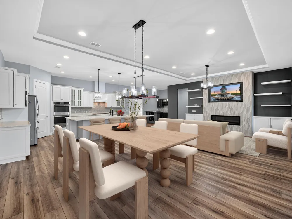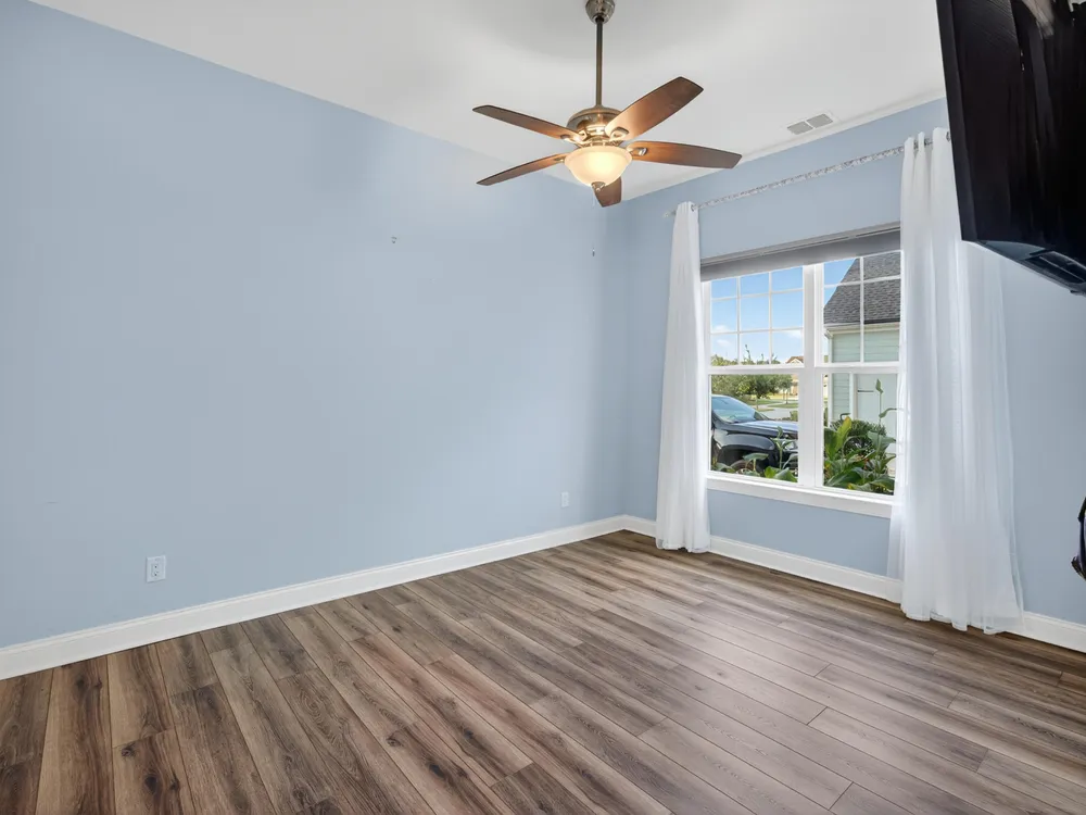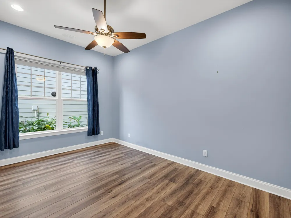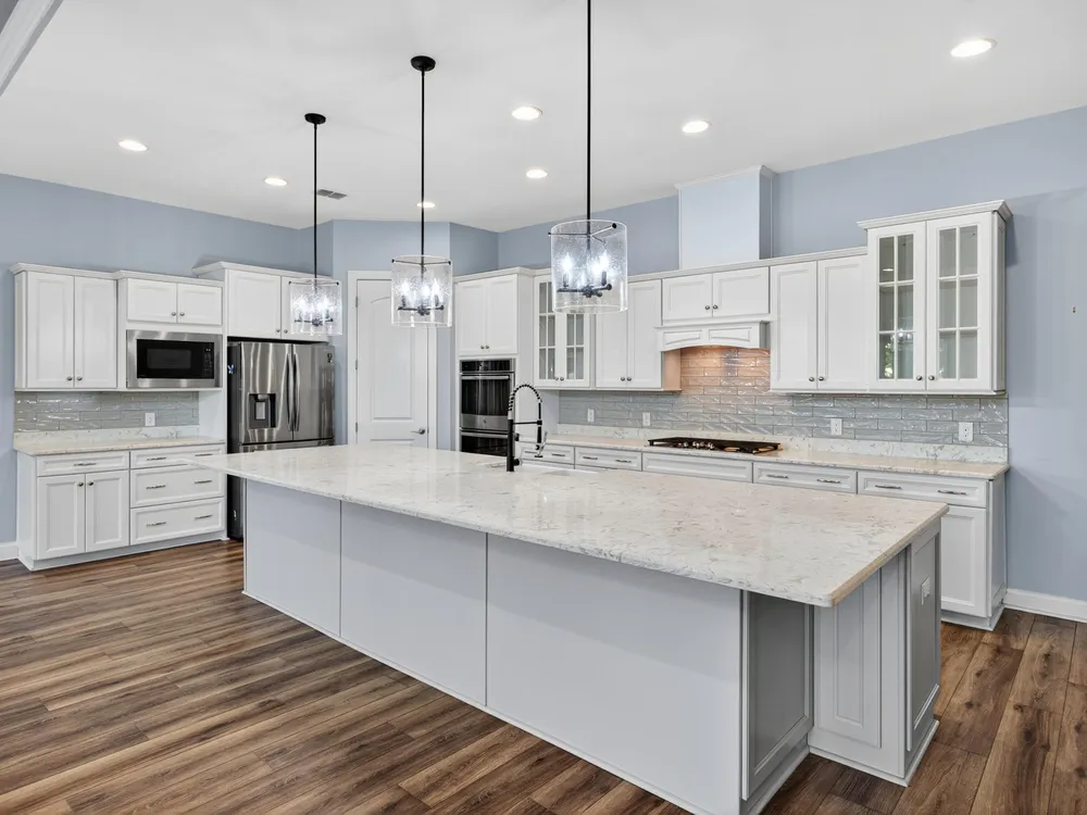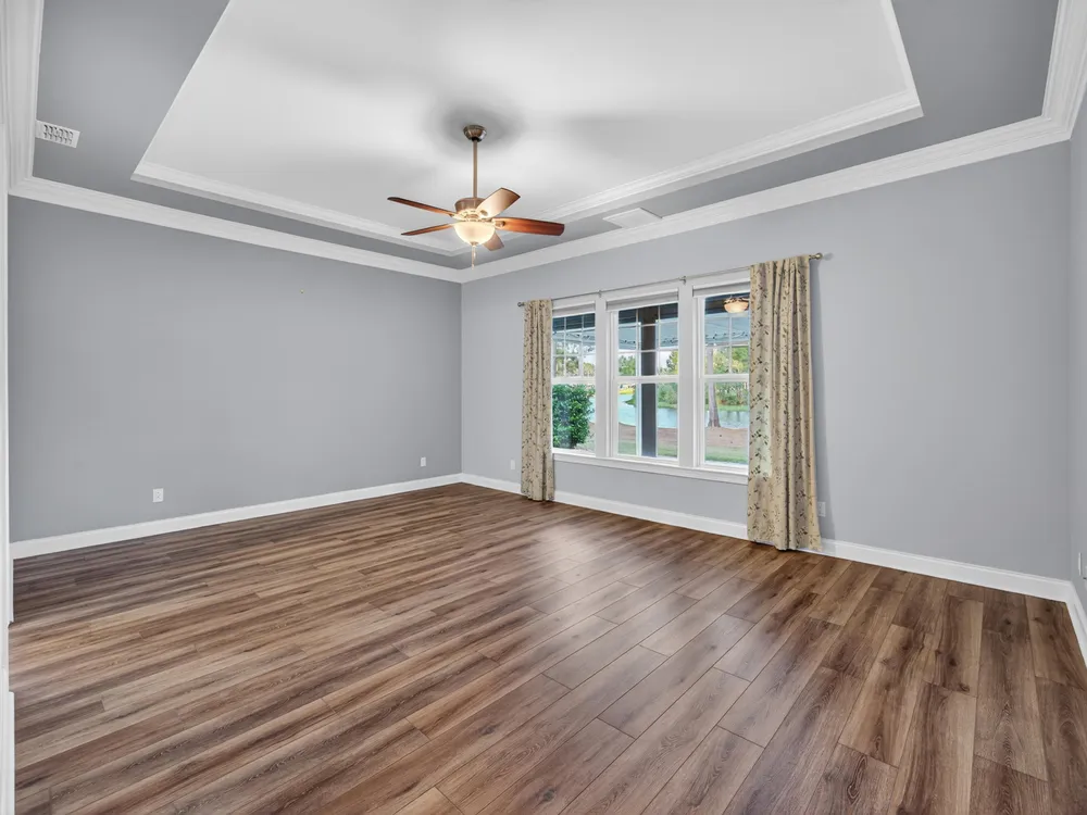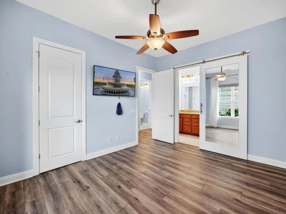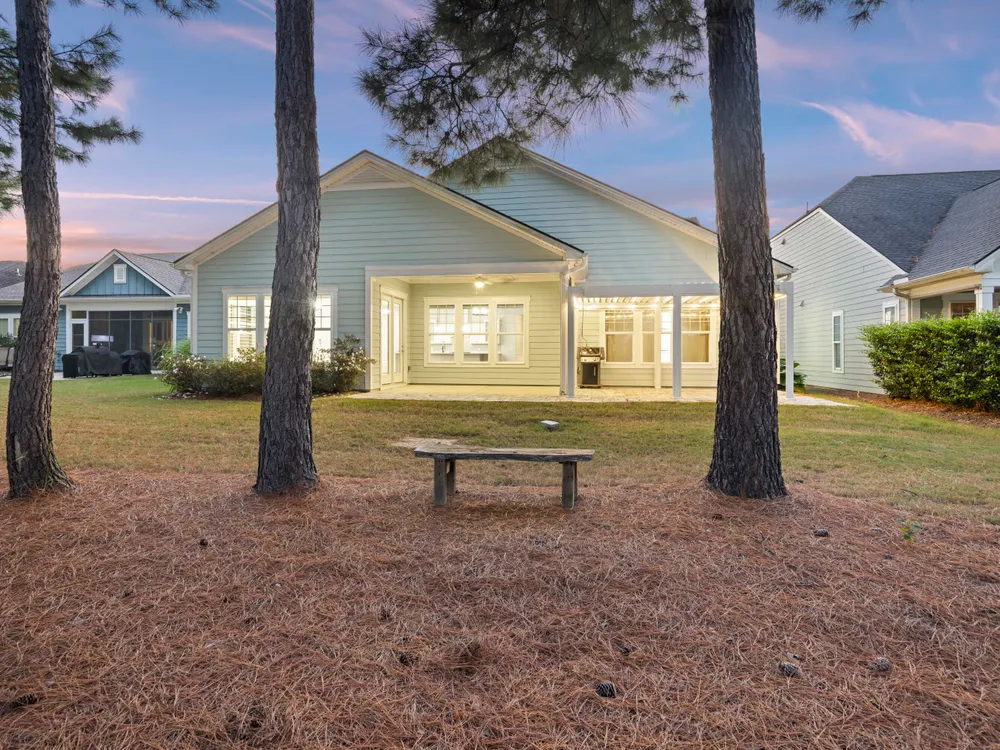 Welcome to 108 Bluff Isle Court, a stunning single-story lakefront home in the sought-after 55+ community of Four Seasons at Lakes of Cane Bay. Thoughtfully designed and *extensively upgraded*, this elegant 3,049 sq. ft. San Sebastian floor plan offers 3 bedrooms, 2.5 baths, and two garages accommodating 3 cars, all situated on a private cul-de-sac with peaceful east-facing views of the water.Step inside and you'll find 10-foot ceilings, tray details with crown molding, and an inviting open-concept layout perfect for entertaining. The gourmet kitchen is a chef's dream, featuring GE Profile appliances, double ovens, a five-burner gas cooktop, quartz countertops, a farmhouse sink, custom soft-close cabinetry, a vented hood, and pendant lighting over the oversized island. The great room centers around a modern, remote-controlled gas fireplace and flows seamlessly into the sunroom, where natural light and lake views fill the space. The owner's suite offers a luxurious retreat with a tray ceiling, spa-style bathroom with a frameless glass shower, soaking tub, soft-close cabinets, upgraded tile, and a custom-built walk-in closet complete with shelving and drawers. Enjoy year-round outdoor living on the extended paver patio, featuring a covered seating area with a ceiling fan, gas line for grilling, and a pergola with lighting overlooking the water. The garages are equipped with digital openers, 220-volt outlets, added lighting, and a mini-split HVAC system in the workshop bay, providing comfort and utility. Every inch of the home reflects careful attention to detailfrom custom blinds and plantation shutters to enhanced insulation and Sherwin-Williams Duration paint throughout. Beyond the home itself, Four Seasons at Lakes of Cane Bay offers one of the Lowcountry's most impressive amenity packages, including resort-style outdoor pools, a heated indoor lap pool and spa, pickleball and tennis courts, bocce, a fitness center, game and billiard rooms, a demonstration kitchen, ballroom, dog park, boat and kayak launch on the community's 300-acre lake, and 24/7 gated security. A full-time lifestyle director curates year-round events, and all lawn care is included, ensuring maintenance-free living at its finest. This home combines luxury finishes, functional upgrades, and a premium lakefront setting to deliver one of the most complete offerings in Four Seasons.