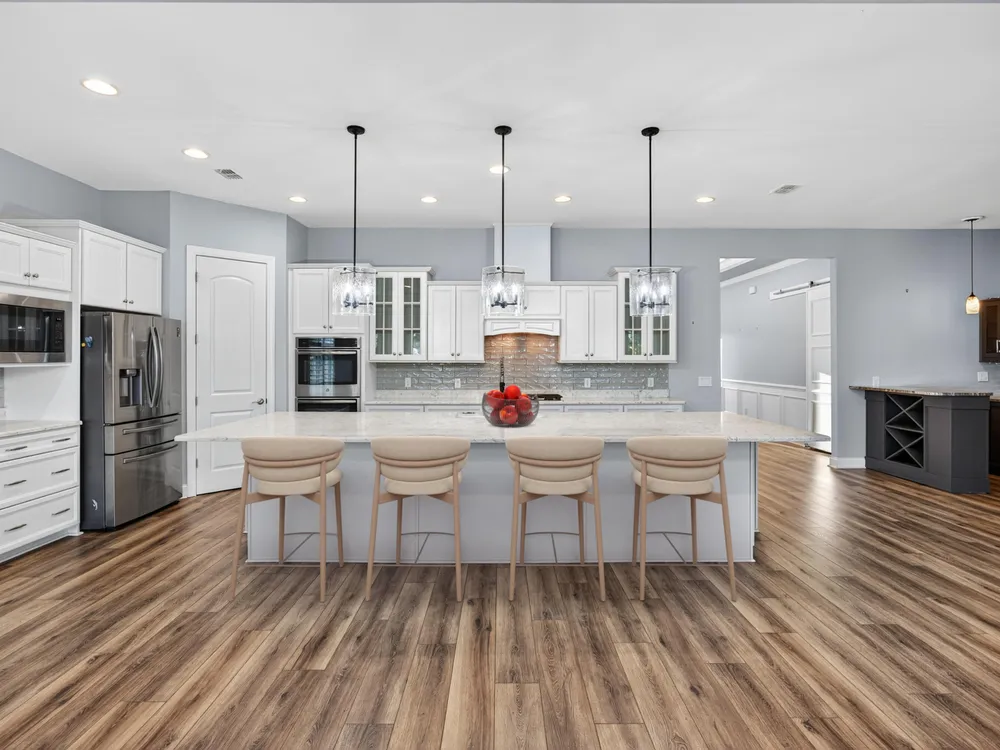 - Smooth Ceilings, Tray Ceiling(s), High Ceilings, Garden Tub, Kitchen Island, Walk-In Closet(s), Wet Bar, Ceiling Fan(s), Eat-in Kitchen, Family Room, Entrance Foyer, Pantry, Sunroom
