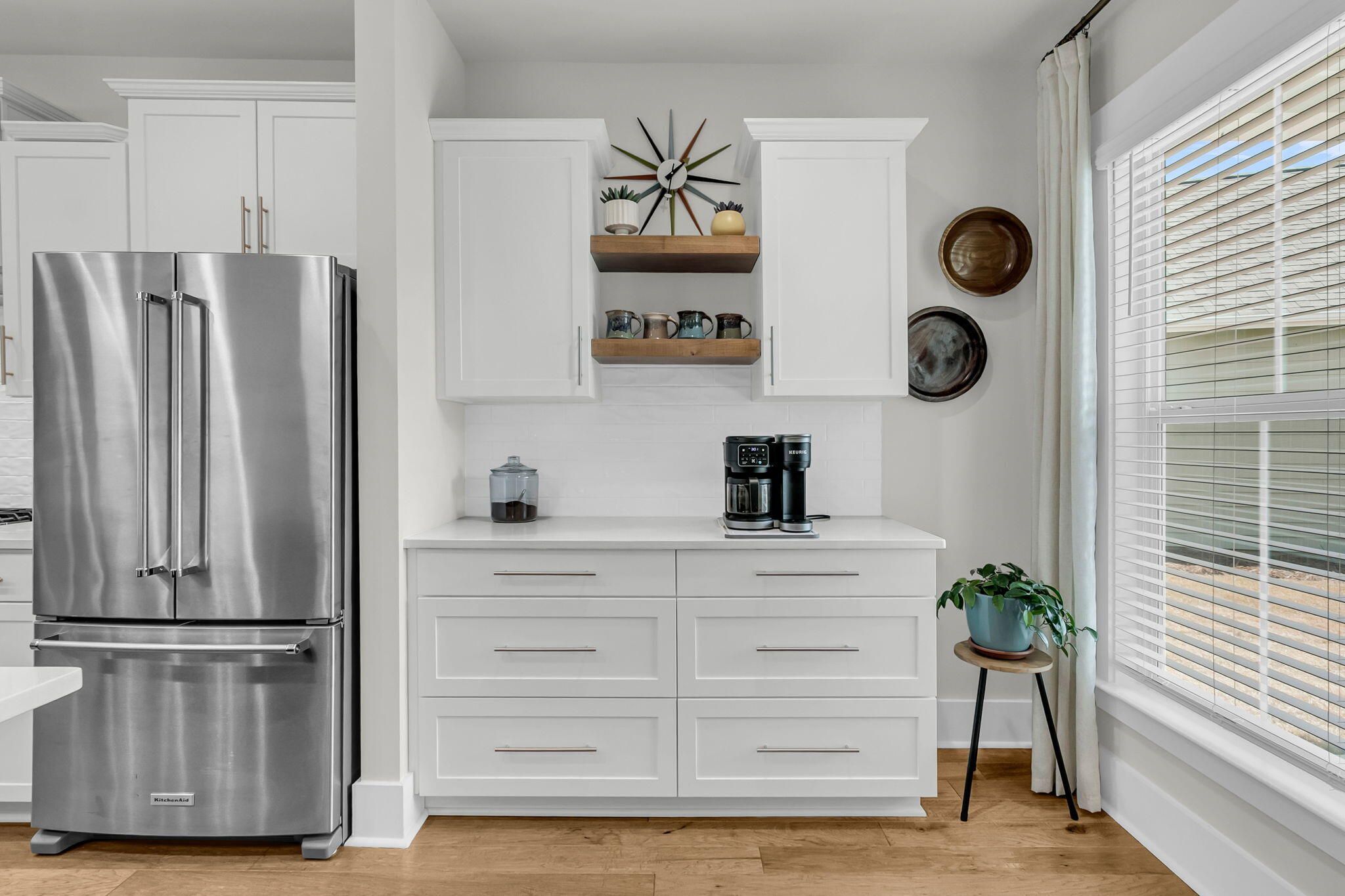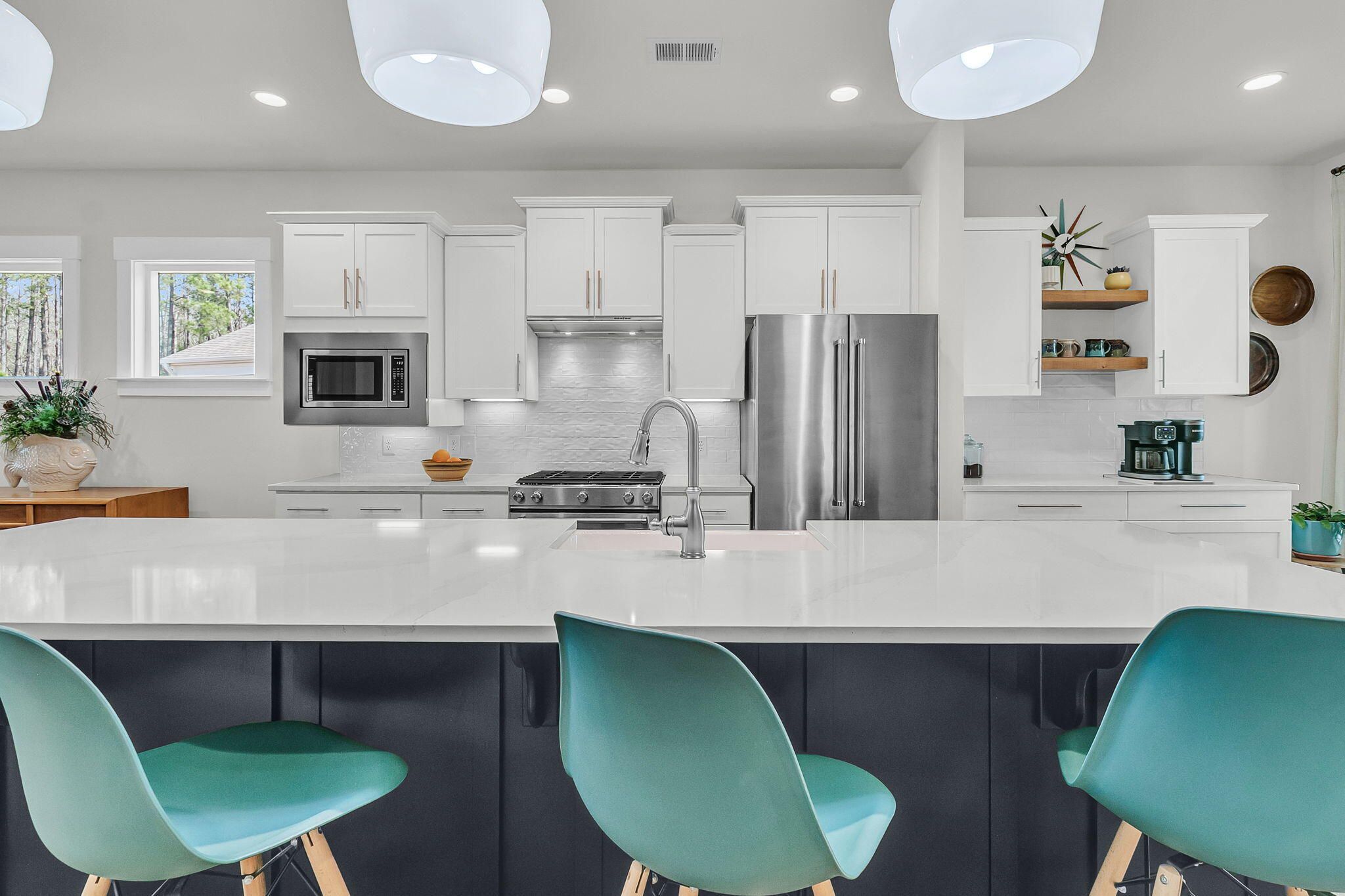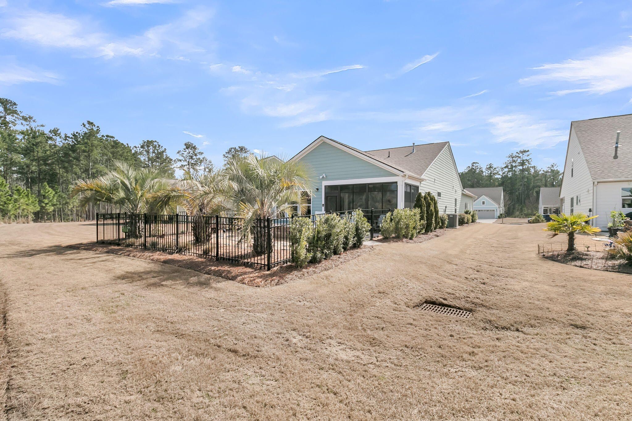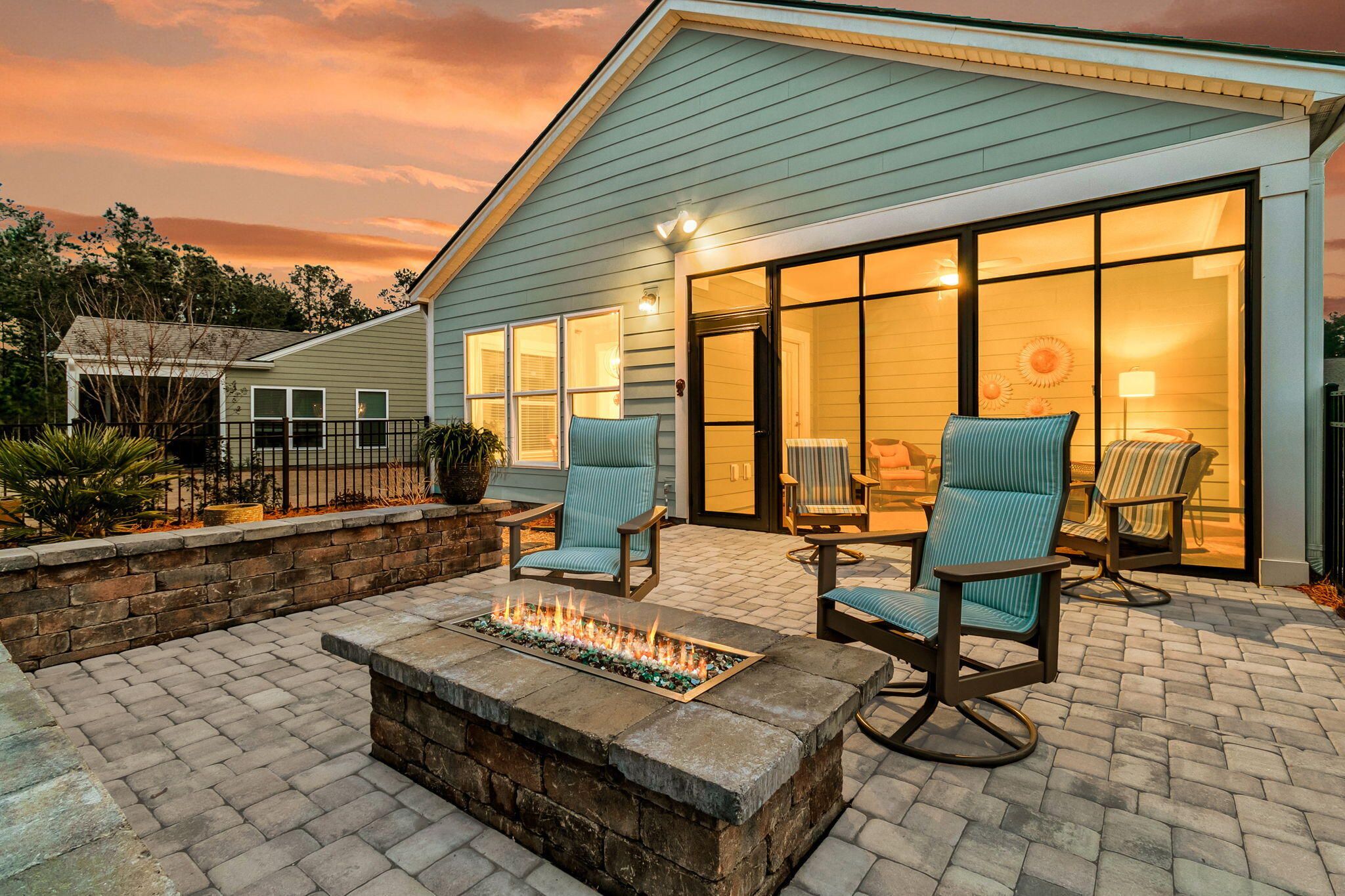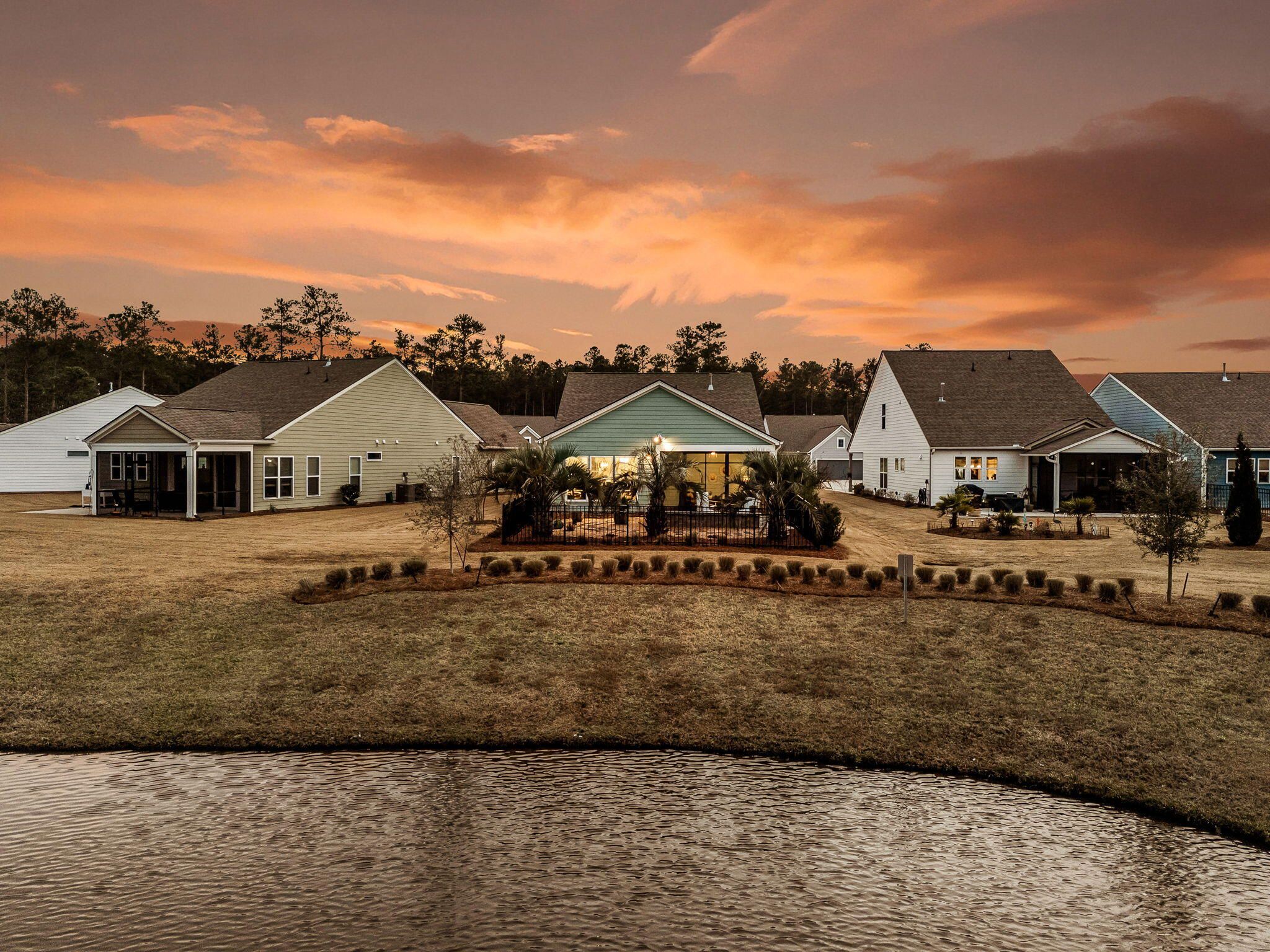 Situated on a private cul-de-sac with wooded and lagoon backyard views, this 2 bedroom, 2 bath Steel Creek home has one of the best lots in Del Webb! With extra space between neighboring homes and a stunning backyard patioscape, you'll feel as if you're on your own private oasis. Inside you'll find hardwood floors throughout - NO CARPET! The luxury island kitchen includes soft-closing white and navy cabinetry with double tray pull out storage, quartz countertops, a custom built-in coffee bar with floating shelves, KitchenAid appliances with a gas range and French door refrigerator, subway tile backsplash, a farmhouse sink, custom pendants, and under-cabinet lighting. The generously-sized great room and light-filled sunroom make great entertaining spaces. A three-season room withretractable vinyl windows and coastal stone flooring and an extended paver patio with built-in gas fire pit sit within the fenced-in backyard with beautifully enhanced landscaping. Back inside, the Owner's Suite includes a tray ceiling and ensuite bath with 12" x 24" tile floors, double sink quartz vanity, walk-in tile shower with built-in bench and frameless shower door, and a walk-in closet. An additional bedroom, full bath with walk-in tile shower, and laundry room with included washer & dryer and built-in cabinets complete the inside space. The garage offers great storage, with a 4' length extension and built-in stairs leading up to a large attic storage area. Other home extras include a whole-house water filtration system, craftsman-style trim details throughout, and plantation shutters. Del Webb Nexton is the Charleston area's premier Active Adult community. With prime location to grocery stores, local restaurants and shops, historic downtown Summerville, and beautiful Charleston, its location cannot be beat! The 27,000 square foot amenities center, full-time event coordinator, and numerous clubs and events will have you living your very best life! Don't miss out on this incredible move-in ready home in the award-winning Nexton community!
