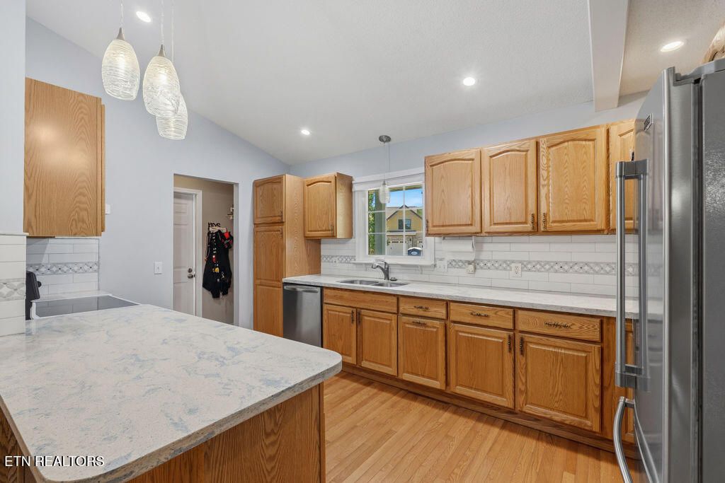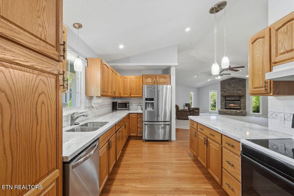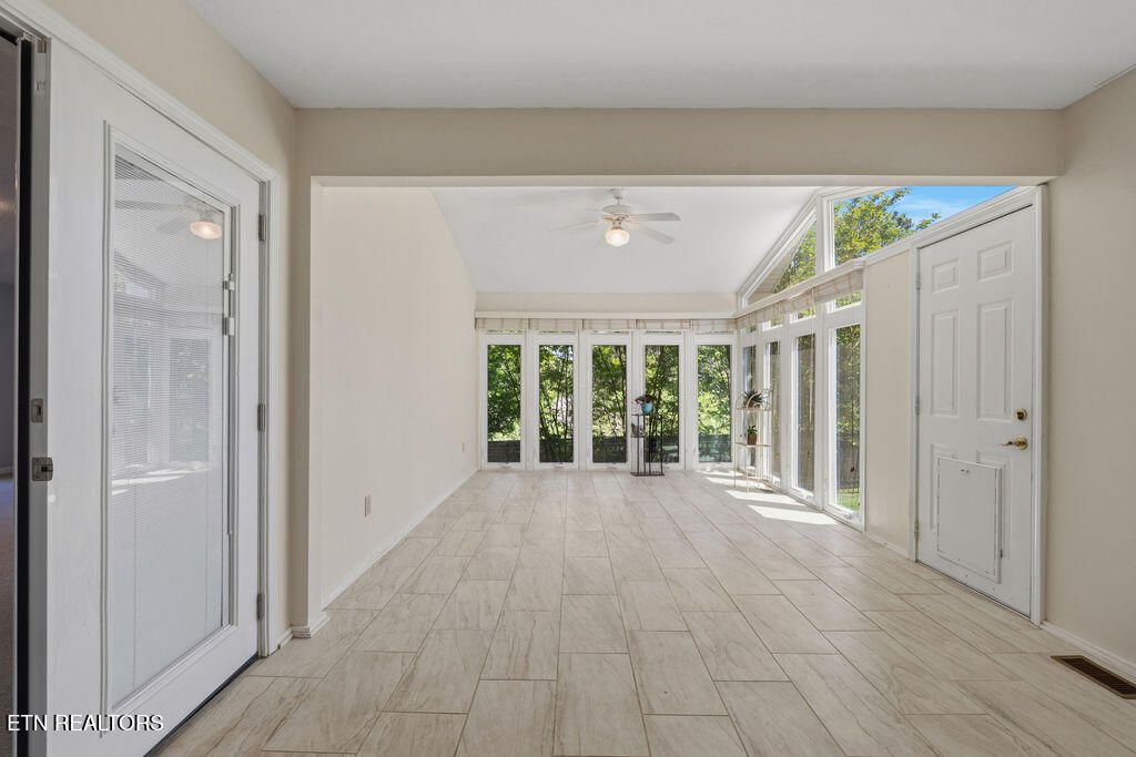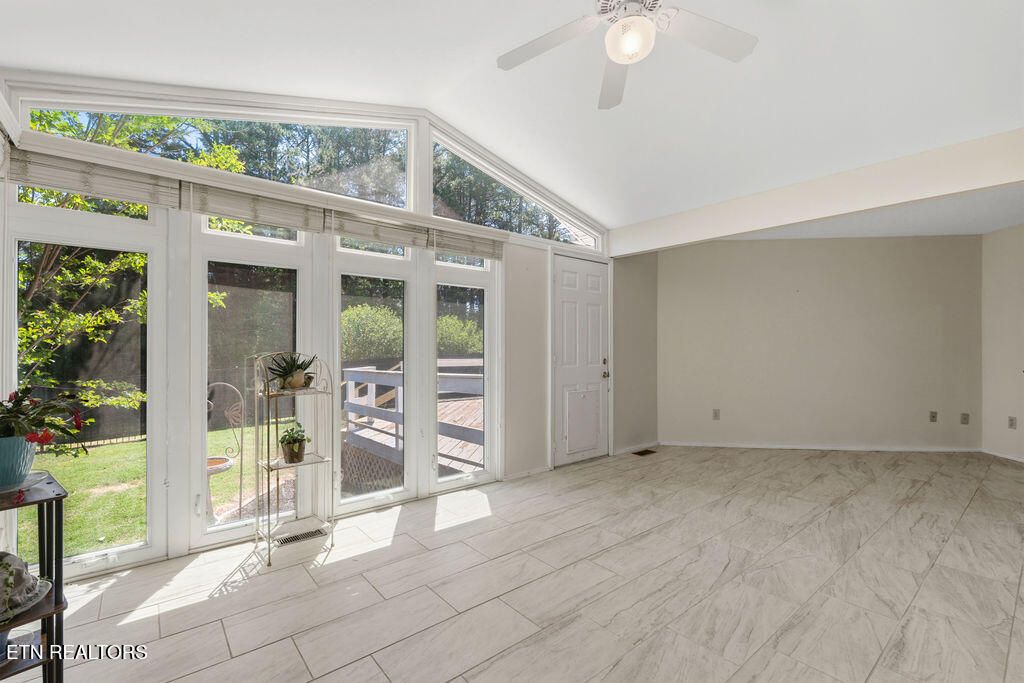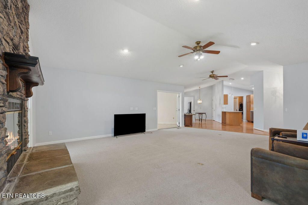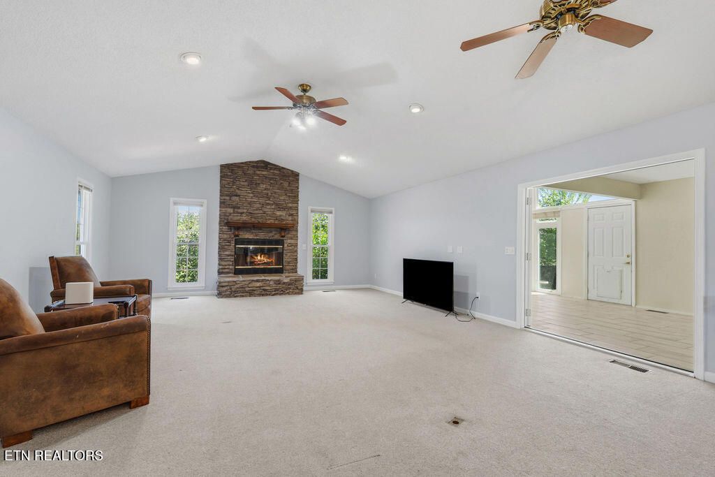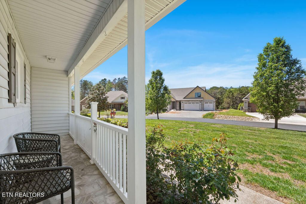 3 Bedrooms + 2 Bonus Rooms for Flexible Living! Spacious one-level living in a prime Tellico Village location near the Wellness & Recreation Center, featuring indoor and outdoor pools, tennis and pickleball courts, walking trails, and more! This beautifully maintained home offers a wide floor plan with a large great room featuring a stacked stone fireplace, cathedral ceiling, and abundant natural light. Just off the great room is an oversized sunroom with vaulted ceilings and large windows, the perfect place to relax and enjoy views of the private backyard. The kitchen features quartz countertops, pull-out shelving, countertop seating, and a spacious dining area. Two recently finished bonus rooms just off the dining space provide excellent flexibility for a home office, gym, hobby room, guest overflow, or more. The large primary suite offers two walk-in closets and a private ensuite bath. Additional highlights include a large private yard, oversized garage, level driveway, and no steps into the home for easy access and comfortable everyday living. A private rear deck provides a wonderful space for outdoor enjoyment. Located in the highly sought-after Tellico Village community with three championship golf courses, wellness amenities, recreation, and Tellico Lake nearby, this home offers the lifestyle, space, and convenience so many buyers are searching for.