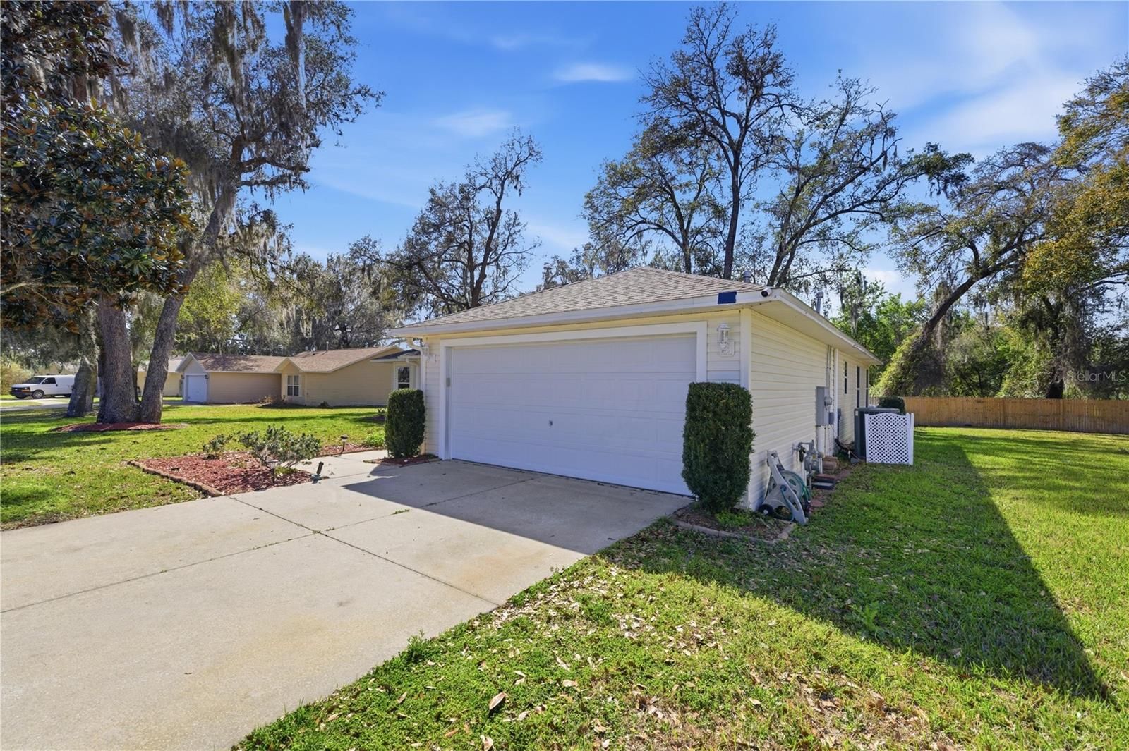 Well cared for and hard to find 4 bedroom, 2 bath home in a fantastic location! This move-in-ready property features a spacious living/family room with soaring vaulted ceilings and beautiful wood flooring throughout all living areas and bedrooms. The kitchen shines with stainless steel appliances, maple cabinets, and granite countertops, perfect for both everyday living and entertaining. Sliding glass doors with built-in blinds lead to a screened-in lanai overlooking the oversized, privacy-fenced backyard. The primary suite offers a large walk-in closet and an updated bathroom with granite countertops and a custom tiled walk-in shower. A desirable split floor plan places the three additional bedrooms and second bath on the opposite side of the home for added privacy. Additional highlights include a large laundry room with extra storage and a deep two-car garage with built-in storage. Situated on a quiet dead-end street with no through traffic in a great family neighborhood. Conveniently located near The Villages, plus close to shopping, dining, entertainment, schools, hospitals, and everyday amenities. Don’t miss this move-in ready gem! Roof 2018 AC 2022 - Trane 3.5 ton 16 Seer with transferable warranty for $99