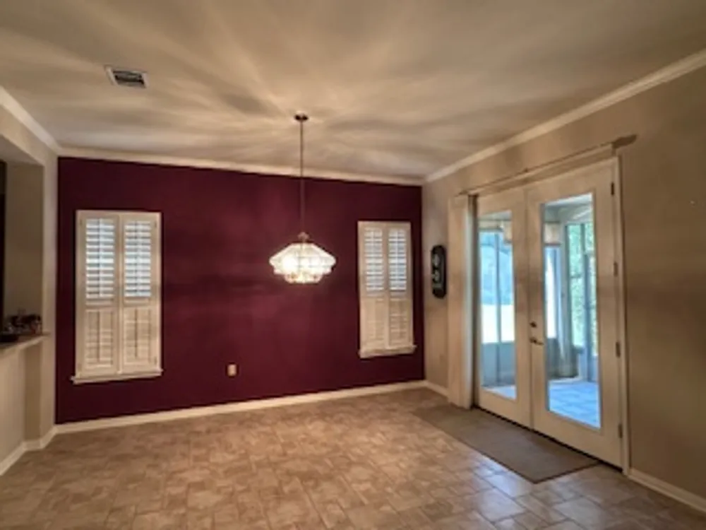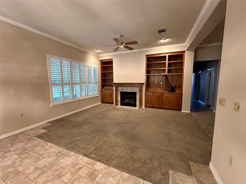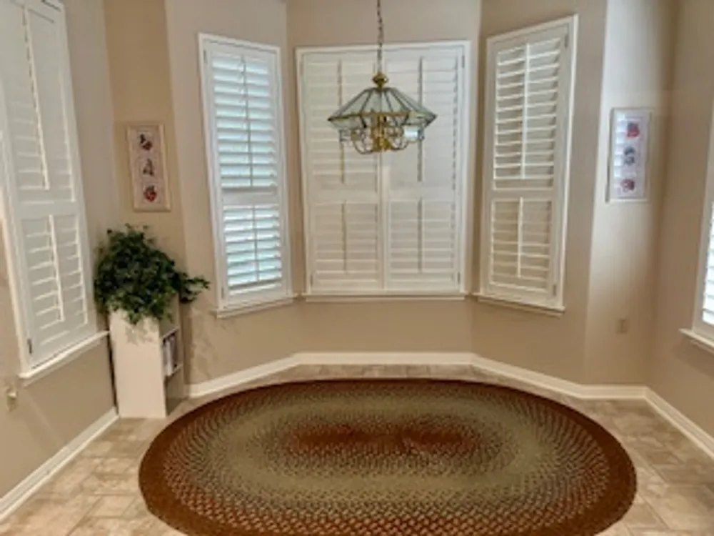- Breakfast Bar, Bookcases, Ceiling Fan(s), Crown Molding, Separate/Formal Dining Room, Entrance Foyer, Eat-in Kitchen, High Ceilings, Kitchen Island, Multiple Dining Areas, Main Level Primary, NoInteriorSteps, Pantry, Soaking Tub, Tile Counters, Walk-In Closet(s)