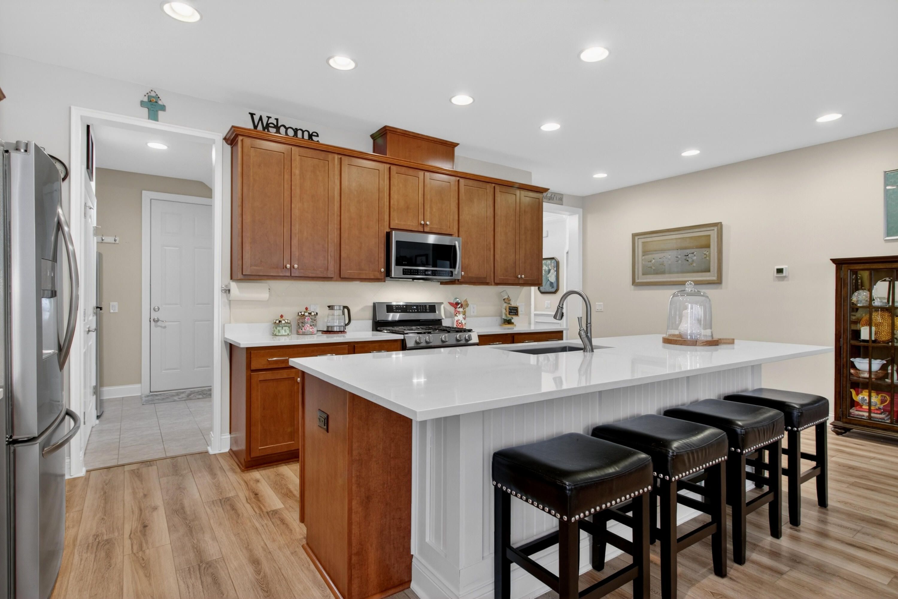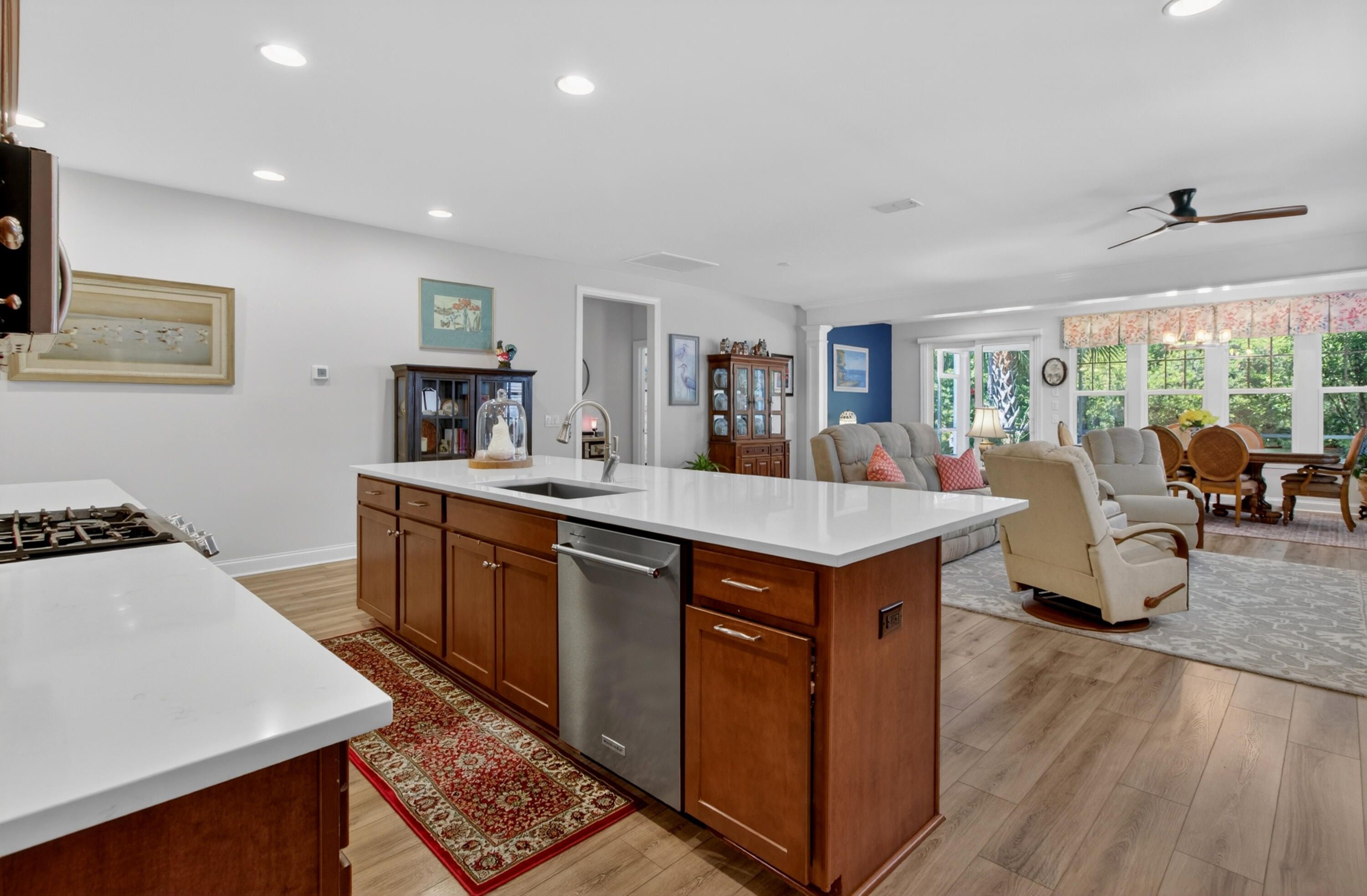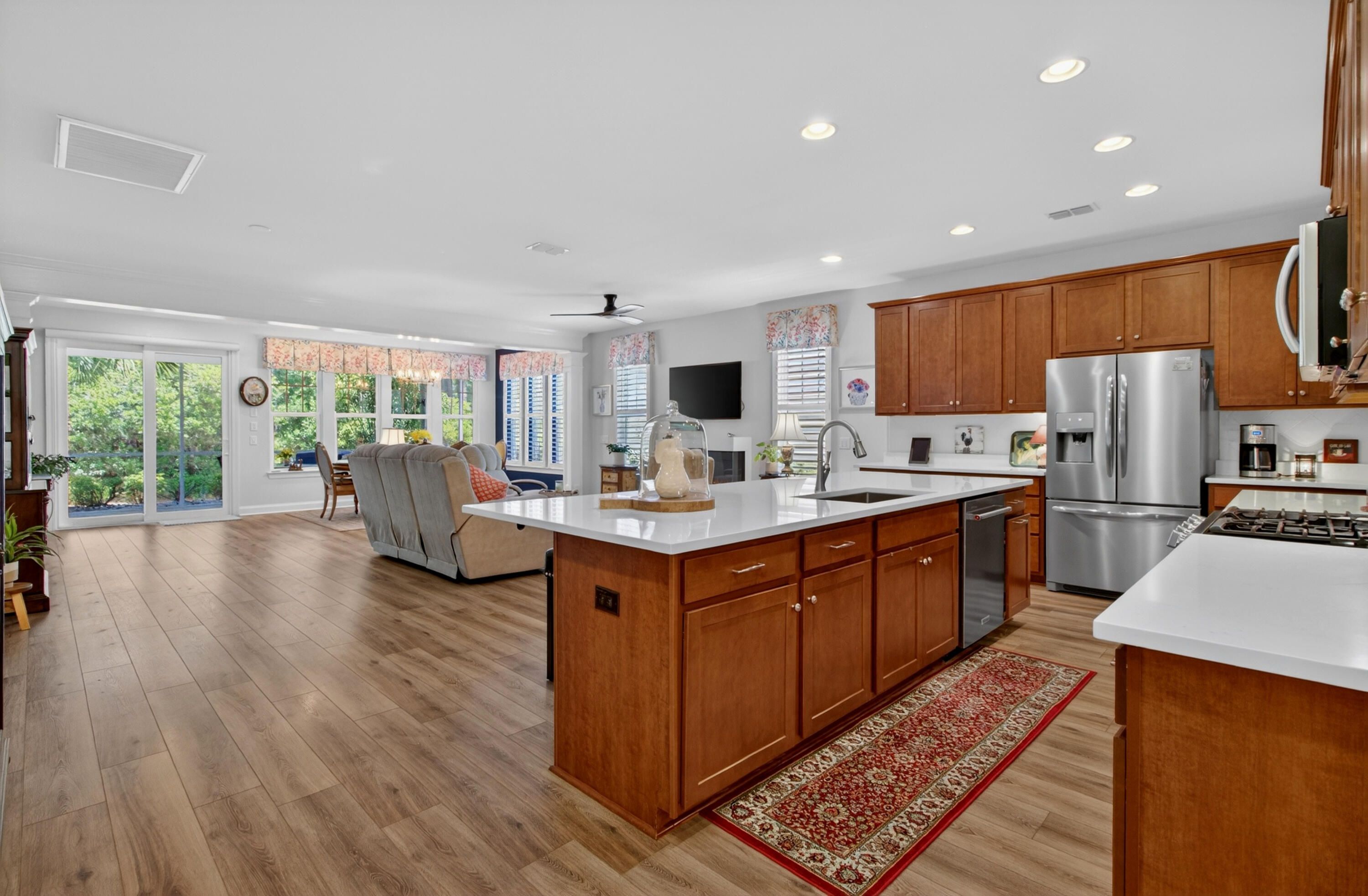 - Smooth Ceilings, High Ceilings, Kitchen Island, Walk-In Closet(s), Ceiling Fan(s), Eat-in Kitchen, Family Room, Entrance Foyer, Living/Dining Room