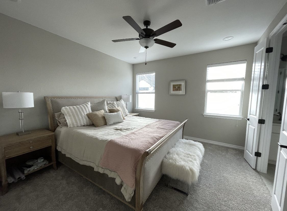 Welcome to the best value in the vibrant 55+ community of Kissing Tree! This guard-gated, active adult community offers an incredible lifestyle filled with amenities, activities, and opportunities to truly enjoy your next chapter. From the moment you arrive, you’ll appreciate the beautifully landscaped exterior and the added privacy of having no close neighbor on one side. Step inside to discover a home that perfectly balances elegance, comfort, and thoughtful design. A designer-inspired color palette highlights stunning neutral taupe wood flooring, creating a warm and welcoming feel throughout the main living areas. The bright white kitchen is both stylish and functional, featuring soft-close cabinetry, under-cabinet lighting, and upgraded white quartz countertops. The spacious kitchen, dining, and island layout creates the perfect setting for entertaining guests or simply enjoying everyday living. Bathrooms feature modern tile flooring, and the home offers an abundance of space and flexibility. The main bedroom suite is conveniently located on the first floor, while two additional bedrooms upstairs provide privacy for guests or family. A generous loft area offers the perfect space for a home office, media room, or additional living area. And the lifestyle? It’s second to none. Residents of Kissing Tree enjoy an incredible lineup of resort-style amenities, including: Indoor pool, outdoor pool, and spa State-of-the-art fitness center Championship golf 18 pickleball courts Bocce ball and darts A lively biergarten On-site neighborhood restaurant Art studio and library Dozens of clubs, groups, and organized activities This is more than just a home — it’s an opportunity to live actively, connect with neighbors, and enjoy every day to the fullest. Come see this beautiful home today and start living life the way it was meant to be!