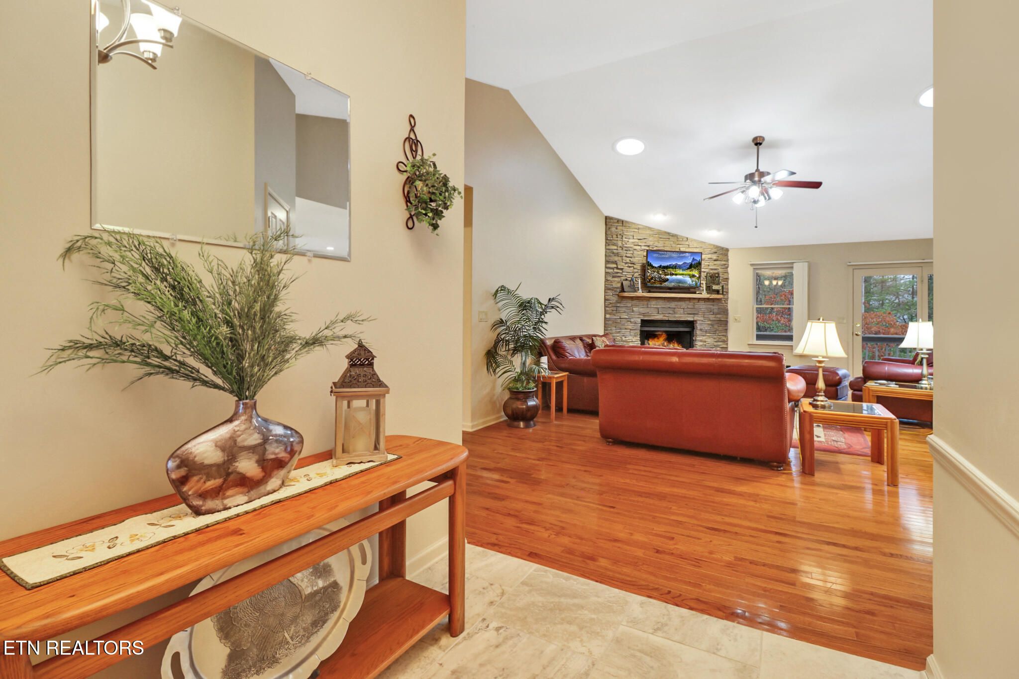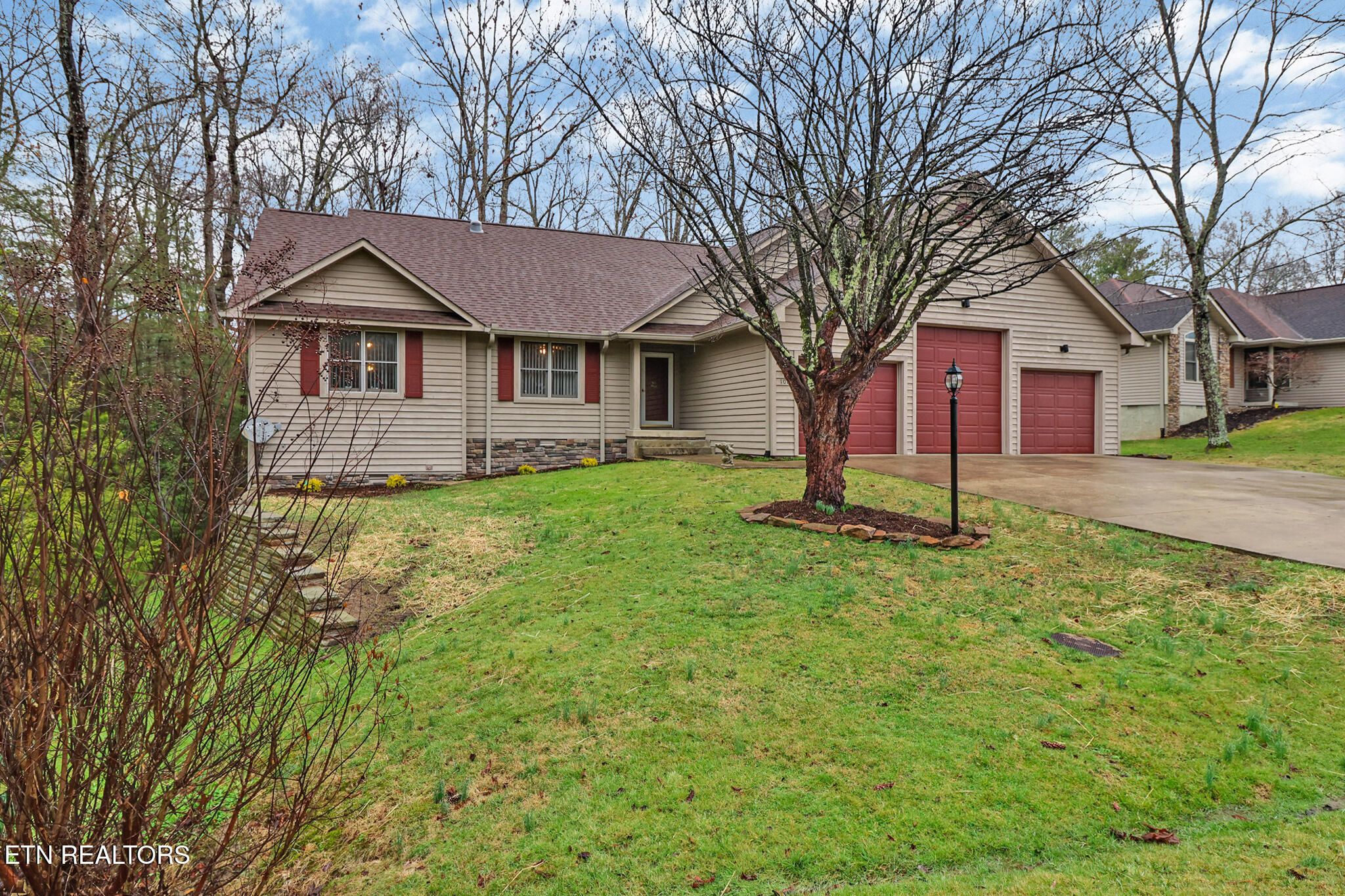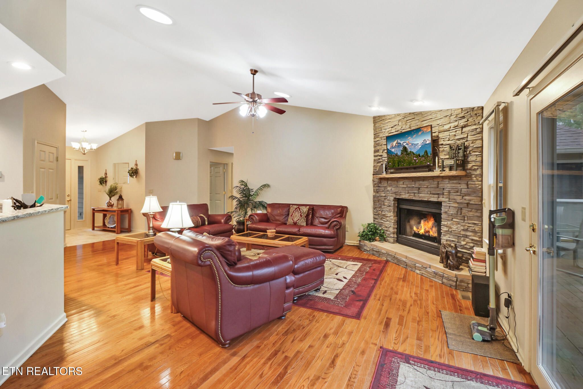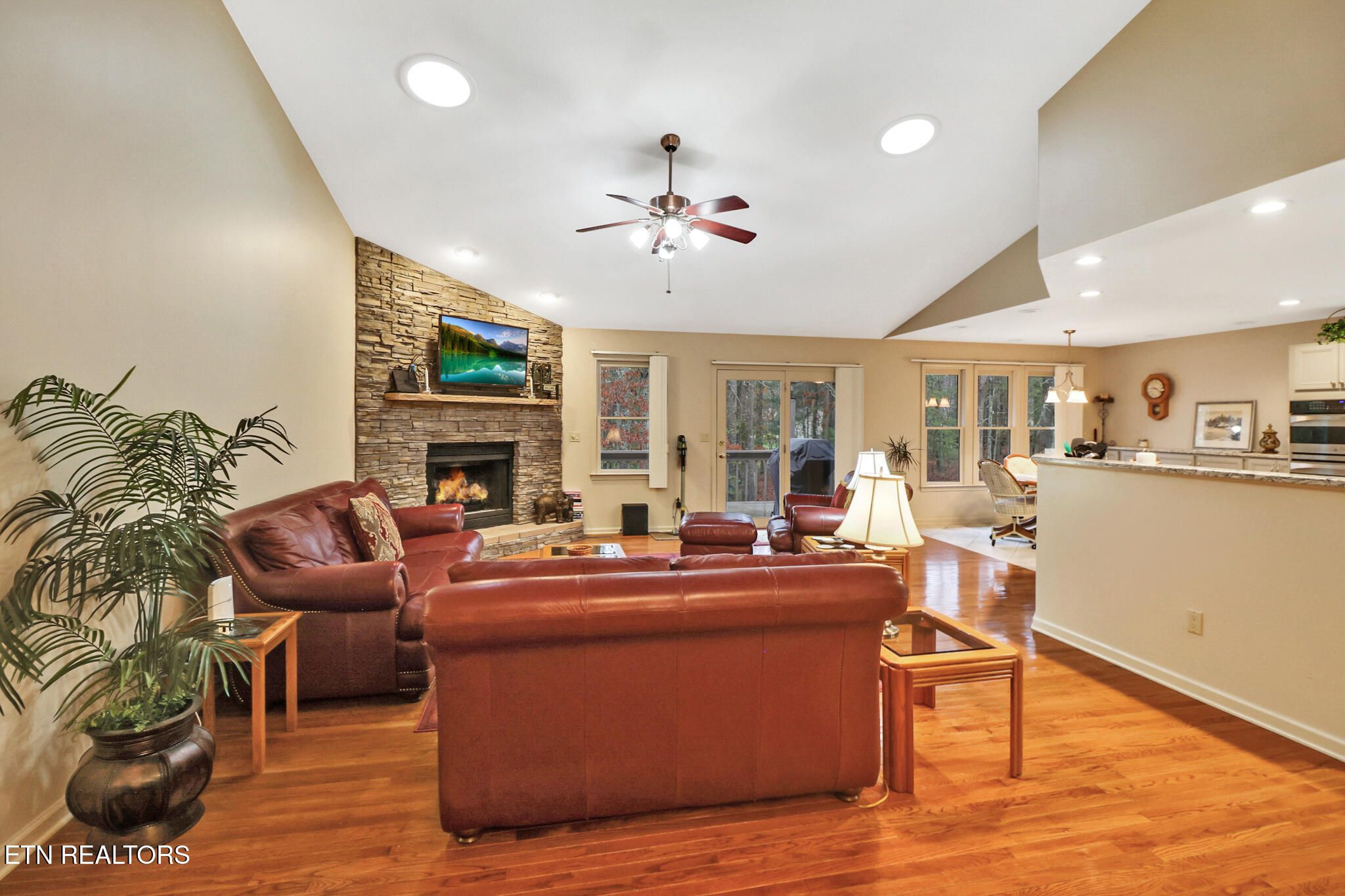 Welcome home to this beautifully maintained property offering the perfect blend of comfort, updates, and peaceful outdoor living! This spacious home features a 3-car garage with RV option, providing ample room for vehicles, storage, or recreational equipment. Inside, you'll love the open-concept living area with rich hardwood floors, abundant natural light, and a stunning gas stone fireplace that serves as the focal point of the main living space. The kitchen is designed for both everyday living and entertaining, complete with quartz countertops and appliances that were replaced in 2016. The seamless flow into the dining and living areas makes hosting effortless. The private primary suite offers a relaxing retreat, featuring a sunroom just off the master bedroom -- perfect for a home office, hobby room, workout space, or flex area. The updated master bath includes a luxurious Jacuzzi tub, creating a spa-like experience at home. A stackable washer and dryer in the closet convey, adding convenience. Major system updates provide peace of mind: • Roof replaced in 2018 • HVAC replaced in 2019 • Gutter spouts and guards replaced in 2019 • Two water heaters replaced in 2021 Step outside to enjoy the serene setting. The firepit area (which stays with the home) is ideal for gatherings, and a creek runs along the side of the property, adding to the natural charm and privacy. Whether relaxing on the deck or enjoying the wooded backdrop, this home offers a true retreat feel. Furniture is optional to remain, offering a potential turnkey opportunity. As an added bonus, the buyer will have first right to purchase the adjoining lot at 110 Kenwood, insuring privacy for the new owner. Don't miss the opportunity to own this thoughtfully updated home with space, flexibility, and beautiful natural surroundings!