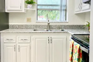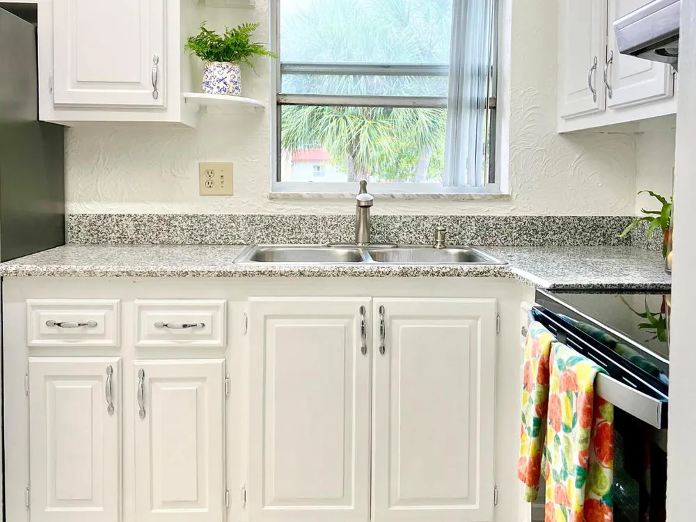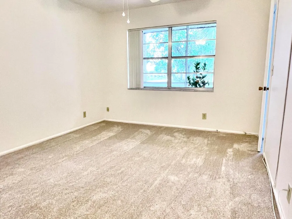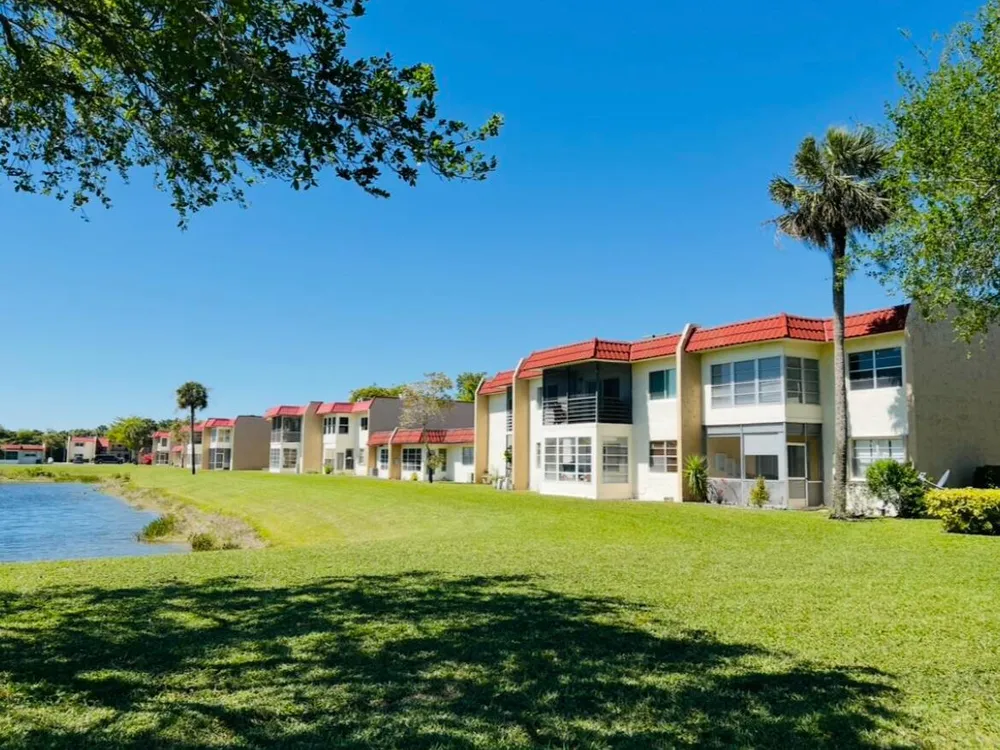 Sweet and cozy, second floor, corner unit tucked away in beautiful Golden Lakes Village. The kitchen has a large pantry, new granite countertops, and new appliances. The generously sized and includes a large walk-in closet with wooden shelves. The bathroom includes a modern vanity. Brand new carpet in both the living room and bedroom recently installed. Enjoy the private, covered porch with water and lush foliage views. Golden Lakes is a highly desirable neighborhood with close proximity to Florida's turnpike, I95, Palm Beach, Kravis Center, and countless shops and restaurants. The community offers a library, card room, pool, hot tub, fitness center, shuffle board and bocce courts, and a lovely clubhouse. Basic cable and water included in the monthly fee.
