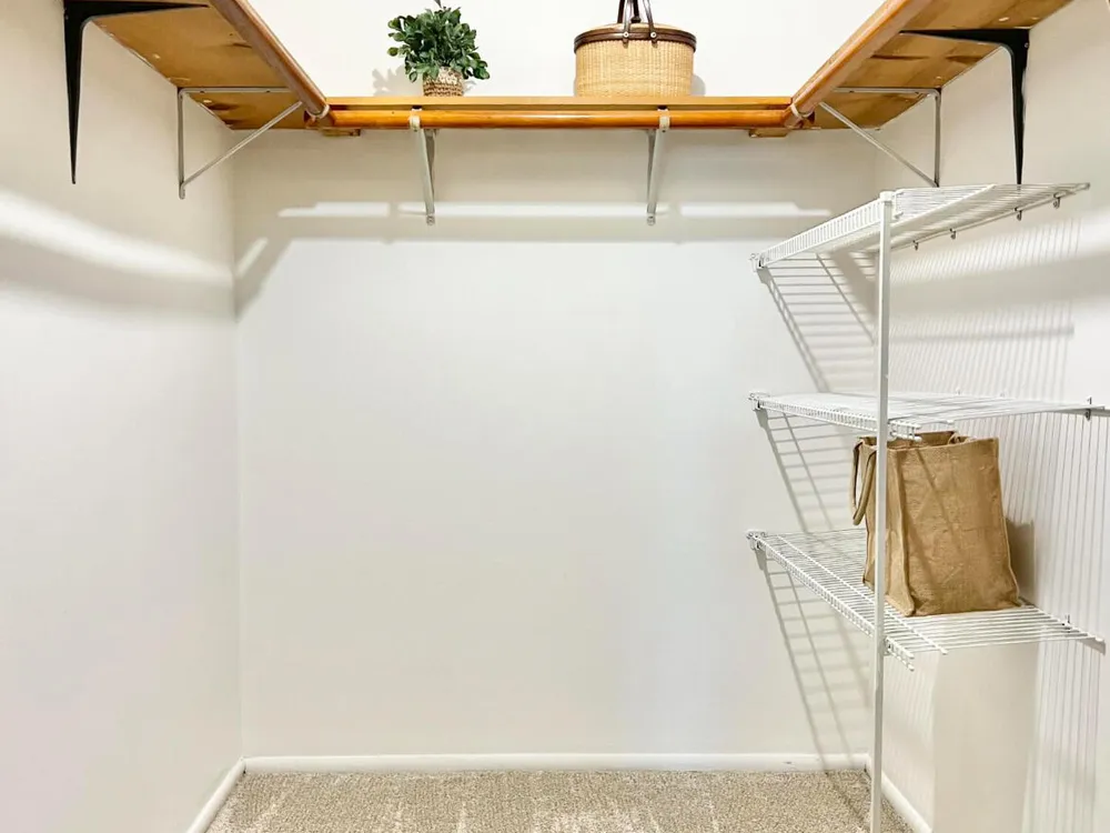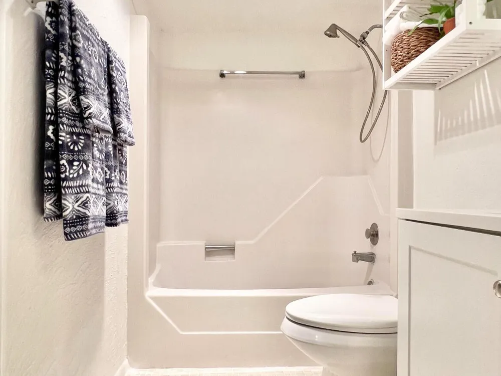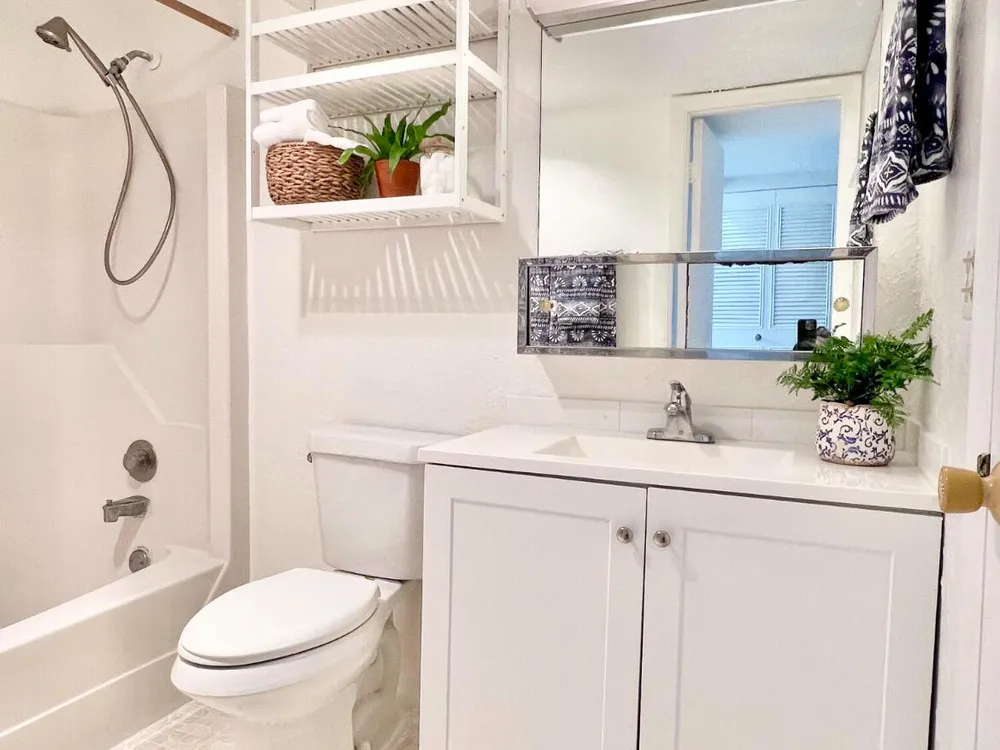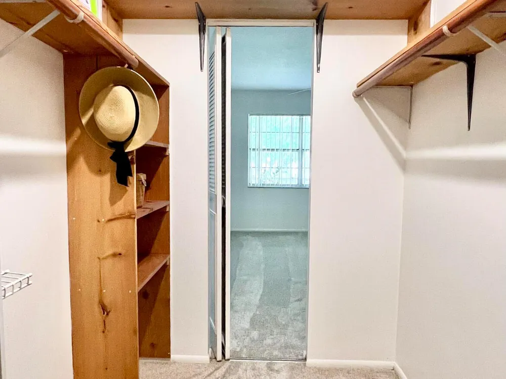 - Built-in Shelving, Pantry, Walk-In Closet(s), Living/Dining Room, Blinds, Tub Shower, Storm Shutters
