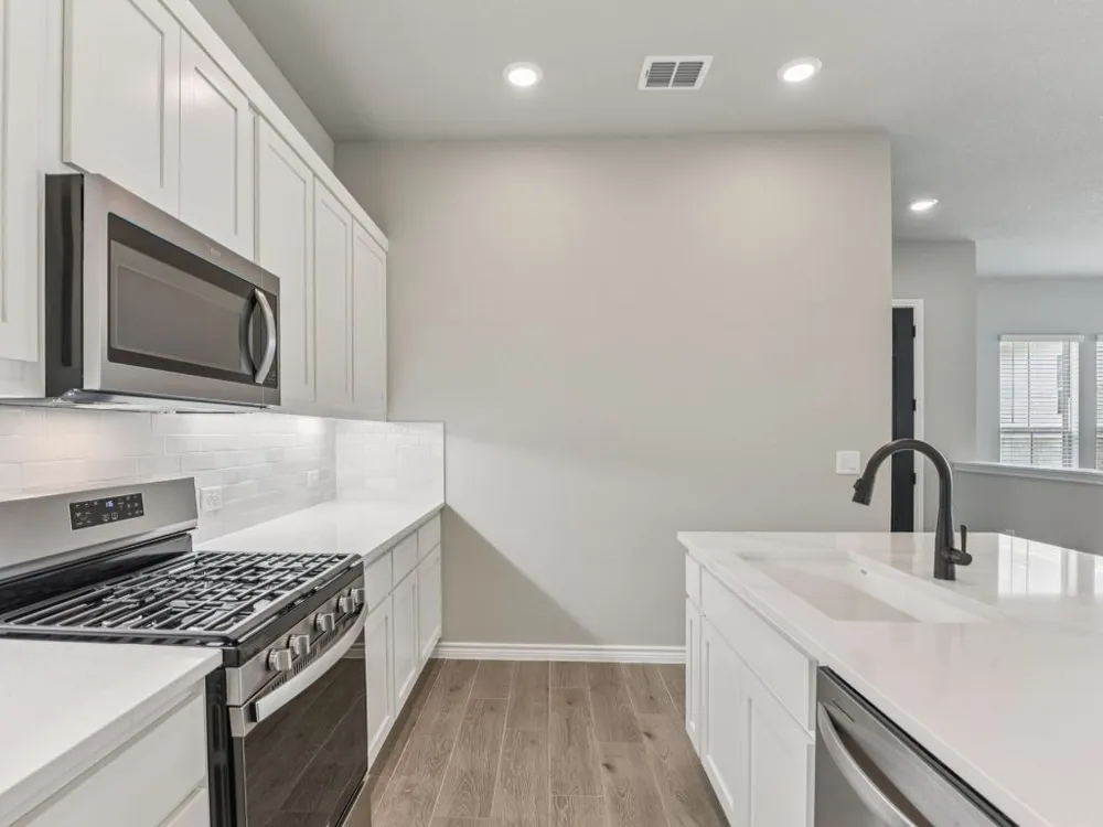 Mitchell plan with upgraded PEBBLE flooring, quartz countertops, 8' doors throughout, Express cordless blinds