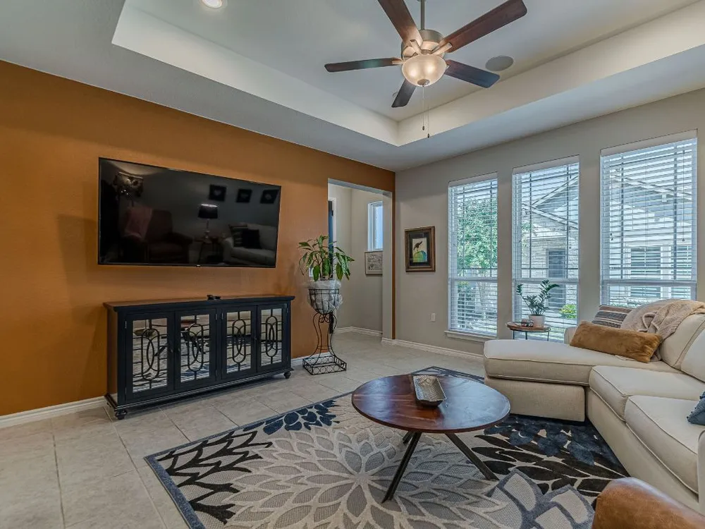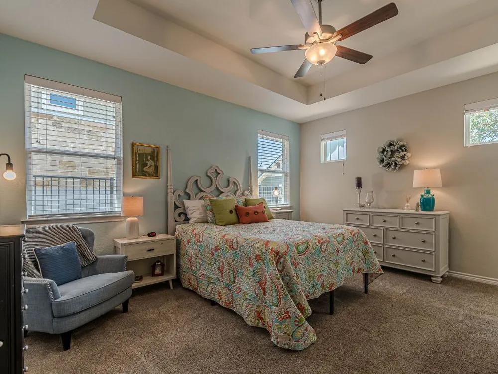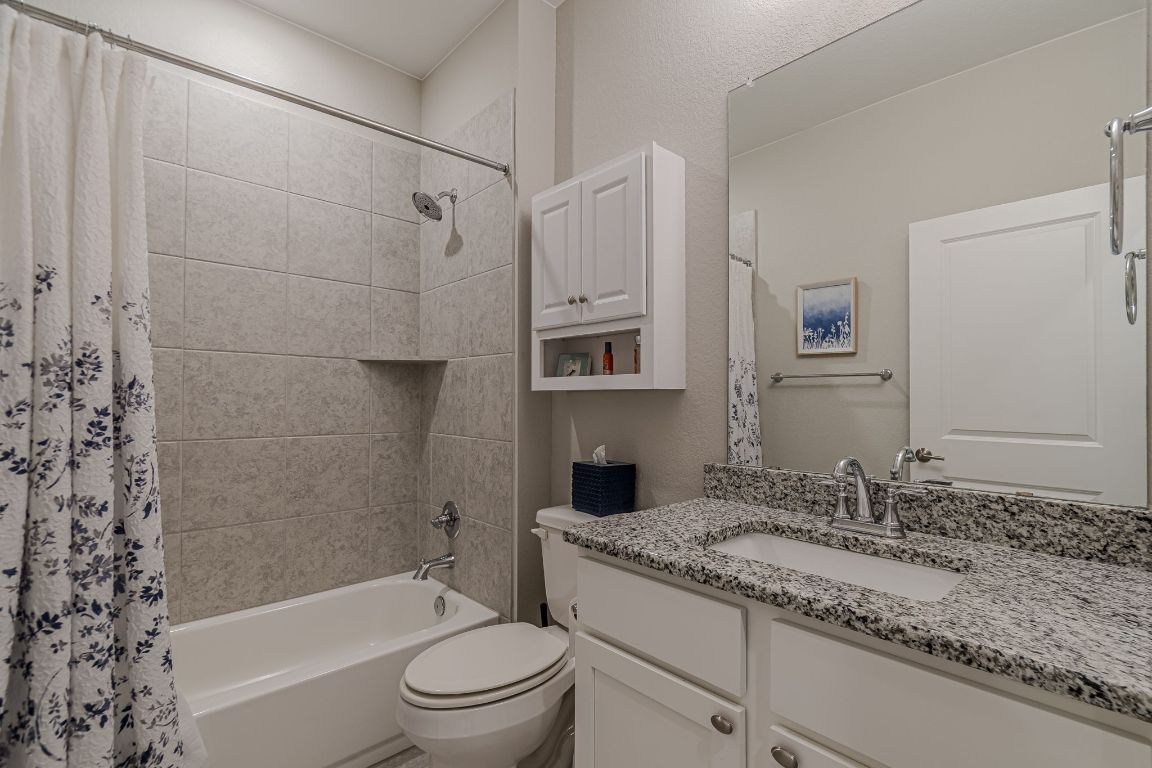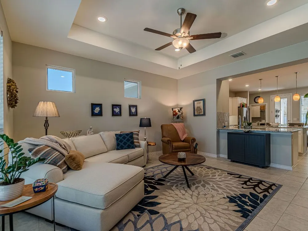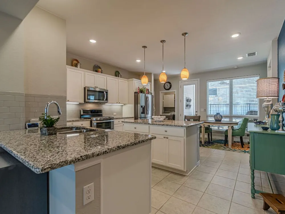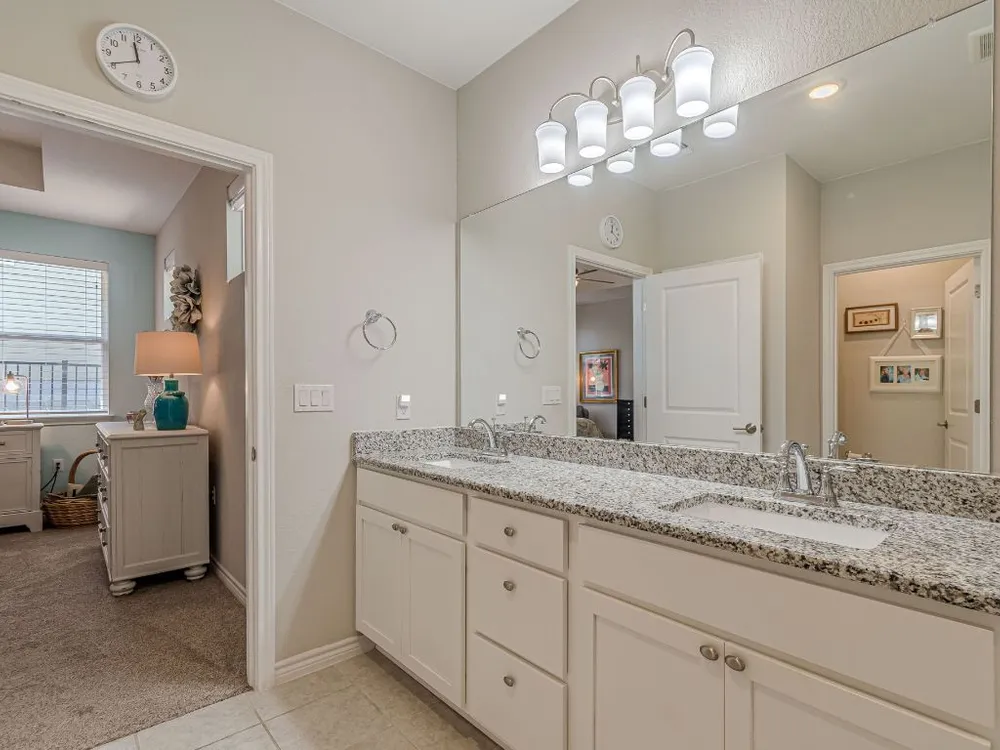 - Breakfast Bar, Tray Ceiling(s), Ceiling Fan(s), Double Vanity, Granite Counters, Kitchen Island, Main Level Primary, Pantry, Recessed Lighting, Smart Thermostat, Wired for Data, Bar