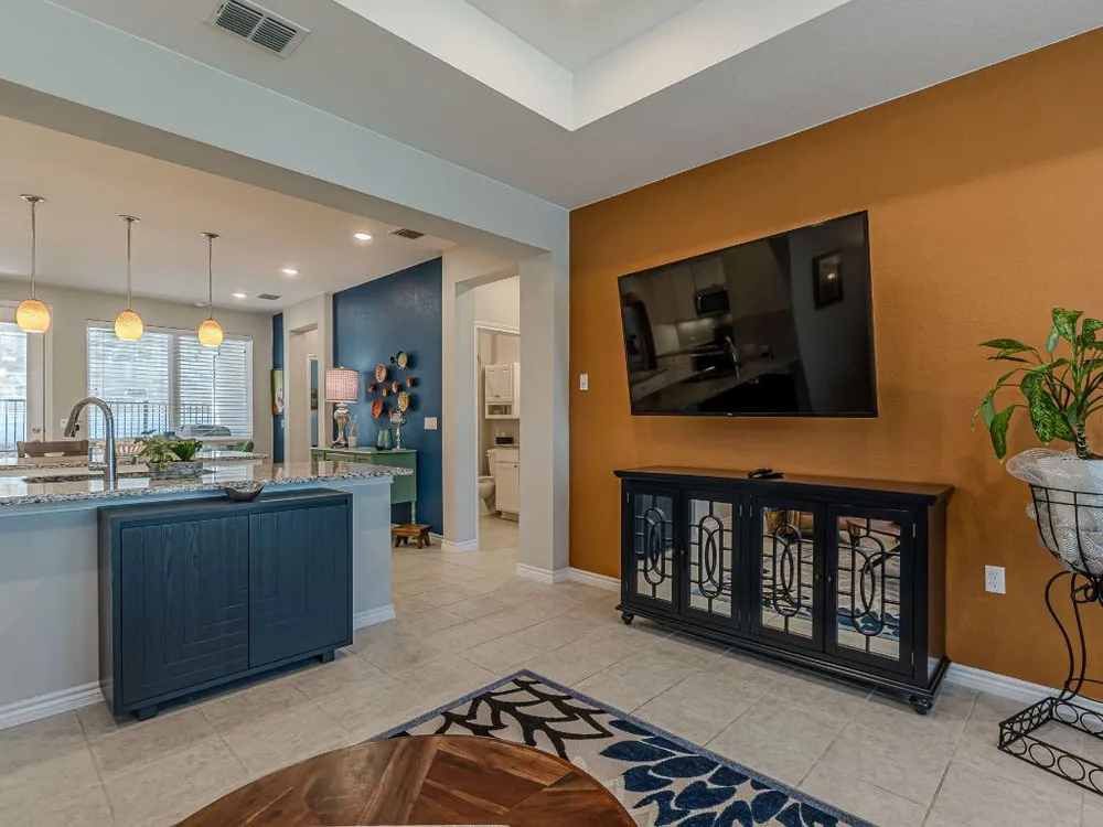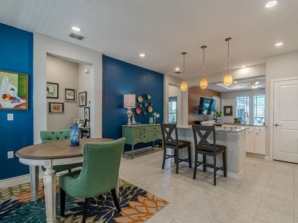What a treasure of a home you just found! Location, location, location - with close proximity to the amenity center, fitness center, and all the extras this beautiful community offers!This home shines with pride of ownership in all that it offers! Tile flooring throughout most of the home with trayed ceilings in the living room and master bedroom to give you a nice spacious vibe. The open kitchen/dining/living concept gives a great open, light and airy feel to this space. The colors throughout the home give a designers touch with colorful accent walls, white cabinets throughout and neutral granite counters. The master bathroom gives perfect natural light and offers space both in the bathroom and closet. The one and a half car garage fit an SUV and a golf cart perfectly! You must come see all that this home has to offer. Start your active living lifestyle in this home at Kissing Tree - before someone else picks up this home!