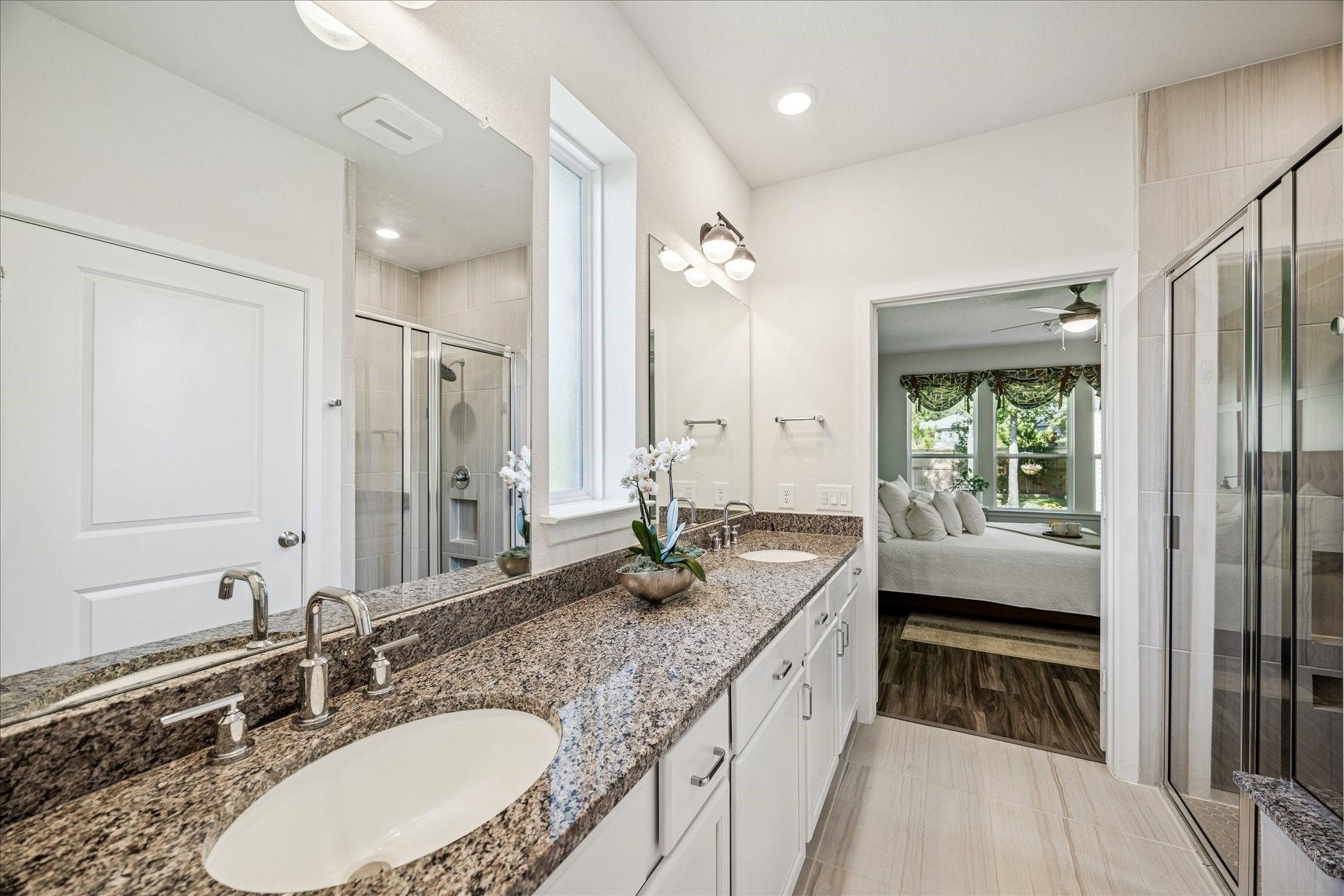 - Double Vanity, High Ceilings, Kitchen/Family Room Combo, Pantry, Separate Shower, Window Treatments, Ceiling Fan(s), Programmable Thermostat