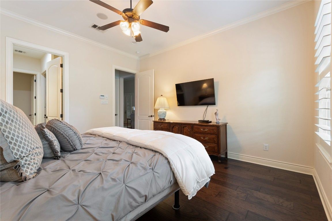- Wet Bar, Breakfast Bar, Ceiling Fan(s), Crown Molding, Entrance Foyer, Granite Counters, High Ceilings, Kitchen Island, Main Level Primary, NoInteriorSteps, Open Floorplan, Pantry, Recessed Lighting, Walk-In Closet(s), Wired for Sound
