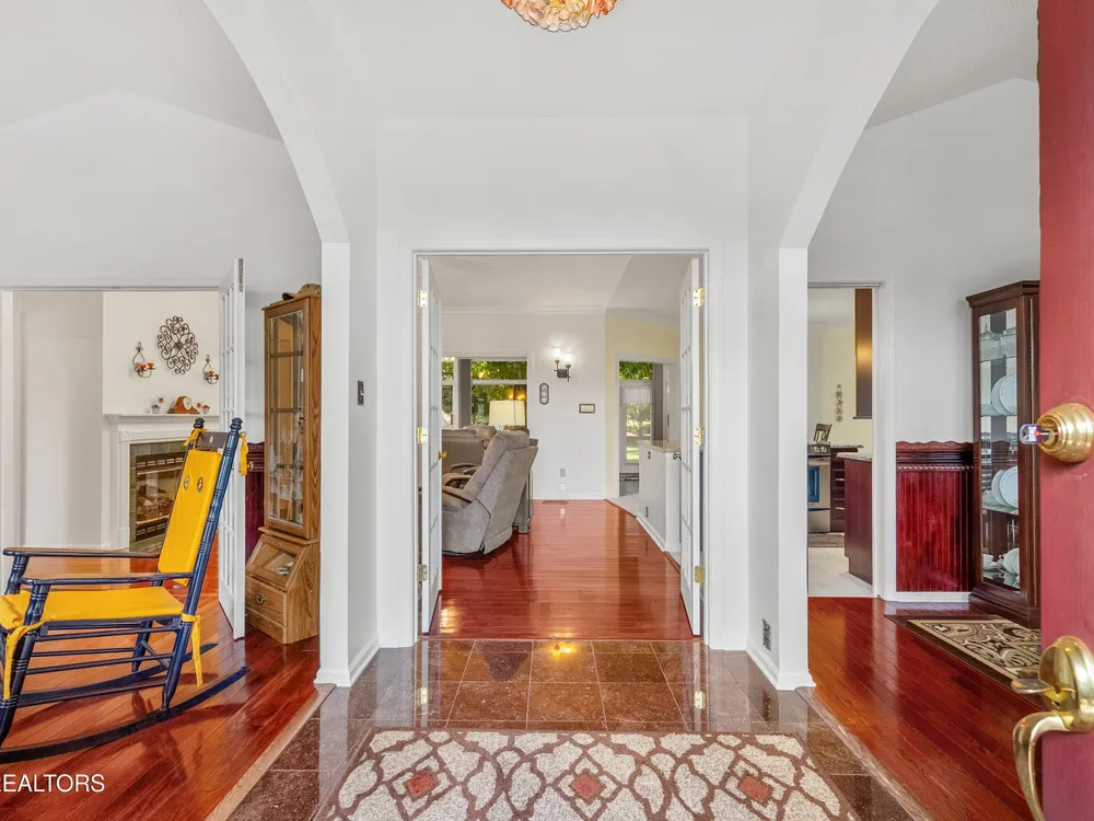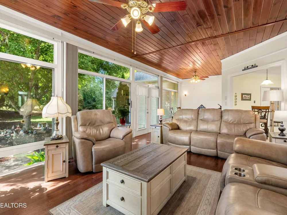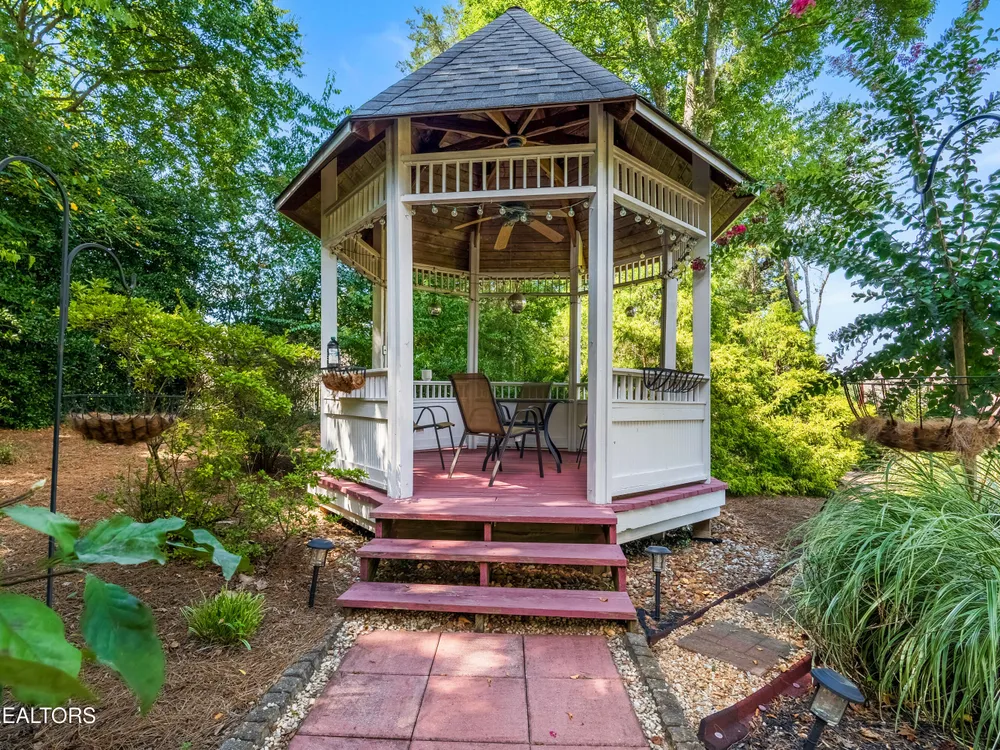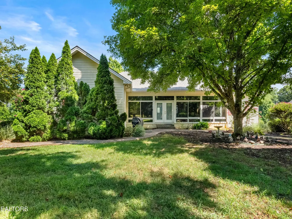Spacious ranch home on the north side of Tellico Village located on an oversized lot with an abundantly landscaped yard. Close to Tanasi golf-course. Open concept with one-level living at its finest. Large primary ensuite with recently remodeled bathroom offers huge walkin (no threshold) shower. Gas fireplace in the primary bedroom with high ceilings. Updated kitchen offers rich cherry wood cabinets, granite counters, center island and stainless-steel appliances. Aqua clear reverse osmosis for drinking water and ice maker. Huge sunroom along the back of the house is lined with windows and breathtaking views of the backyard. Three areas in the backyard to sit and watch the wildlife: patio off the rear of the house, a secondary patio with a fire pit located among trees and flowering bushes, and a gazebo surrounded by more flowers and bushes. Large laundry with extra storage. All appliances. Oversized, turnaround aggregate driveway. Garage has epoxy flooring. Encapsulated crawlspace. Instant hot water tank.