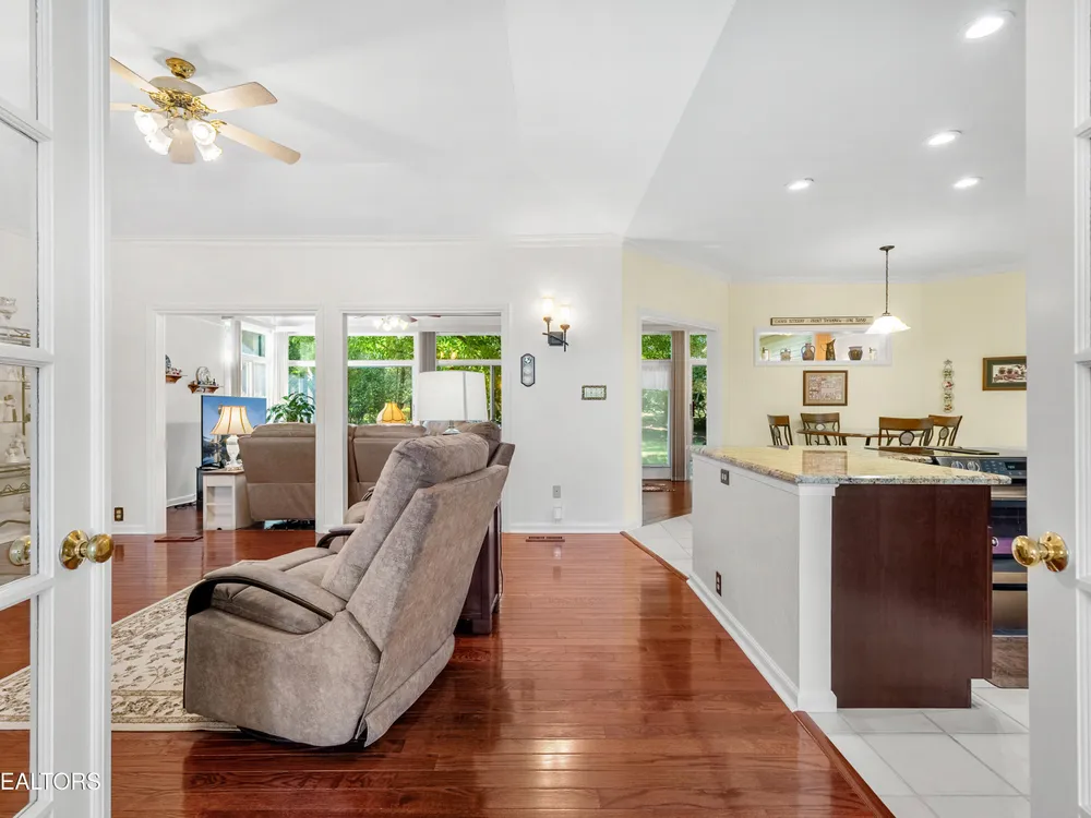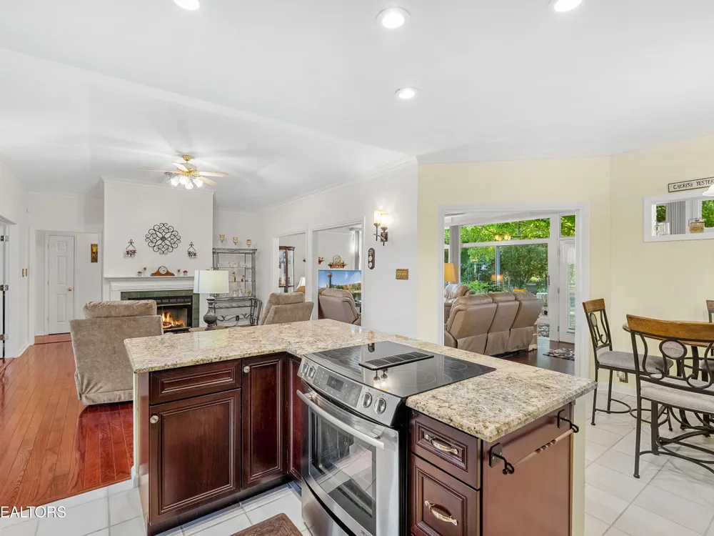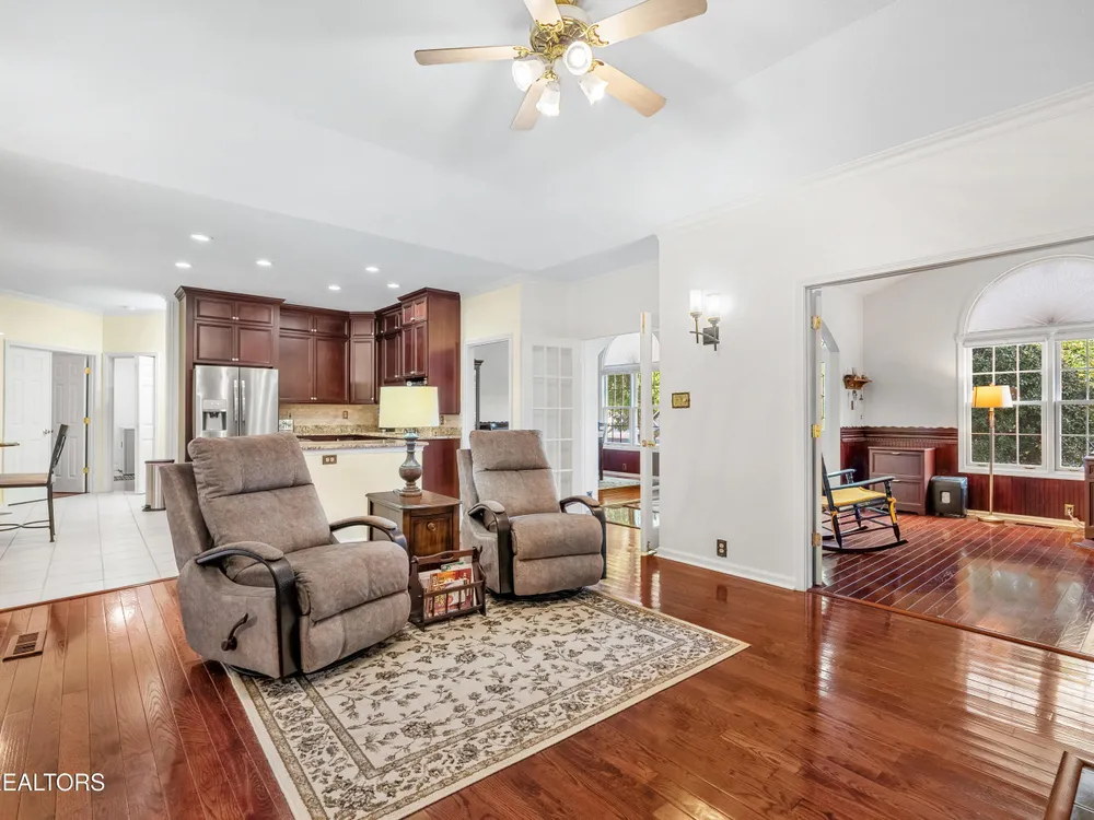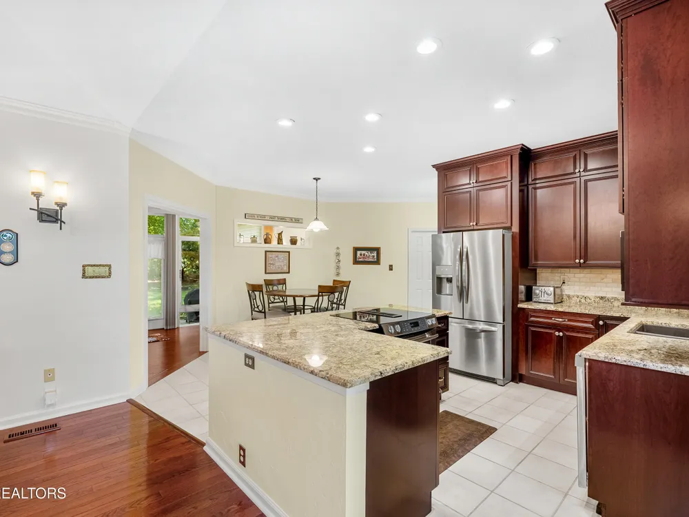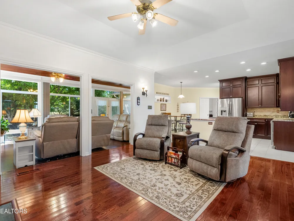 Spacious ranch home on the north side of Tellico Village located on an oversized lot with an abundantly landscaped yard. Close to Tanasi golf-course. Open concept with one-level living at its finest. Large primary ensuite with recently remodeled bathroom offers huge walkin (no threshold) shower. Gas fireplace in the primary bedroom with high ceilings. Updated kitchen offers rich cherry wood cabinets, granite counters, center island and stainless-steel appliances. Aqua clear reverse osmosis for drinking water and ice maker. Huge sunroom along the back of the house is lined with windows and breathtaking views of the backyard. Three areas in the backyard to sit and watch the wildlife: patio off the rear of the house, a secondary patio with a fire pit located among trees and flowering bushes, and a gazebo surrounded by more flowers and bushes. Large laundry with extra storage. All appliances. Oversized, turnaround aggregate driveway. Garage has epoxy flooring. Encapsulated crawlspace. Instant hot water tank.