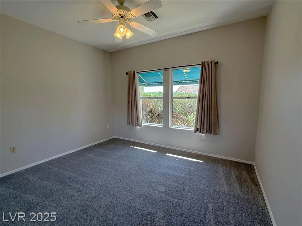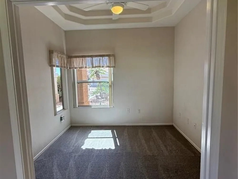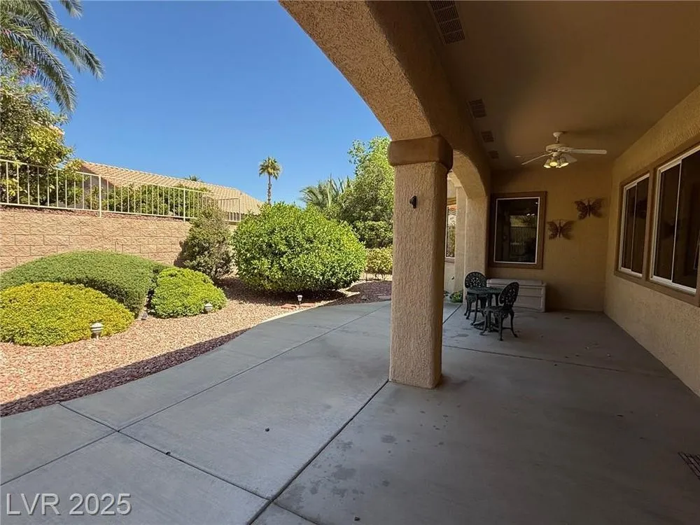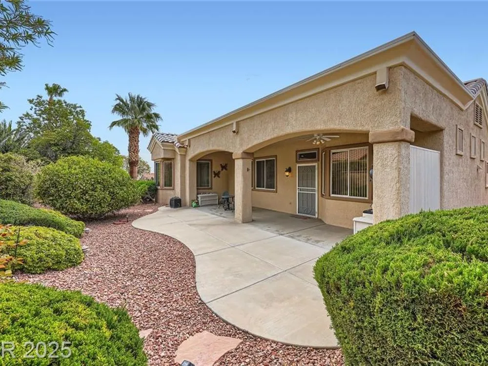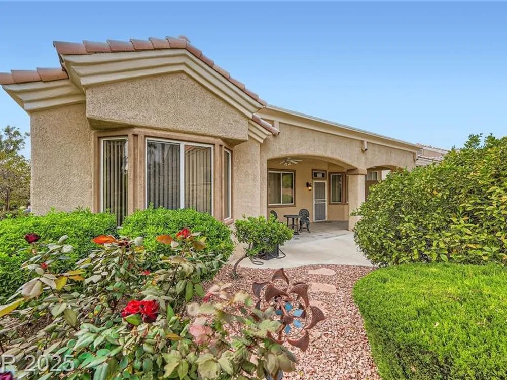 Popular Royale Model in newest section of the Sun City Summerlin Golf Course community, 1520 sq. ft. 2 bedroom, 2 bathrooms featuring a separate den/office and additional room with built-in desk. This welcoming home has numerous upgrades an open floor plan, natural light, and ample areas for storage. Freshly painted, new carpet in the living room and bedrooms. The kitchen is equipped with stainless steel appliances, updated cabinetry, a breakfast bar, eat-in nook with bay window, and is open to the family room. Easy access to the private extended covered back patio and gas BBQ grill, 2 ceiling fans, and yard with a fruit-bearing lemon bush. Primary suite is a nice retreat w/bay window, ceiling fan, two mirrored closets, one of which is a walk-in closet in the ensuite bathroom. The secondary bedroom is spacious with mirrored closet doors and ceiling fan. Two-car garage, built-in cabinets, laundry area & insulated garage door with natural light. Enjoy the extensive community activities.