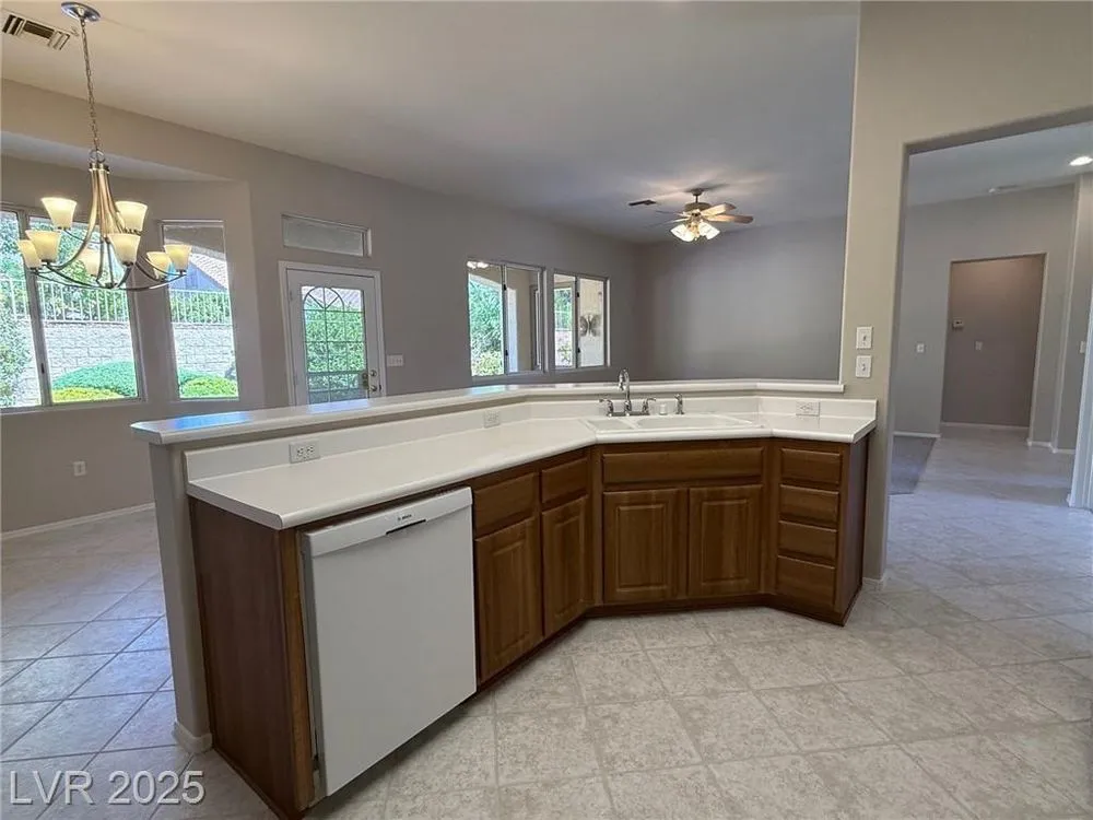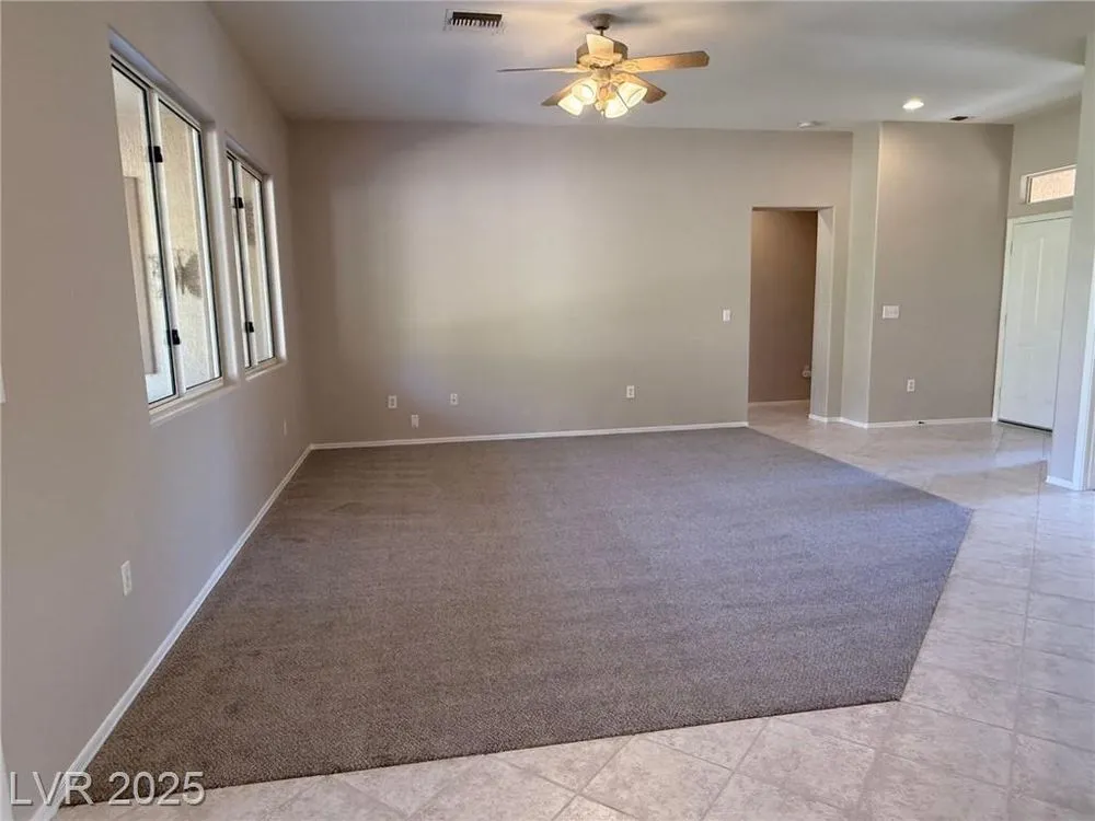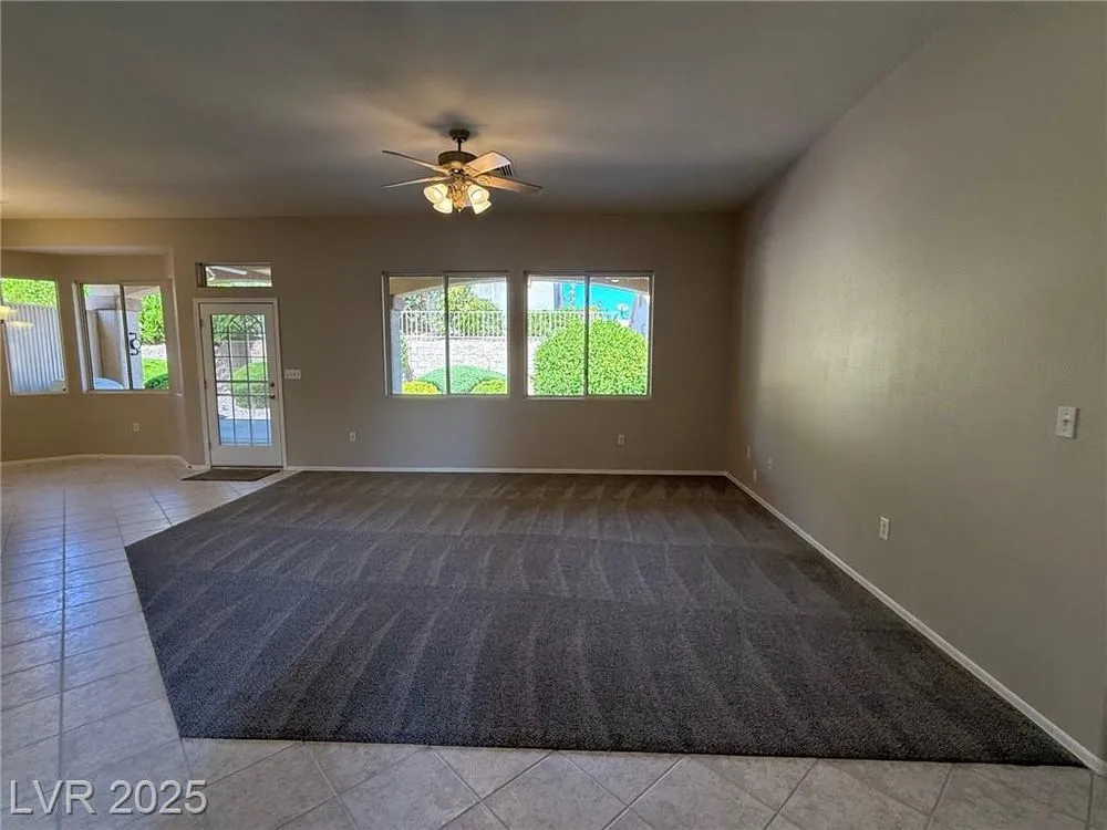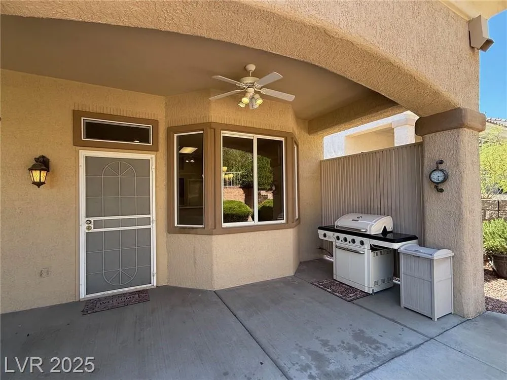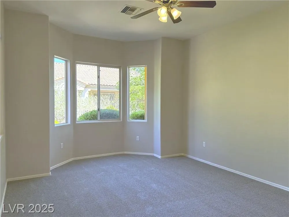 Popular Royale Model in newest section of the Sun City Summerlin Golf Course community, 1520 sq. ft. 2 bedroom, 2 bathrooms featuring a separate den/office and additional room with built-in desk. This welcoming home has numerous upgrades an open floor plan, natural light, and ample areas for storage. Freshly painted, new carpet in the living room and bedrooms. The kitchen is equipped with stainless steel appliances, updated cabinetry, a breakfast bar, eat-in nook with bay window, and is open to the family room. Easy access to the private extended covered back patio and gas BBQ grill, 2 ceiling fans, and yard with a fruit-bearing lemon bush. Primary suite is a nice retreat w/bay window, ceiling fan, two mirrored closets, one of which is a walk-in closet in the ensuite bathroom. The secondary bedroom is spacious with mirrored closet doors and ceiling fan. Two-car garage, built-in cabinets, laundry area & insulated garage door with natural light. Enjoy the extensive community activities.