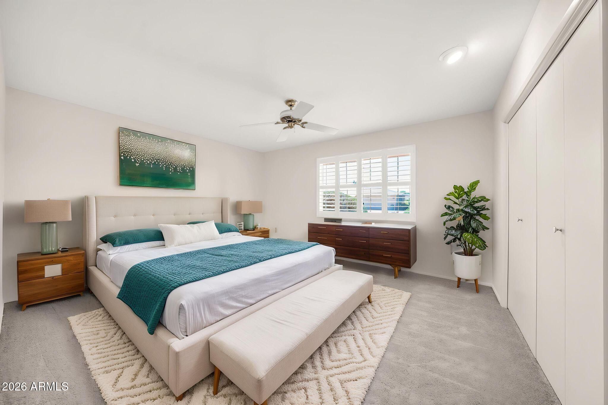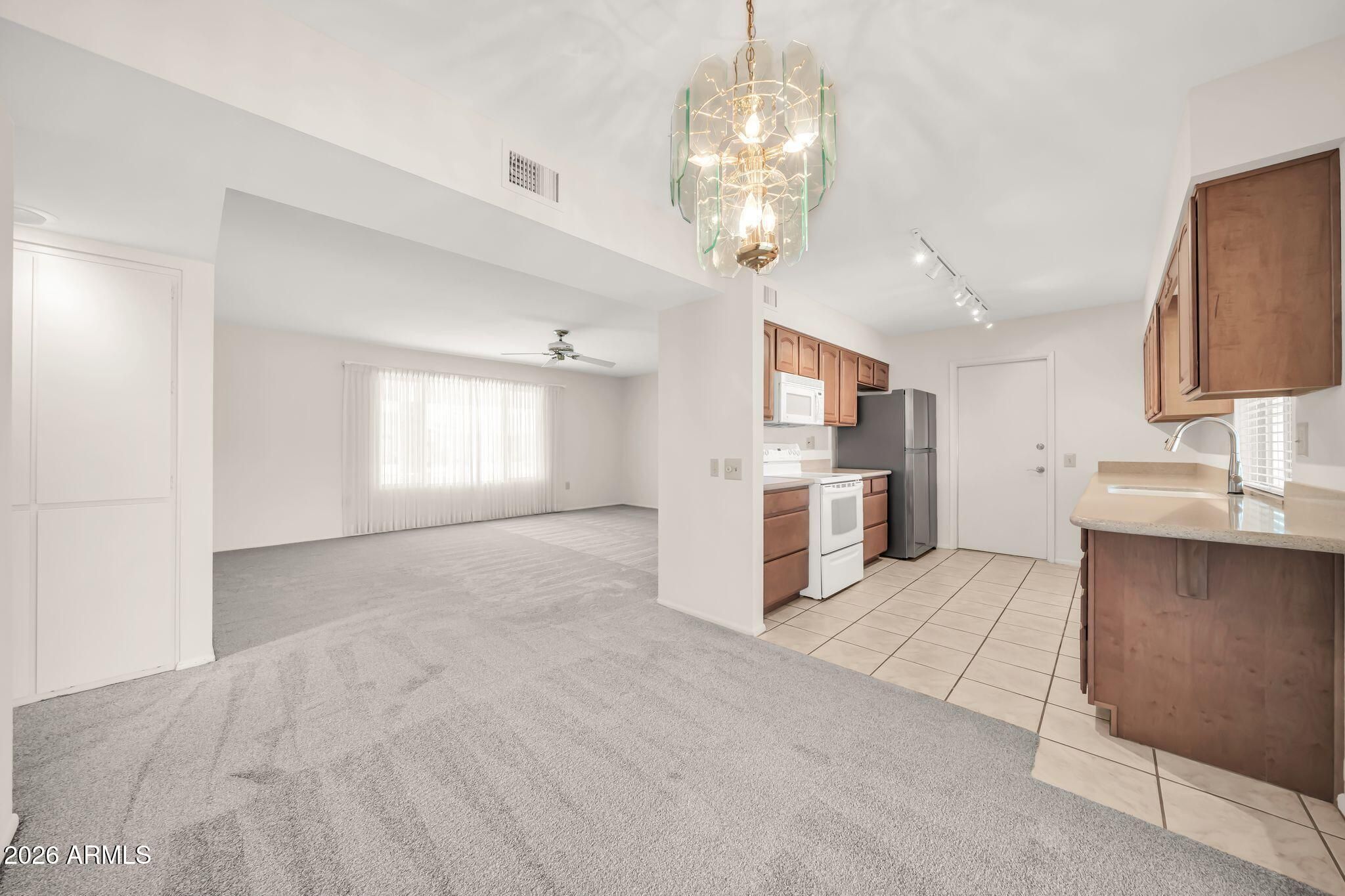This beautifully updated, turnkey 3-bedroom, 2-bathroom home in Arizona's premier 55+ active adult community checks every box. The galley kitchen features updated finishes, while both bathrooms have been tastefully remodeled for a fresh, spa-like feel. Brand-new carpet adds warmth and comfort throughout, and the primary suite boasts its own entrance. The backyard landscaping was recently redone and the garage floor and both patios have been epoxied. Best of all, the big-ticket items are already covered newer windows, new roof (2020), new A/C (2025) and new washing machine (2026). Beyond your front door, enjoy world class golf, resort style pools, recreation centers, and a vibrant social scene that makes every day feel like a vacation.