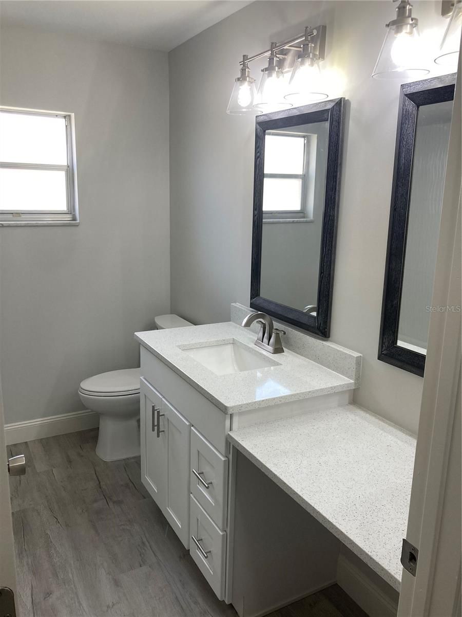 FHA Eligible!!!! Beautifully remodeled 2/1.5/1 in Timber Oaks. This 55+ Community offers a gorgeous clubhouse with a pool, tennis courts, activities, and more. Pulling up to the home you with notice the freshly painted exterior with neutral colors, new landscaping, and a new roof. The interior of the home has been painted from the ceilings down to the new 5 1/4" baseboards. New LVP runs throughout the home with new interior doors and casing. The kitchen has New White Shaker style cabinets with crown molding, new Quartz countertops, New SS appliance package, and custom backsplash. The bathroom has a new all wood vanity with quartz countertop. The Shower surround, lighting, and toilet are also new. County Records State Home is 864 Sqft but the Florida room has been enclosed and is under air. This room would be great as an office, workout area, or just a little more space. A newer A/C (2021) completes the home