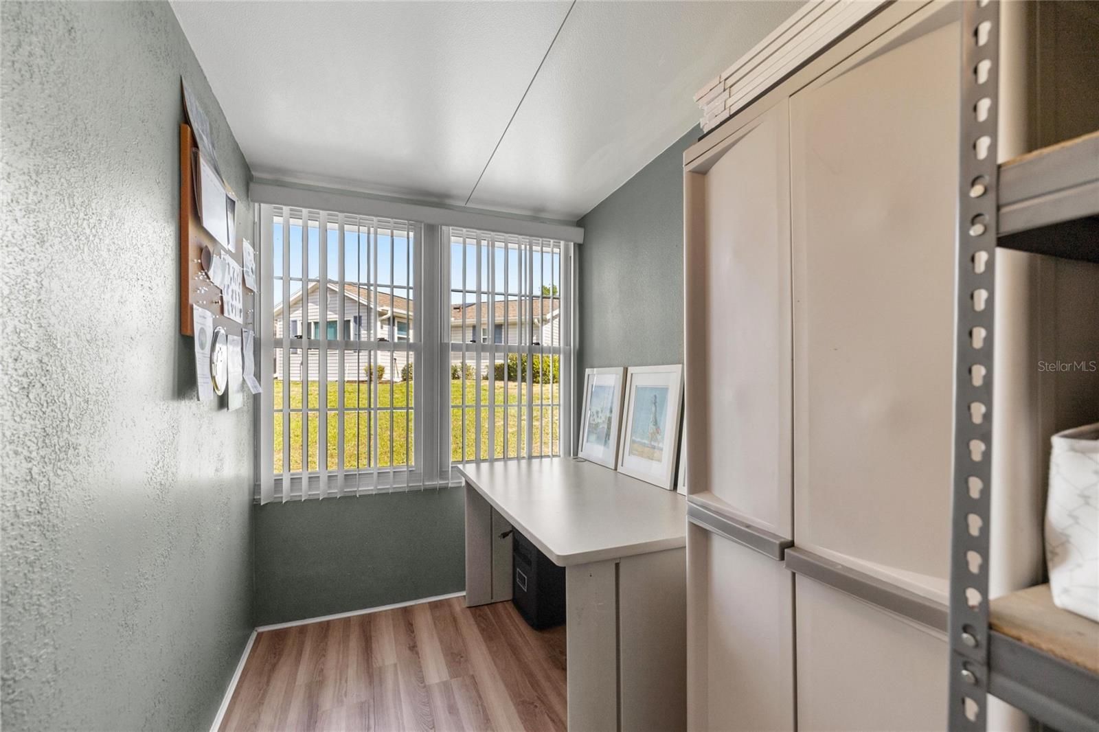 Meticulously maintained and thoughtfully upgraded, this move-in ready home features a newer roof, HVAC, and water heater and sits on an oversized lot. The property offers an oversized 2-car garage with epoxy flooring, man door, screen, and a thermostat-controlled attic fan to help keep the space cool. Inside, enjoy a spacious layout with separate living and family rooms, a separate dining area, and vaulted ceilings. The home features laminate and tile flooring throughout with no carpet, along with plantation shutters, blinds, curtain rods, and ceiling fans in every room. The large primary bedroom includes double-door entry and an ensuite bath with a double marble vanity and walk-in shower, while the guest bathroom includes a tub. Relax in the extra-large screened front porch or the enclosed lanai with glass windows and its own AC unit. Off the lanai is an oversized interior storage room with barn doors and a window, ideal for an office or flex space. Washer and dryer convey. Located in a desirable 55+ community offering multiple pools, restaurants, golf, a dog park, and a wide range of recreational and social activities, all conveniently close to medical facilities, shopping, and dining.