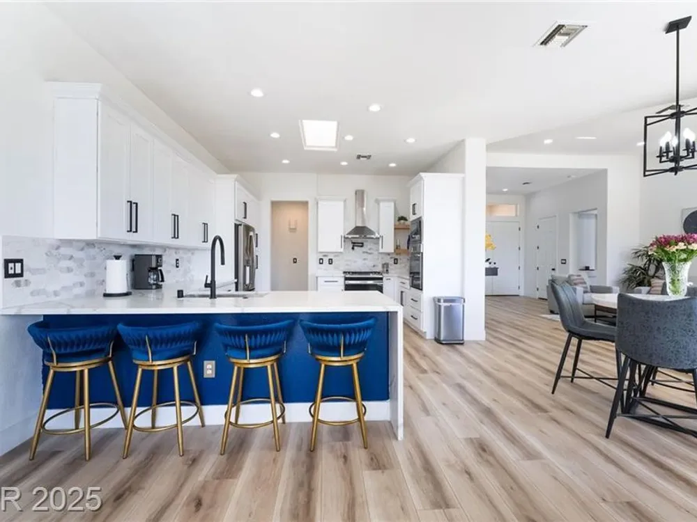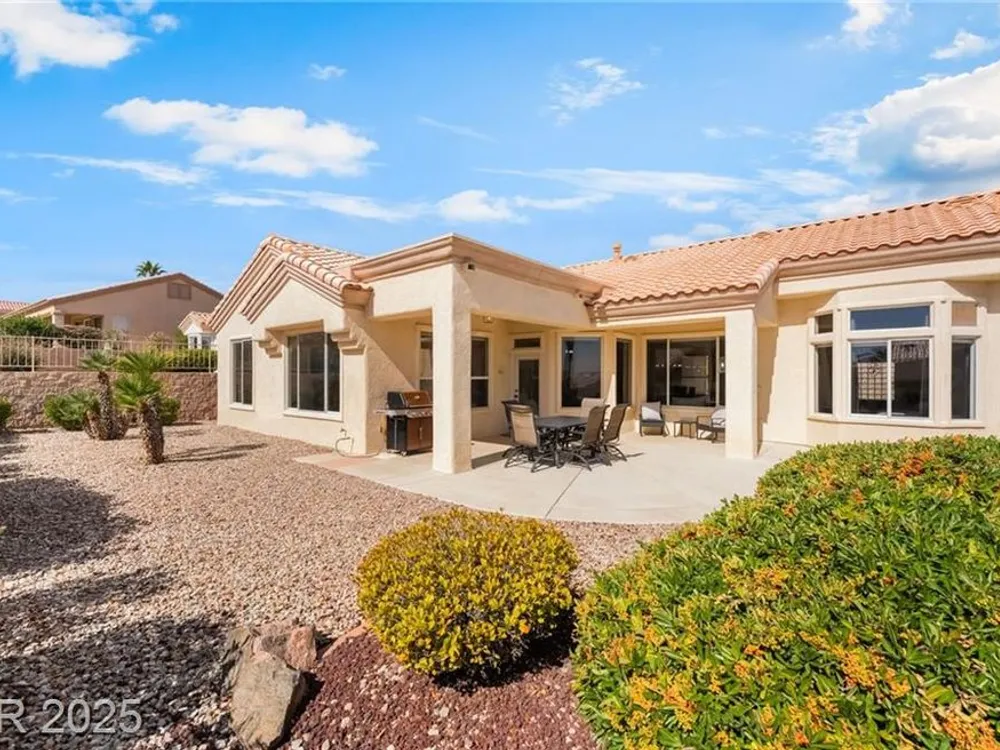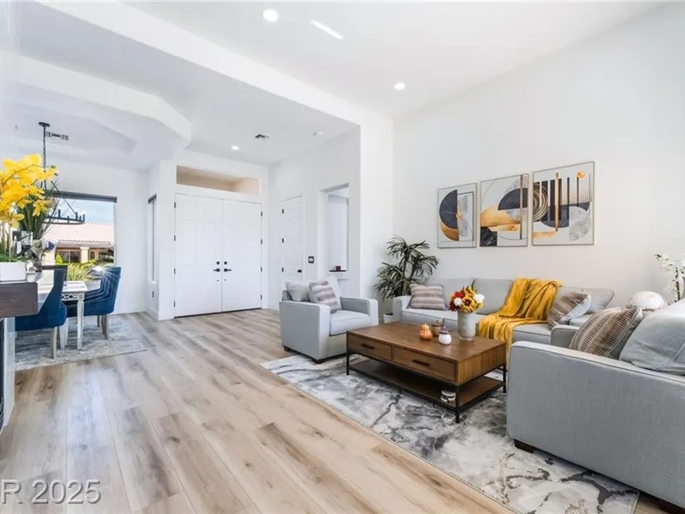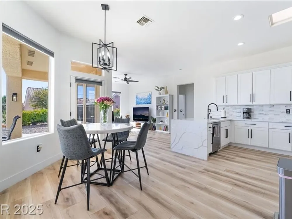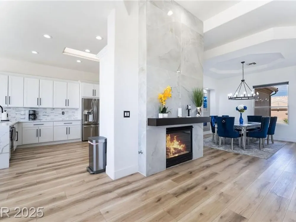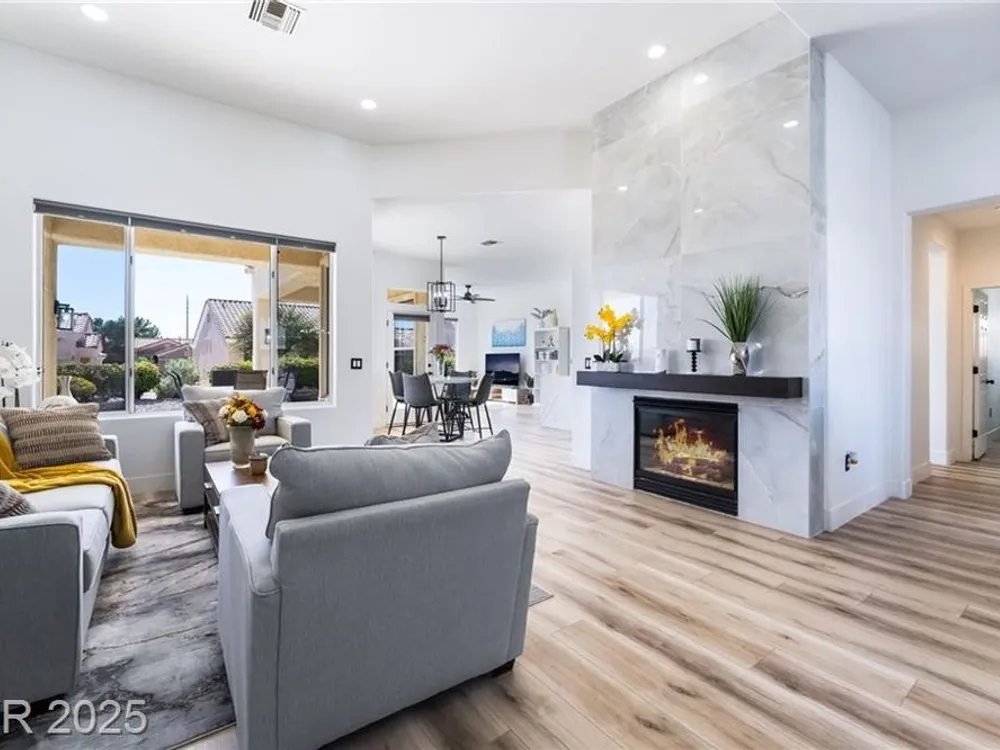 Welcome to your desert oasis in the heart of Sun City Summerlin! Perfect for snowbirds or those seeking a peaceful full-time residence, this fully remodeled & move-in ready home blends elegance, comfort, & modern design. Step inside to discover new fresh interior paint, custom white shaker cabinets, quartz countertops, luxury vinyl plank flooring, plush carpet in the bedrooms, tall 5.5” baseboards, stainless steel appliances, & stylish contemporary fixtures throughout. The open-concept layout is ideal for entertaining or relaxing after a day on the golf course or at one of the community’s many recreation centers. The spacious primary suite offers a private retreat w/a spa-inspired bathroom featuring a freestanding soaking tub, large step-in shower, & its own cozy fireplace. Enjoy the Las Vegas sunshine from your beautifully landscaped yard, just minutes from premier golf, dining, shopping, & entertainment. Live the resort lifestyle you’ve dreamed of—welcome home to Sun City Summerlin!