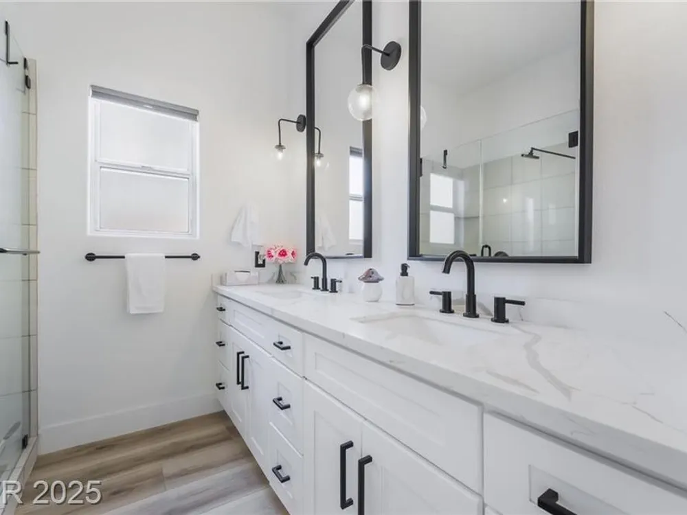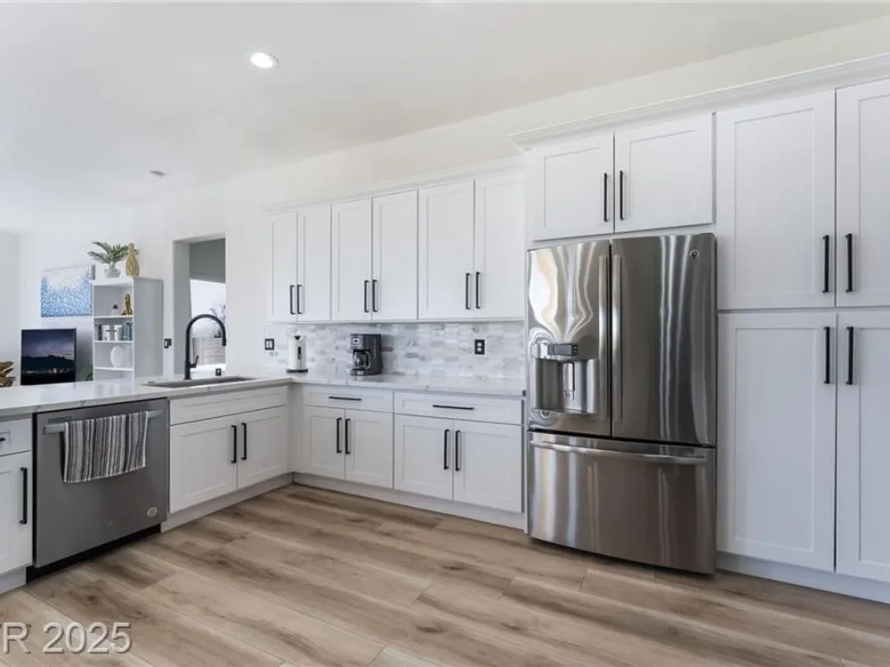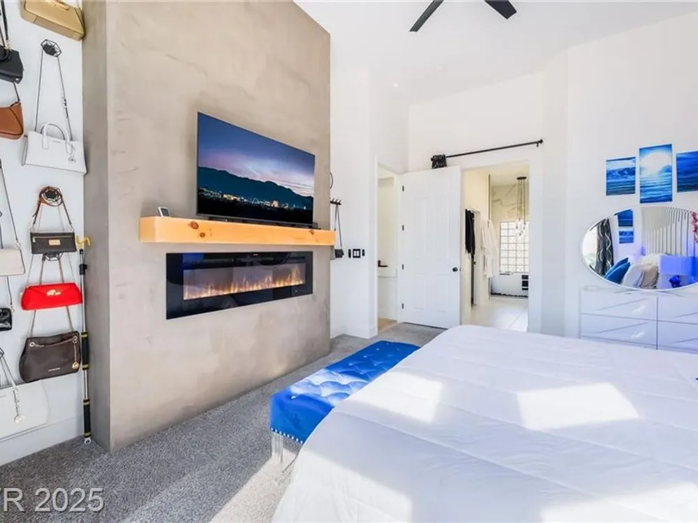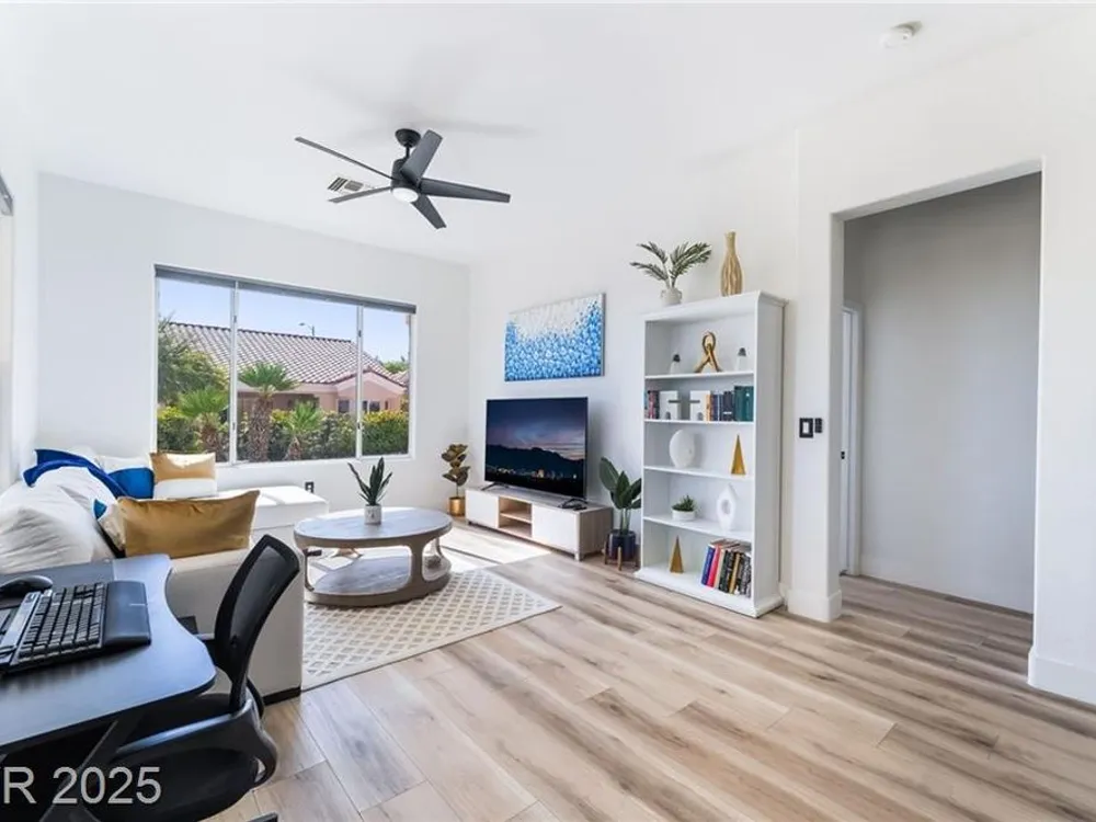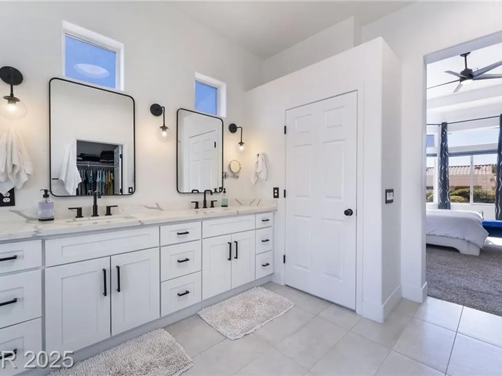 Welcome to your desert oasis in the heart of Sun City Summerlin! Perfect for snowbirds or those seeking a peaceful full-time residence, this fully remodeled & move-in ready home blends elegance, comfort, & modern design. Step inside to discover new fresh interior paint, custom white shaker cabinets, quartz countertops, luxury vinyl plank flooring, plush carpet in the bedrooms, tall 5.5” baseboards, stainless steel appliances, & stylish contemporary fixtures throughout. The open-concept layout is ideal for entertaining or relaxing after a day on the golf course or at one of the community’s many recreation centers. The spacious primary suite offers a private retreat w/a spa-inspired bathroom featuring a freestanding soaking tub, large step-in shower, & its own cozy fireplace. Enjoy the Las Vegas sunshine from your beautifully landscaped yard, just minutes from premier golf, dining, shopping, & entertainment. Live the resort lifestyle you’ve dreamed of—welcome home to Sun City Summerlin!