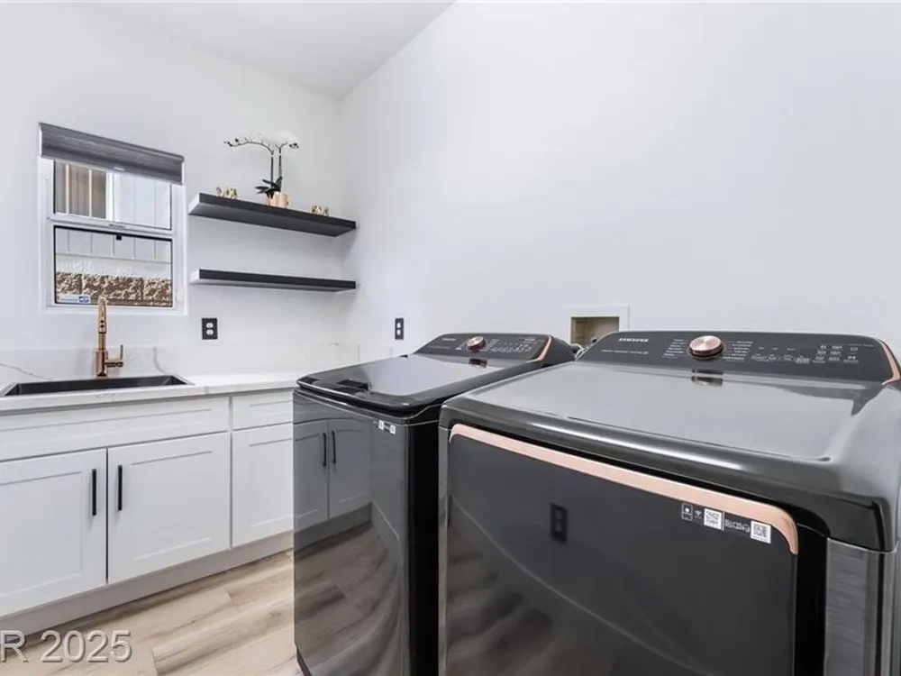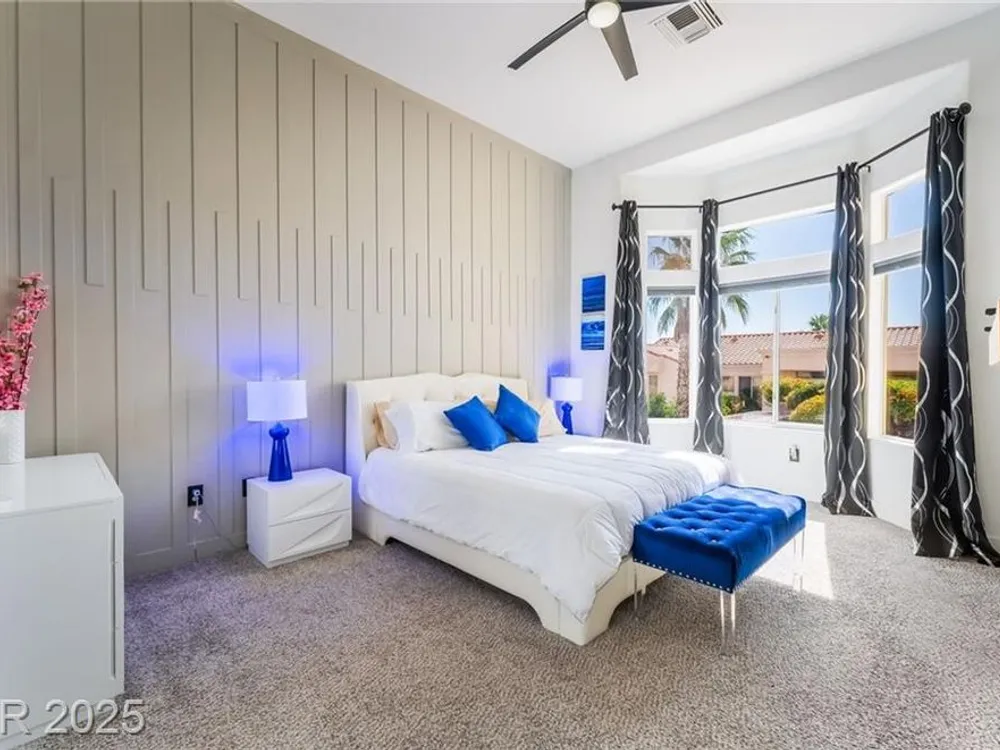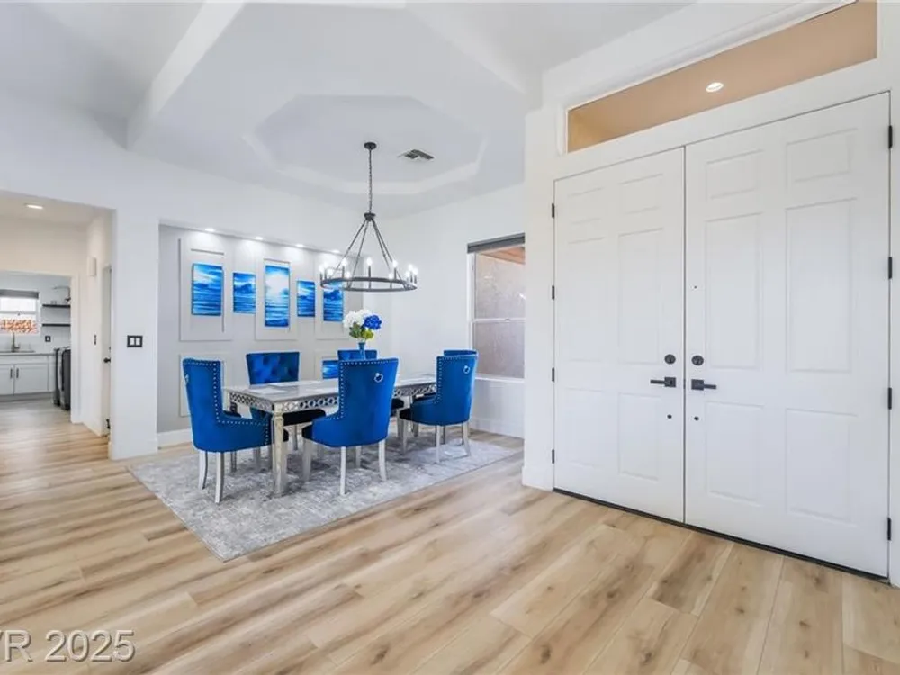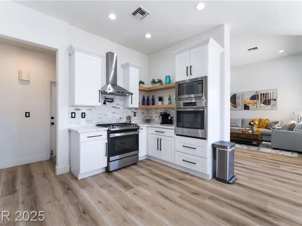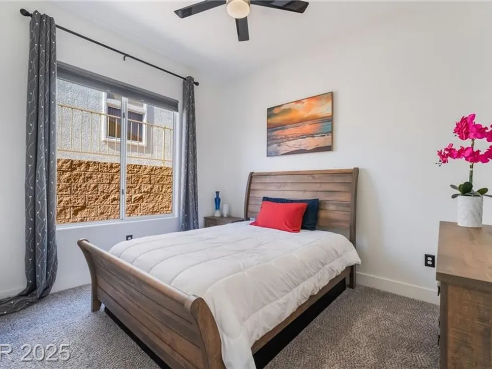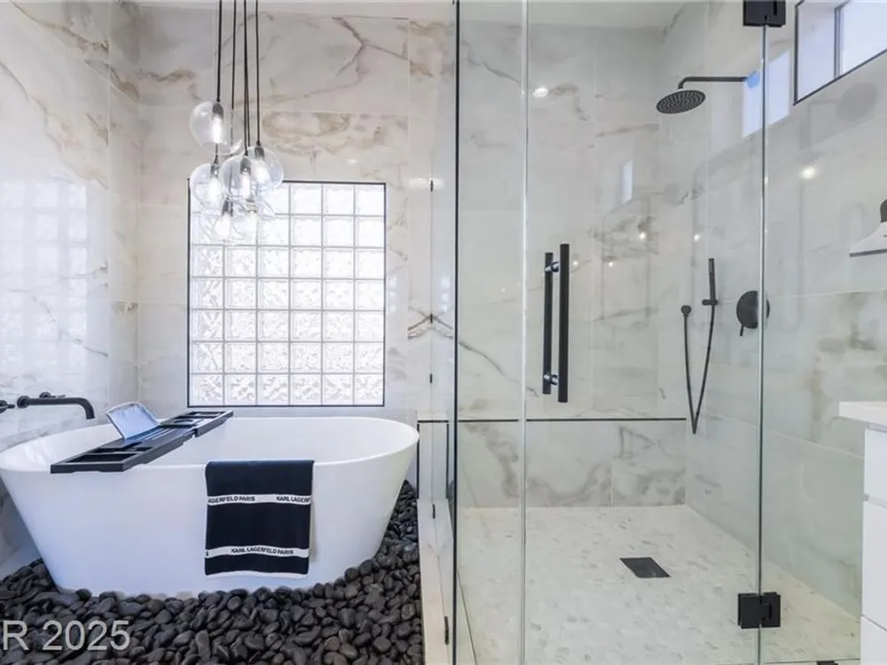 Welcome to your desert oasis in the heart of Sun City Summerlin! Perfect for snowbirds or those seeking a peaceful full-time residence, this fully remodeled & move-in ready home blends elegance, comfort, & modern design. Step inside to discover new fresh interior paint, custom white shaker cabinets, quartz countertops, luxury vinyl plank flooring, plush carpet in the bedrooms, tall 5.5” baseboards, stainless steel appliances, & stylish contemporary fixtures throughout. The open-concept layout is ideal for entertaining or relaxing after a day on the golf course or at one of the community’s many recreation centers. The spacious primary suite offers a private retreat w/a spa-inspired bathroom featuring a freestanding soaking tub, large step-in shower, & its own cozy fireplace. Enjoy the Las Vegas sunshine from your beautifully landscaped yard, just minutes from premier golf, dining, shopping, & entertainment. Live the resort lifestyle you’ve dreamed of—welcome home to Sun City Summerlin!