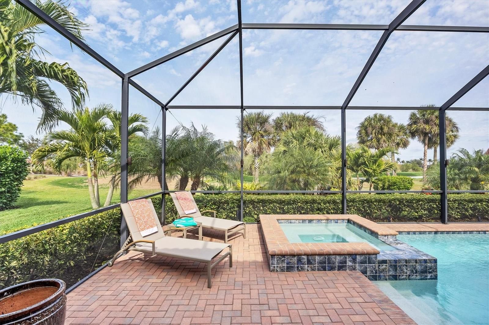 One or more photo(s) has been virtually staged. Welcome to this STUNNING home in the highly sought after SARASOTA NATIONAL GOLF AND COUNTRY CLUB! Come live in this VIBRANT community by letting yourself indulge in the most popular floor plan on the most coveted street in the neighborhood. Sitting at the end of this cul de sac street, this Summerville is sure to please w/tons of upgrades. Offering 3BD/3BA/DEN & 3 CAR GARAGE. TWO GOLF MEMBERSHIPS COME WITH THIS HOME, NO INITIATION FEE REQUIRED. When you drive up to the home curb appeal is off the charts w/ pavered drive/sidewalk, upgraded brick front, & leaded glass double doors all surrounded by beautifully designed tropical landscaping. Upon entering the home you will notice the rectangle plank PORCELAIN TILE flooring that runs throughout the main areas of the home. Walk through the foyer & come to the heart of the home-the GREAT ROOM, which brings living area, kitchen,& dining together in a functionally elegant combination. Gourmet Kitchen has GRANITE countertops, STAINLESS STEEL APPLIANCES (upgraded oven/microwave convection oven),extra large stainless steel FARMERS SINK, & easy pot fill HANSGROHE faucet. PENDANT LIGHTS, EXTRA RECESSED LIGHTS, & UNDER CABINET LIGHTING, makes sure the Chef doesn't miss a beat. KINETICO H2O double water filtration system & Revers Osmosis for drinking water. Crown molding, high end lighting & fixtures throughout home. Expansive Living room has gracious coffered ceiling design,& sliding doors out to the VERY PRIVATE,VERY SPACIOUS lanai & HEATED PRIVATE POOL/SPA. Lots of different areas to enjoy-float in the pool, soak in the hot tub, lounge in the sun, sit undercover rain or shine & enjoy the tropical landscaping all around the lanai creating your own private oasis. STORM SMART, REMOTE CONTROL HURRICANE SCREEN for lanai. Furniture can all be left undercover and protected. Master bedroom w/tray ceiling, sliders to lanai & has en suite bathroom that is a dream. Two separate vanities for individual space & a wondrous double shower that will elevate your senses. LARGE WALK IN CUSTOM DESIGNED CLOSETS. Guest bedroom 1 has en suite bathroom while guest bedroom 2 has its own private space and bathroom right next door. Laundry room offers wash sink & extra cabinets. 3 CAR GARAGE has lots of room for cars and storage. Two heavy duty storage racks to keep things off the floor. EV PLUG in garage(charger ready). HAVE YOU SEEN THE PROPERTY AT NIGHT? Additional landscape lighting in front, back, & on lanai. Improved irrigation system with Hunter remote control for programmed scheduling. Added additional sprinkler heads in front and back. No expense was spared on this GORGEOUS home so MAKE YOUR APPOINTMENT TO SEE IT TODAY!! Sarasota National is a magnificent community w/over 1300 acres designated for preservation, conservation, lakes, & open space with amazing views, Proclaimed as an Audubon International Certified Sanctuary, making it the most gorgeous and enjoyable golf course to play at in the area. Offering resort style amenities w/huge resort style pool/ spa,Tiki Bar to serve refreshing drinks & a bite of lunch, tennis courts, pickle ball, Bocce courts, coffee lounge/library/card room/meeting place, 7000 sq ft fitness facilities offering classes and day spa, & a 30,000 sq ft Clubhouse with dining and spectacular views. 18 Hole championship golf course surrounded by native wetlands and preserves provides an exhilarating and dramatic back drop for your golfing adventure. Come find YOUR Florida lifestyle TODAY!