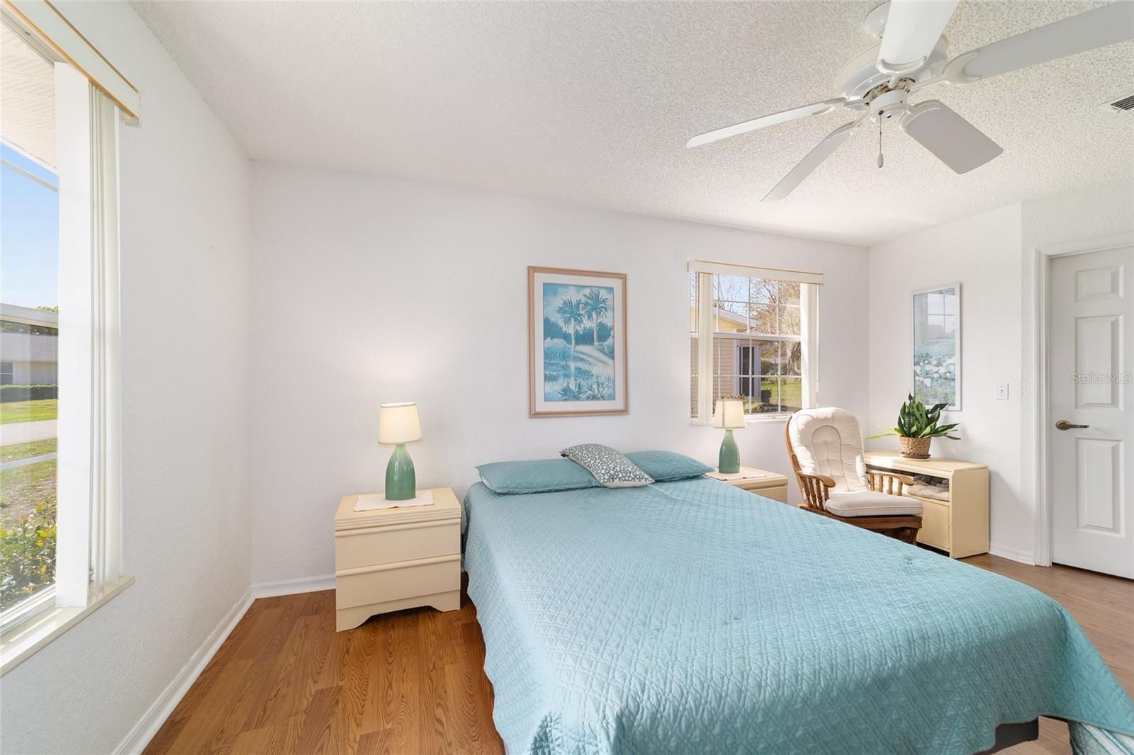 - Ceiling Fan(s), Eat-in Kitchen, High Ceilings, Solid Surface Counters, Walk-In Closet(s), Window Treatments