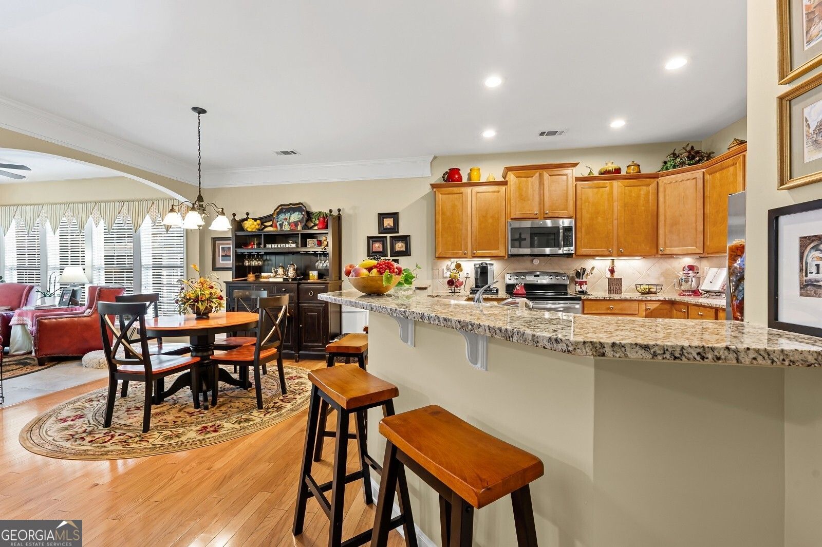 Welcome to 1081 Spring Station Road, a beautifully maintained and move-in ready home in the sought-after Del Webb at Lake Oconee community, offering privacy with wooded views and no neighbors behind. This immaculate property features the following updates/upgrades, a newer roof (5 yrs), new HVAC ( 1 yr), newer hot water heater ( 2 yrs) with instant hot water, new gutter guards, full house wrap, and a new security system. Interior highlights include a spacious living room with wood-burning fireplace (convertible to gas), granite countertops, newer appliances, wood flooring in main areas, tile in baths and laundry with sink, carpeted bedrooms, custom cabinets in the office/flex room, ceiling fans & new LED can lights throughout, and an all-brick front with timeless curb appeal. The master suite boasts a trey ceiling with a beautiful crystal light fixture & fan, walk-in closet, and ensuite bath with a large garden tub. The garage offers custom flooring and exterior access with a pad. Ideally located near St. Mary's Good Samaritan Hospital (2 miles), Publix (3 miles), and urgent care options, this home also provides access to Del Webb's unmatched amenities including a 21,000 sq. ft. clubhouse, fitness center, indoor heated pool, tennis, pickleball, bocce, walking trails, and 1,400 feet of direct lake access with boat slips and storage. With over 30% of the community preserved in its natural state and generous lot spacing, residents enjoy a peaceful, resort-like atmosphere while remaining close to shopping, dining, healthcare, and major cities like Atlanta, Athens, and Augusta within an hour.