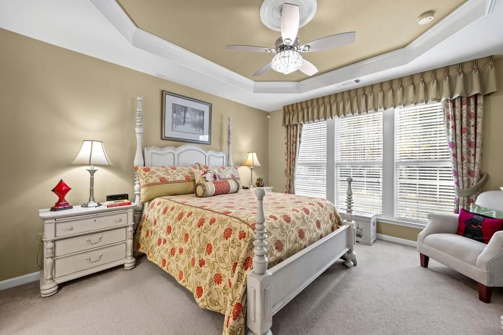 - Pull Down Attic Stairs, Entrance Foyer, High Ceilings, High Speed Internet, Tray Ceiling(s), Walk-In Closet(s), Dual Pane Window(s), Wood Frames, Family Room, Kitchen, Primary Bathroom, Primary Bedroom