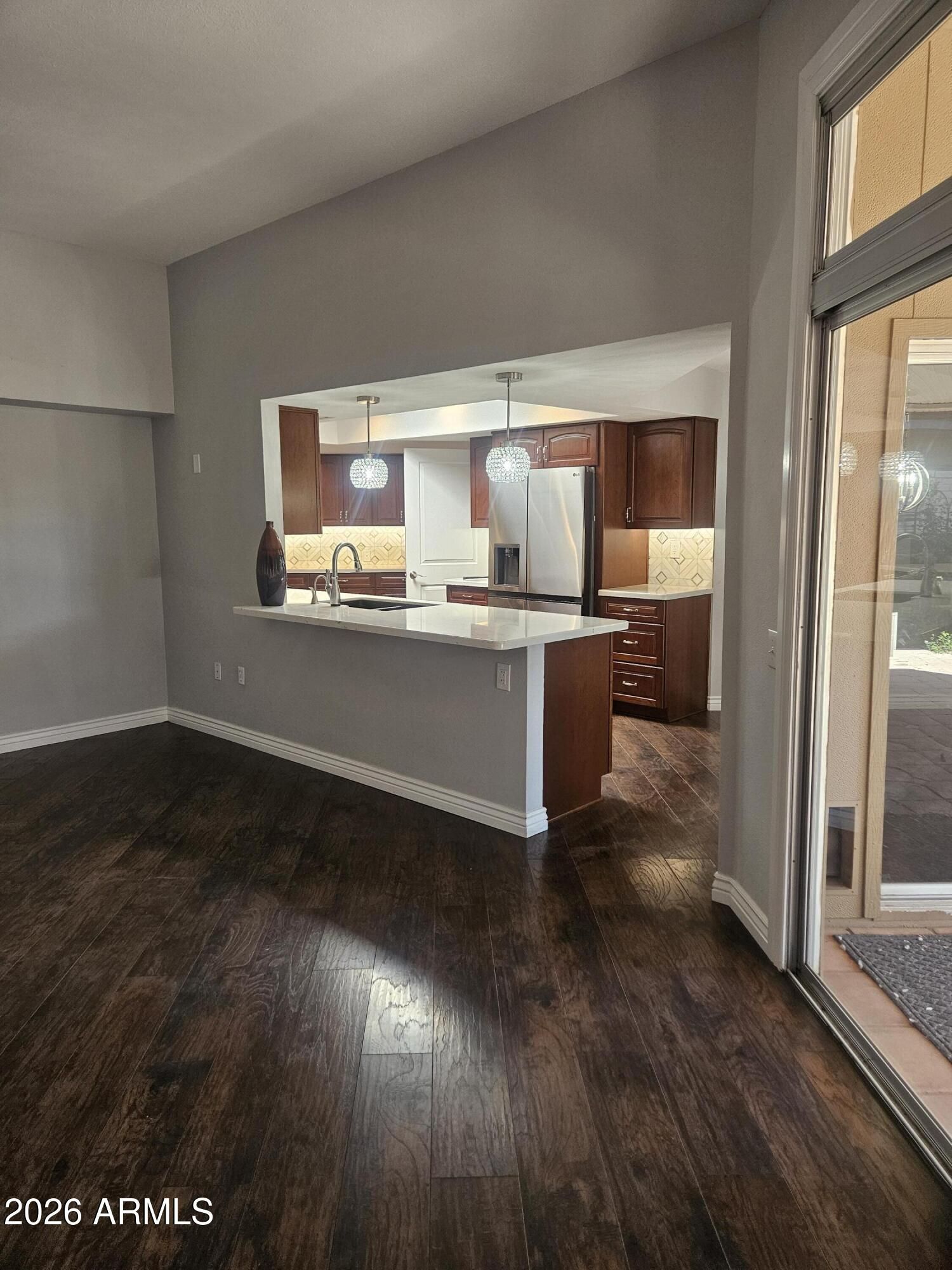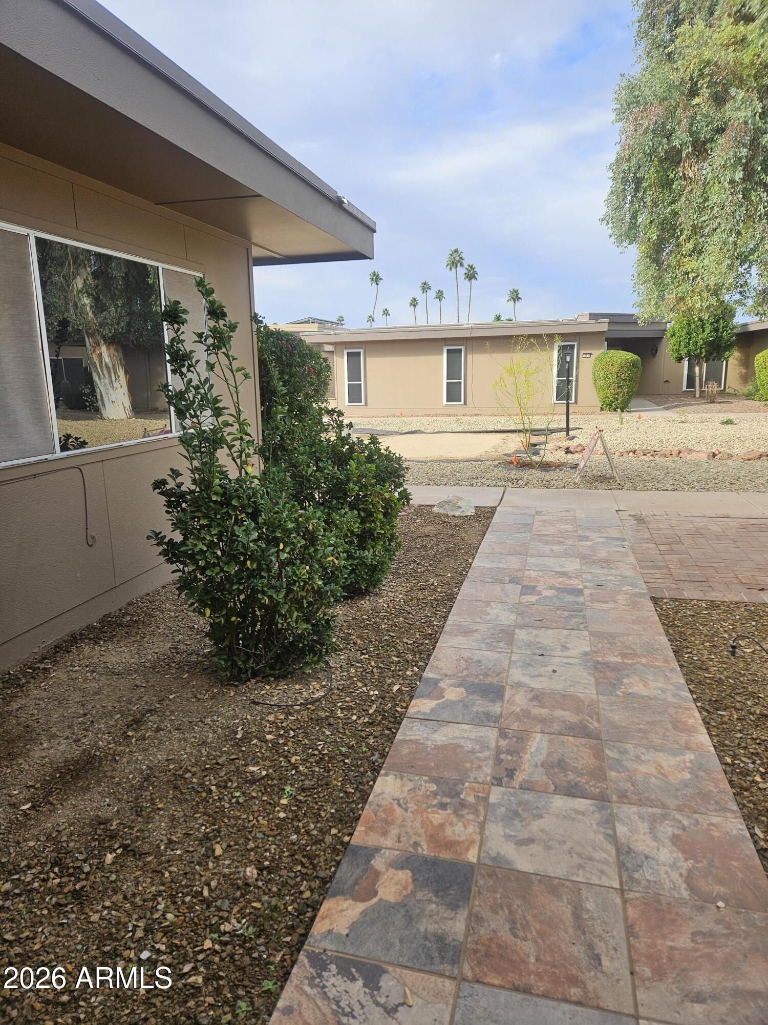 The best home you haven't seen! Come on out and see this beautifully updated garden town home, this spacious unit features over 2100 SF of living space in the heart of Sun City! Soaring ceilings with an open floor plan, this natural light filled home features neutral paint, gorgeous wood laminate flooring (updated in 2017) and tile in all the right places, Carpet in the bedrooms. Updated (2024) classic custom kitchen with quartz counters, plentiful quality cherry cabinetry (self closing drawers), newer stainless appliances and classic back splash. The formal dining and charming living room are great areas for entertaining guests and the breakfast nook with a sliding door that opens to the private patio is perfect for enjoying your morning coffee and awesome for more casual meals! Your new owners suite features a walk-in closet with separate dressing area. Matching cabinetry and counters (bathrooms updated in 2017) are featured throughout this home. Guest room features a walk-in closet and offers its own backyard access! Enjoy relaxing in your completely private garden (complete with fruit tree!) with a large (extended) covered patio. Owned Solar System with backup battery (2018) ensures energy efficiency and savings and makes your electric bill almost non-existent! Owner recently received a rebate check from APS of over $300! Home recently appraised above value. New courtyard under construction.
