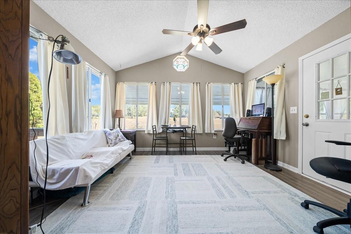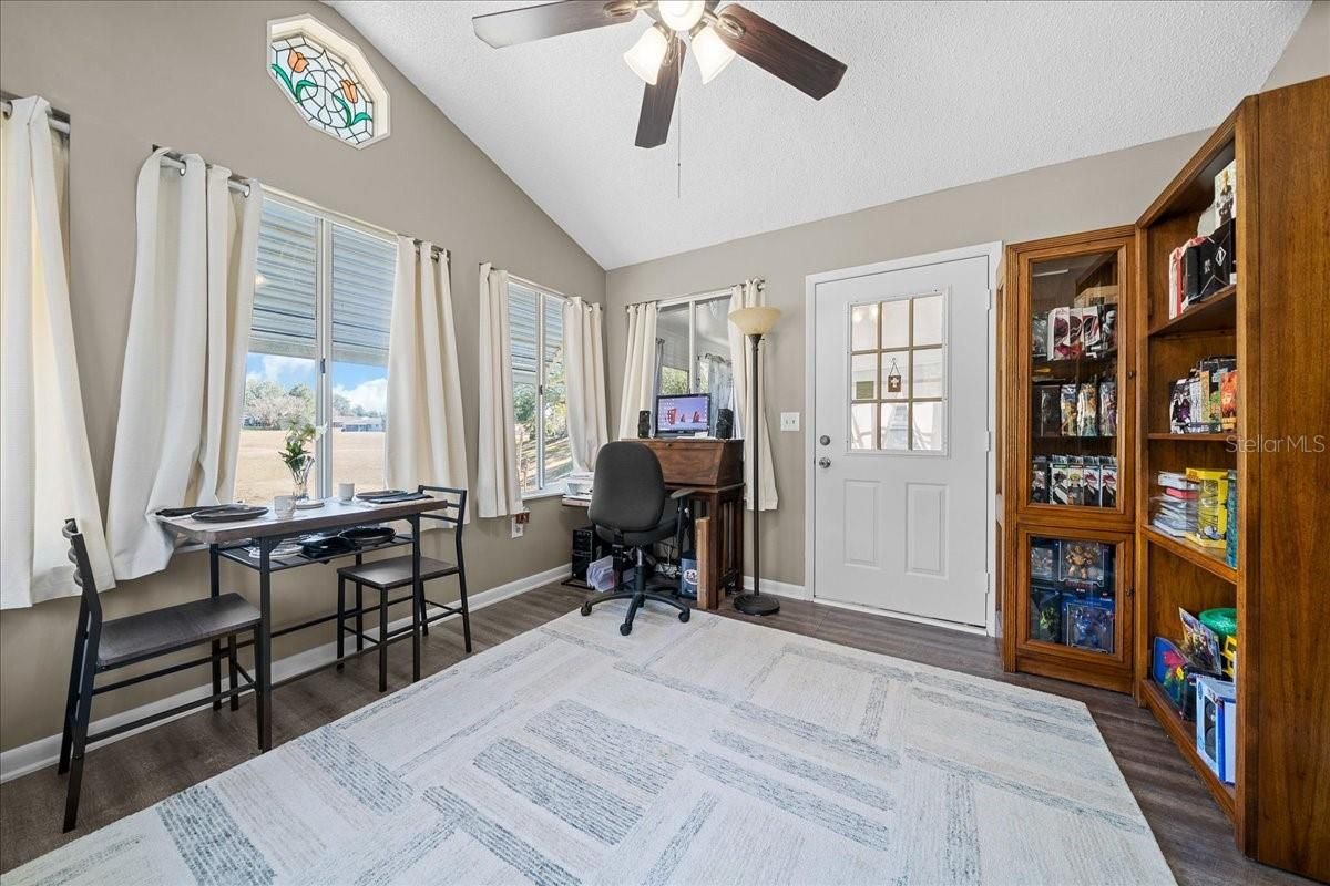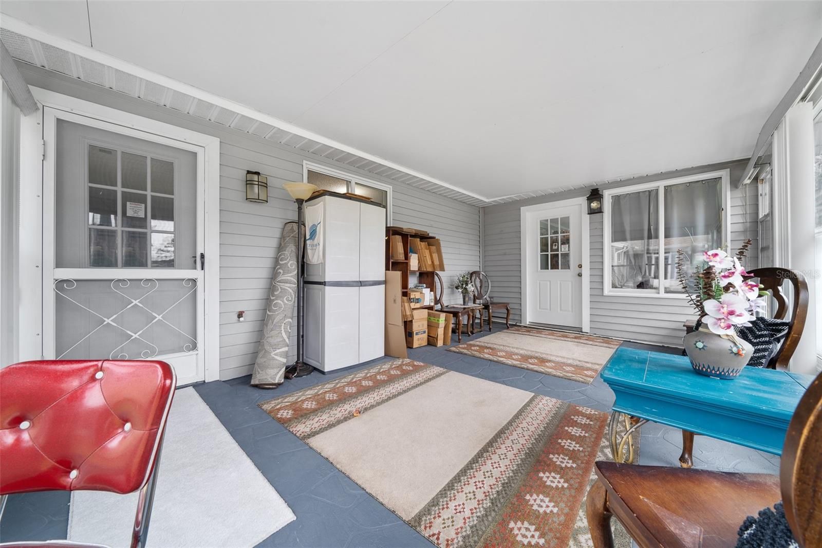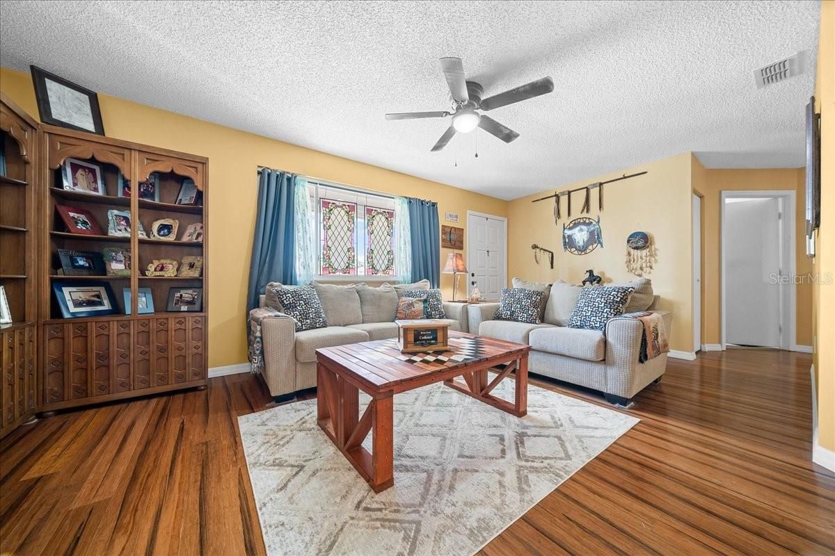 Check out this beautiful, meticulously maintained home located in the highly sought after 55+ gated community of Oak Run. This spacious and functional property offers 2 bedrooms, 2 bathrooms, and a versatile den that could easily serve as a third bedroom. With 1,415 square feet of living space, the open living and dining area features bamboo flooring flowing seamlessly throughout the main living spaces, creating a warm and inviting atmosphere. The kitchen is thoughtfully designed with generous counter space, updated countertops, newly updated cabinetry completed in 2026, stylish open shelving, and a dedicated coffee bar, perfect for everyday living and entertaining. Primary bedroom is generously sized and includes a walk in closet and an updated en suite bath with barn doors and a glass enclosed tile shower. The spacious guest bedroom is conveniently located near the second full bath. Sliding glass doors lead to an air conditioned and heated lanai that provides flexible space ideal for a den, home office, or third bedroom while overlooking a tranquil pond. Just off the lanai is a screened in porch, perfect for enjoying your morning coffee or relaxing while taking in the peaceful surroundings. The 2 car garage includes shelving, a workbench, a laundry area, and access to the screened in porch. Recent updates include a New roof in 2023, New water heater in 2021, New HVAC unit in 2016 & Compressor replaced in 2018, updated electrical panel in 2023, all water lines replaced in 2023, and a 1 year home warranty at closing, making this home truly move in ready. Oak Run offers a vibrant lifestyle with multiple pools, fitness centers, a golf course, a clubhouse, and various dining options. Golf carts are welcome, making it easy to explore and enjoy everything the community has to offer!