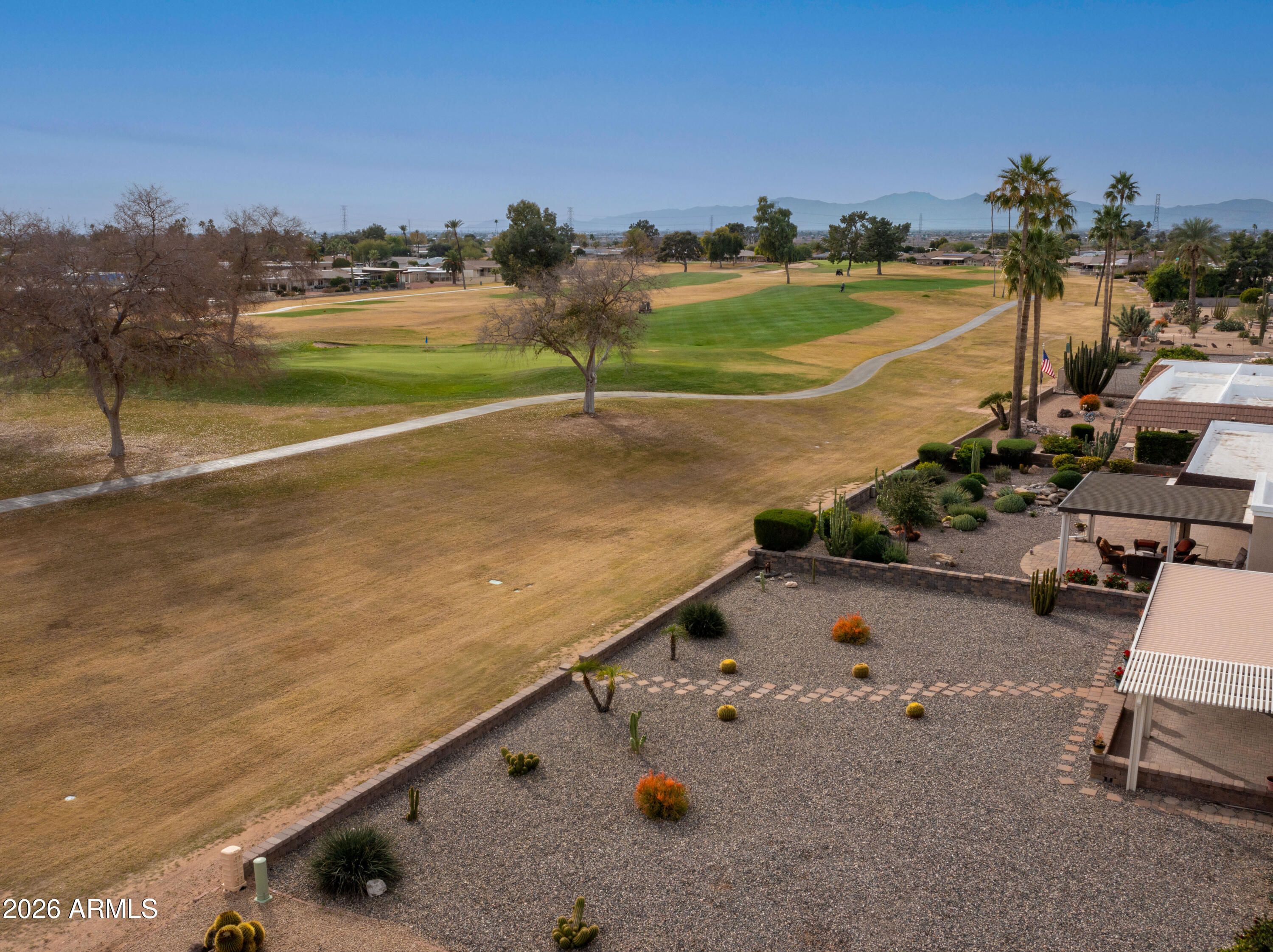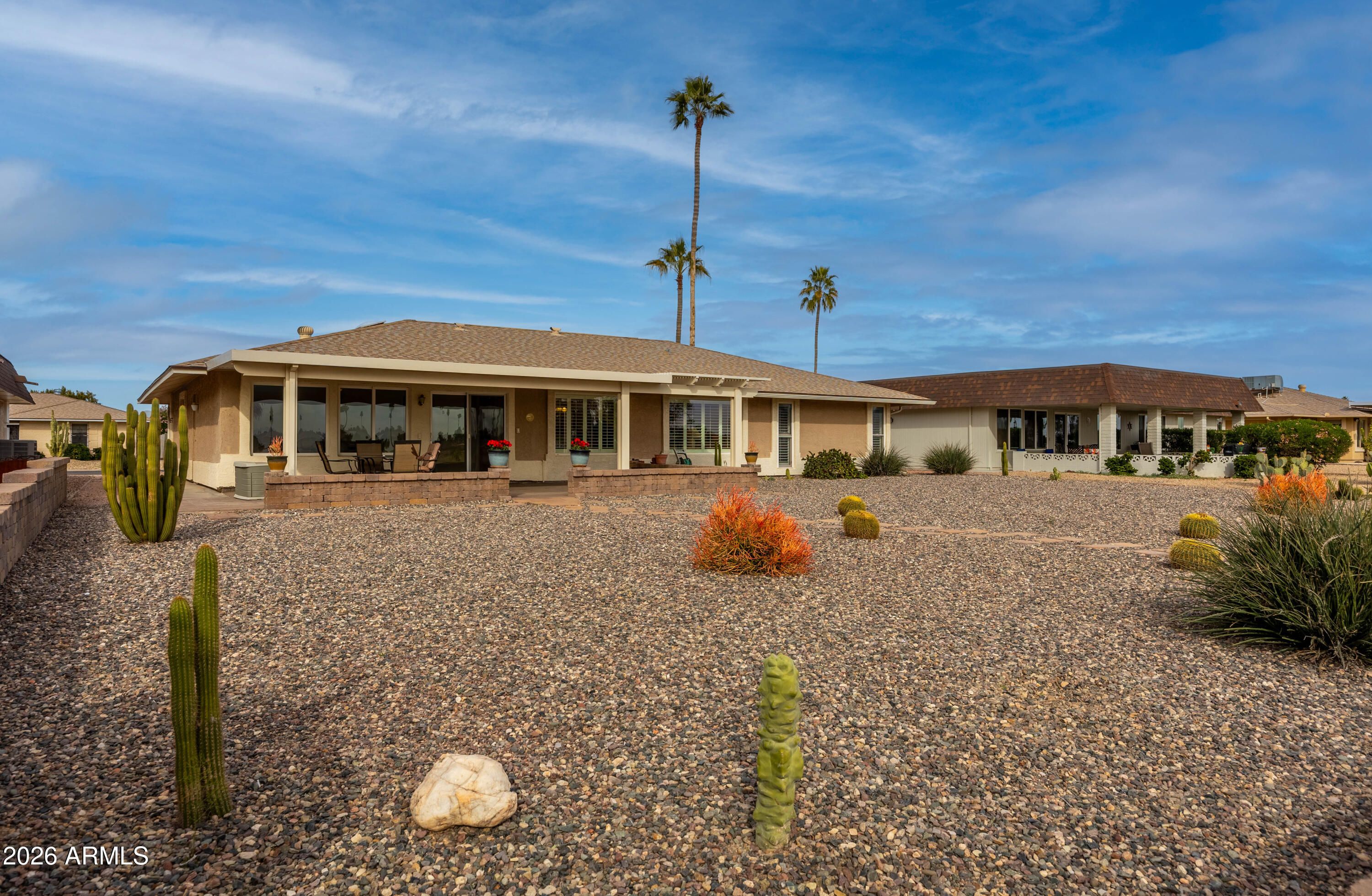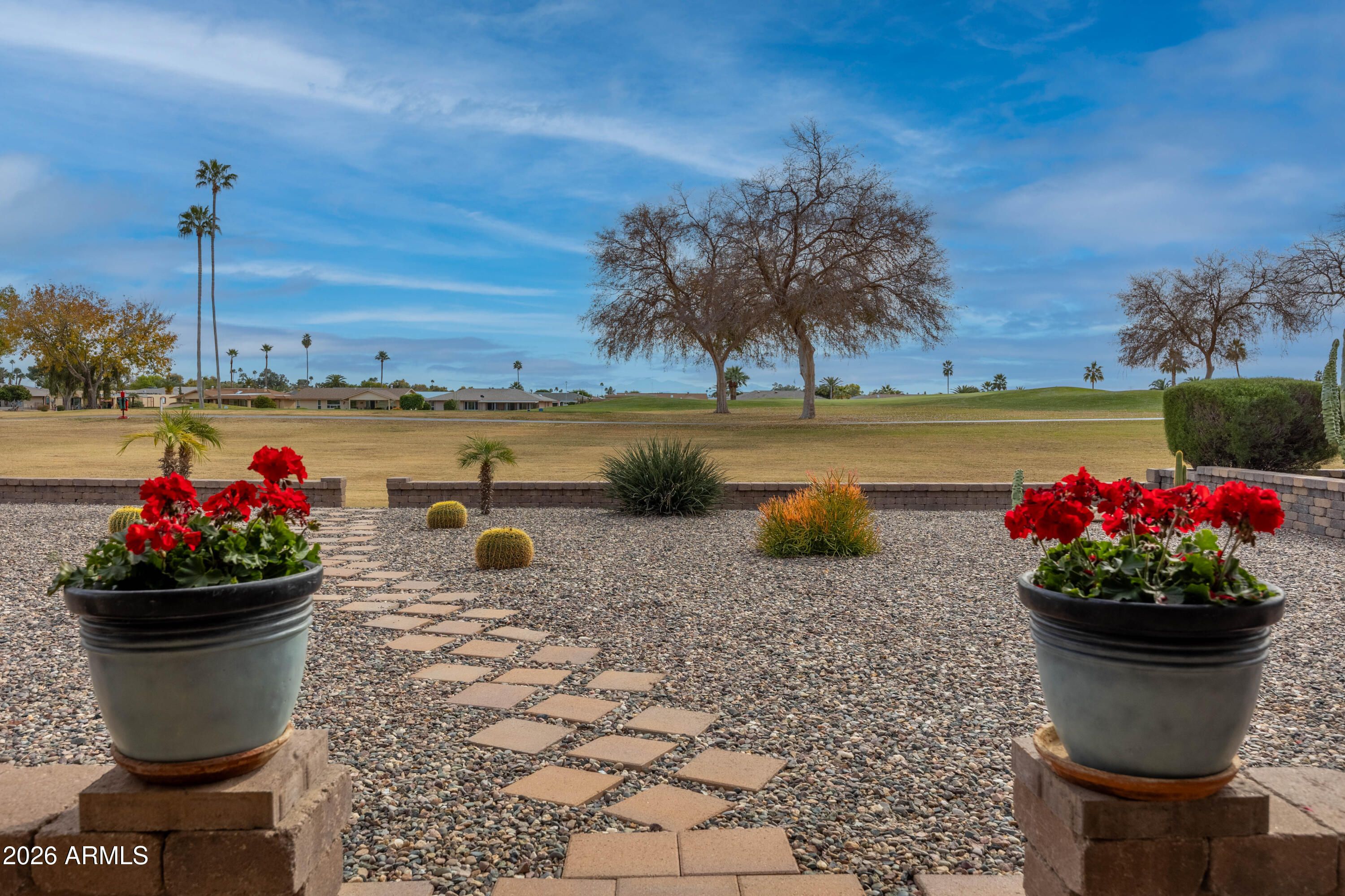 GORGEOUS GOLF COURSE AND MOUNTAIN VIEWS! THE ARIZONA ROOM OPENS TO AN OVERSIZED BACKYARD WITH UNOBSTRUCTED FAIRWAY VISTAS AND AMPLE SPACE TO ENTERTAIN. A SPACIOUS COVERED PATIO W/ PAVERS, PROFESSIONAL LANDSCAPING, NEWER WINDOWS, AND PLANTATION SHUTTERS ALL ENHANCE THIS BEAUTIFULLY MAINTAINED HOME. LARGE PICTURE WINDOWS FILL THE INTERIOR WITH NATURAL LIGHT. THE KITCHEN OFFERS GENEROUS CABINET STORAGE, STAINLESS STEEL APPLIANCES, GRANITE COUNTERS, AND TWO DINING AREAS. THE MAIN BEDROOM FEATURES A CEILING FAN, WALK‑IN CLOSET, AND A 3/4 BATH PLUS A SEPARATE BEAUTY VANITY. SEE THIS HOME TODAY AND MAKE IT YOURS.