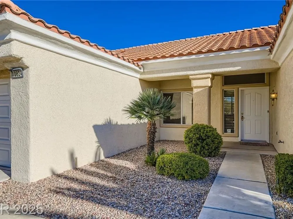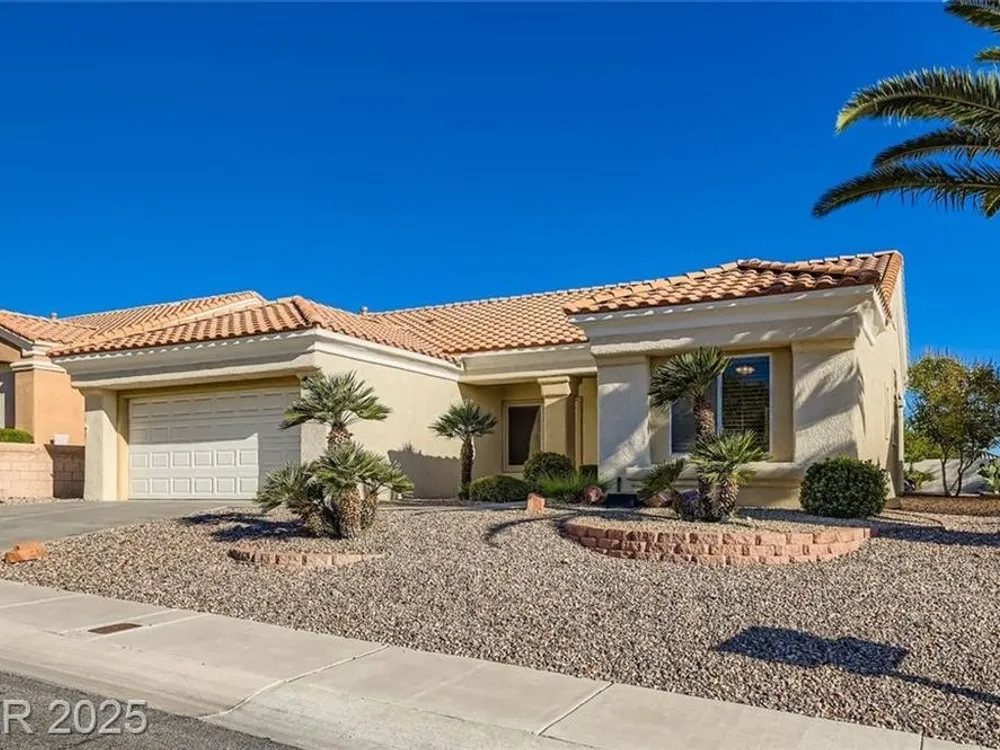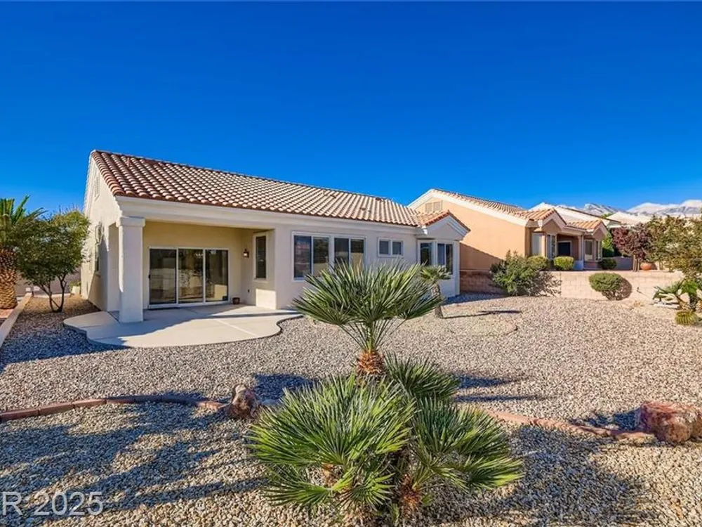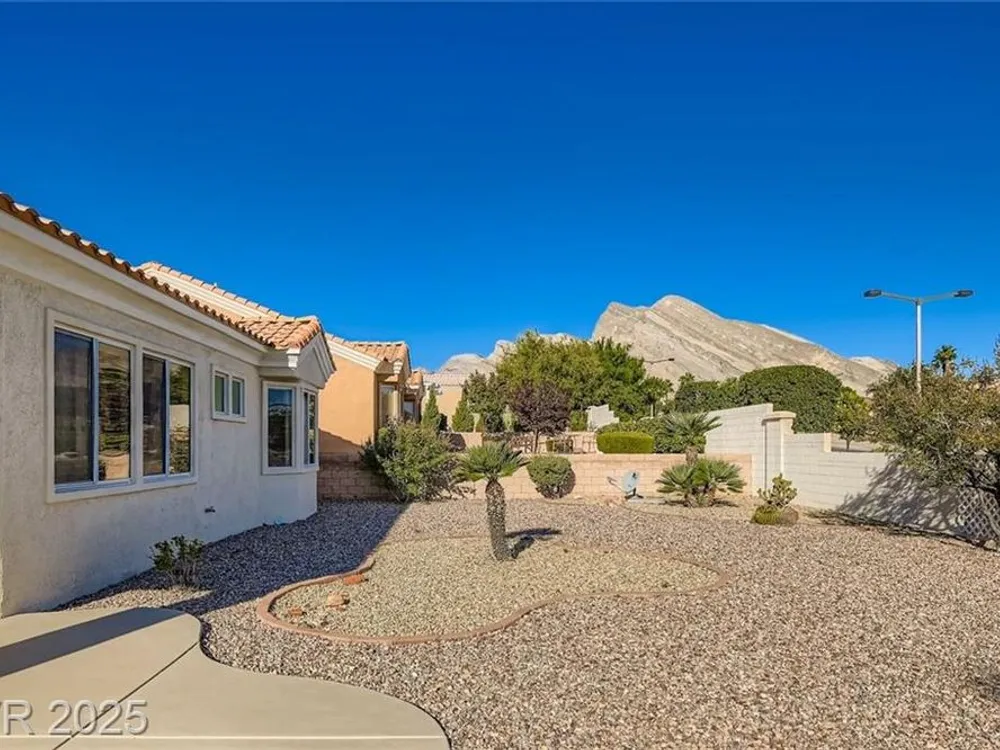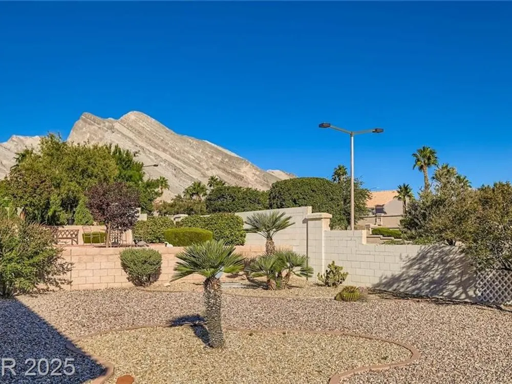 A gem in the heart of Sun City Summerlin! Enjoy unmatched mountain views from your shady covered patio in a private backyard designed for relaxation. This bright and open single-story home offers tile flooring throughout, vaulted ceilings, ceiling fans, window coverings, and decorative potshelves. The spacious living and dining areas flow seamlessly into a sunny kitchen with ample cabinetry, skylights, a breakfast nook, and an oversized slider that fills the space with natural light. Bedrooms are thoughtfully separated for privacy, with the primary suite featuring pop-out windows, a mirrored walk-in closet, dual sinks, and a large walk-in shower. The easy-care desert landscaping enhances the curb appeal and offers a serene outdoor retreat. Located in the sought-after 55+ Sun City Summerlin community, residents enjoy access to world-class amenities, including golf, pools, fitness centers, and social clubs. Come experience resort-style living today!
