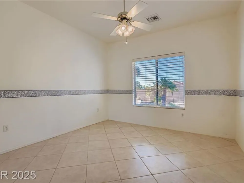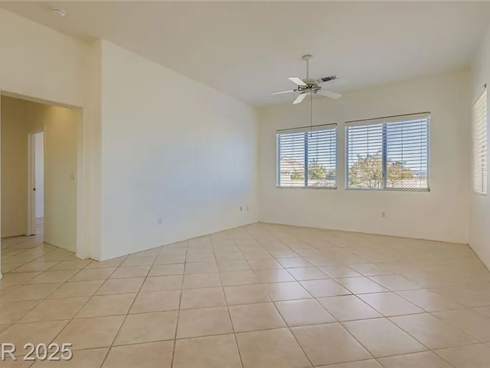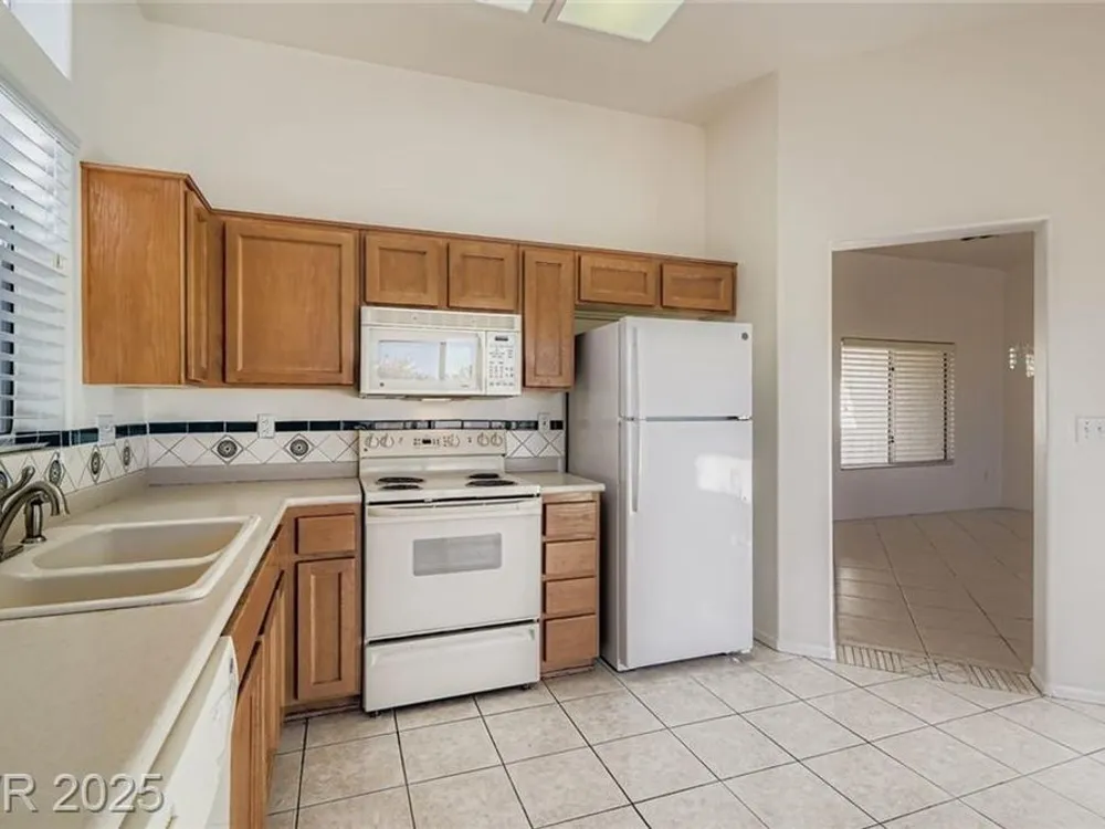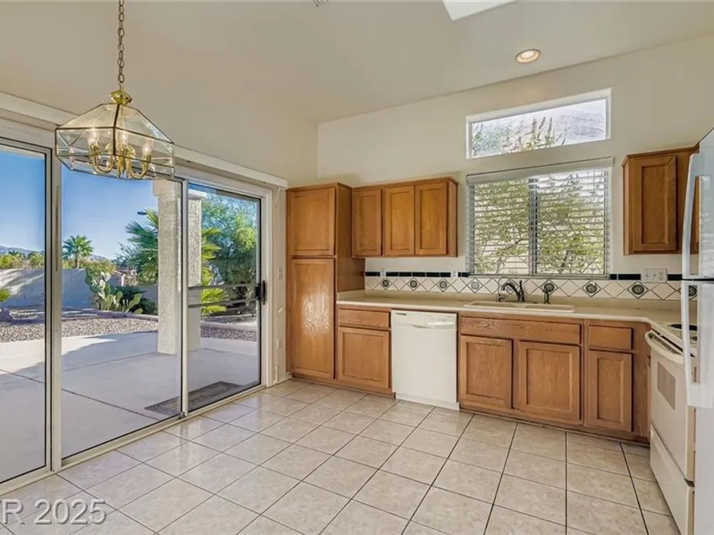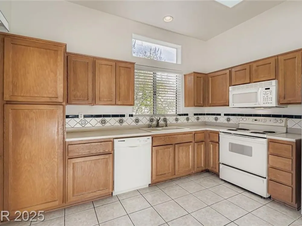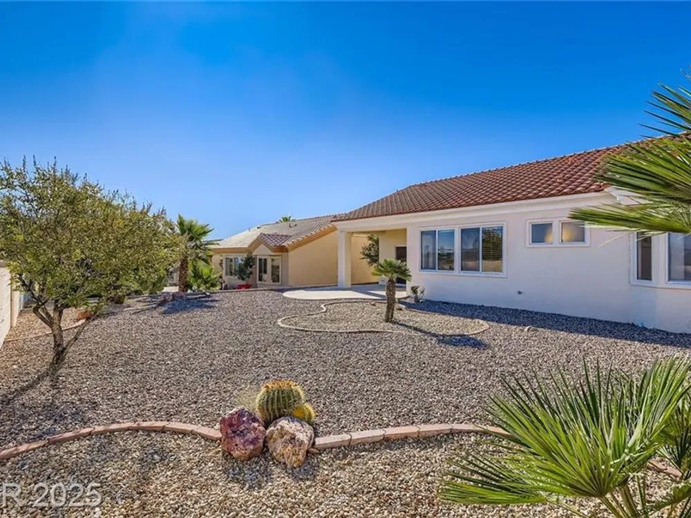 A gem in the heart of Sun City Summerlin! Enjoy unmatched mountain views from your shady covered patio in a private backyard designed for relaxation. This bright and open single-story home offers tile flooring throughout, vaulted ceilings, ceiling fans, window coverings, and decorative potshelves. The spacious living and dining areas flow seamlessly into a sunny kitchen with ample cabinetry, skylights, a breakfast nook, and an oversized slider that fills the space with natural light. Bedrooms are thoughtfully separated for privacy, with the primary suite featuring pop-out windows, a mirrored walk-in closet, dual sinks, and a large walk-in shower. The easy-care desert landscaping enhances the curb appeal and offers a serene outdoor retreat. Located in the sought-after 55+ Sun City Summerlin community, residents enjoy access to world-class amenities, including golf, pools, fitness centers, and social clubs. Come experience resort-style living today!