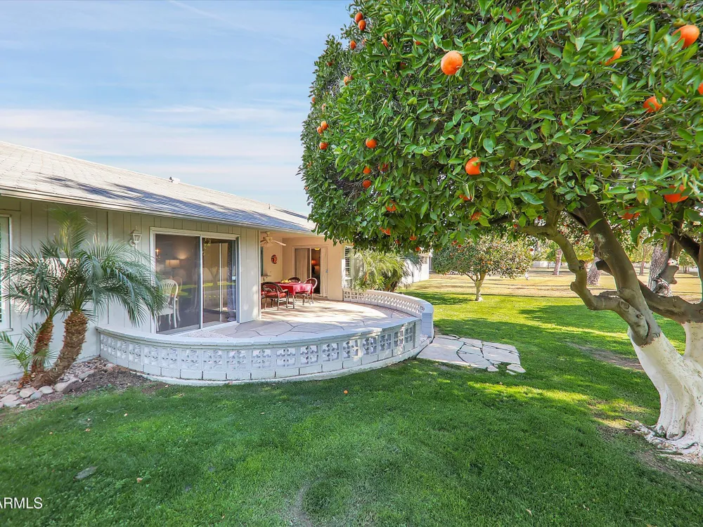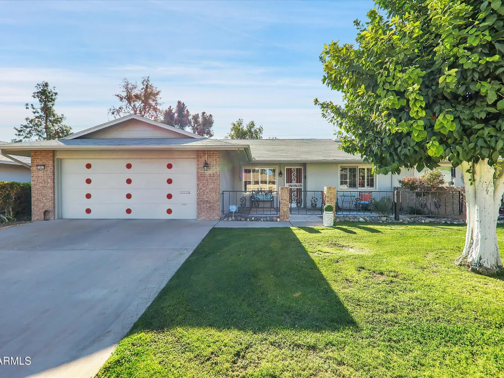 WOW, TASTEFULLY REMODELED HOME IN SUN CITY / LOTS OF SPACE WITH FAMILY & LIVING RMS / THE KITCHEN HAS BEEN REDONE TO INCLUDE GRANITE COUNTERTOPS/ WOOD LAMINATE FLOORS THRU-OUT/ BERBER CARPETED BEDROOMS/ POPCORN GONE/ WOOD SHUTTERS ON THE WINDOWS/ FANS, FIXTURES, FAUCETS AND HARDWARE REPLACED/ BOTHS BATHS UPDATED TO INCLUDE A OVERSIZED WALKIN SHOWER IN THE MASTER/ BOTH BEDROOMS ARE HUGE AND SPLIT FROM EACHOTHER/ MASTER HAS ACCESS TO THE BACK PATIO AND GREENBELT WITH CITRUS TREES/ OVERSIZED GARAGE HAS GOLF CAR RAMP & TONS OF B/I CABINETS/ GREAT AREA JUST DOWN THE STREET FROM SUN CITY COUNTRY CLUB/ SUBMIT ALL OFFERS FOR OWNERS CONSIDERATION