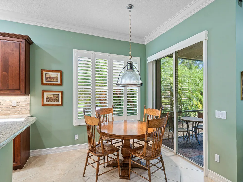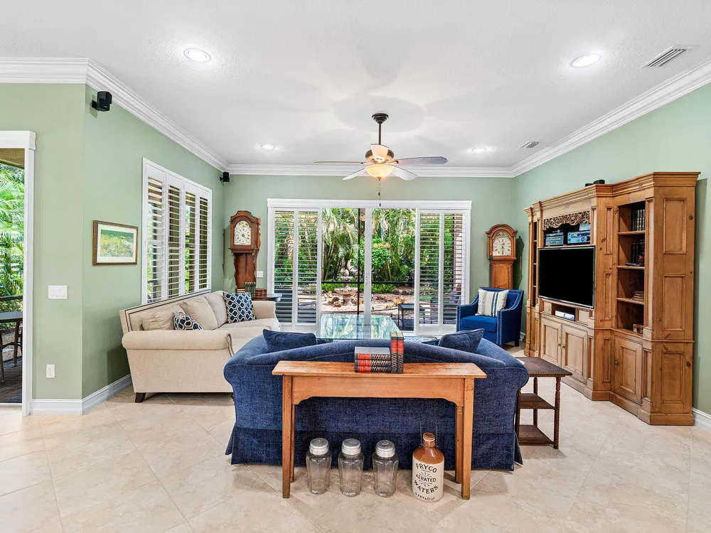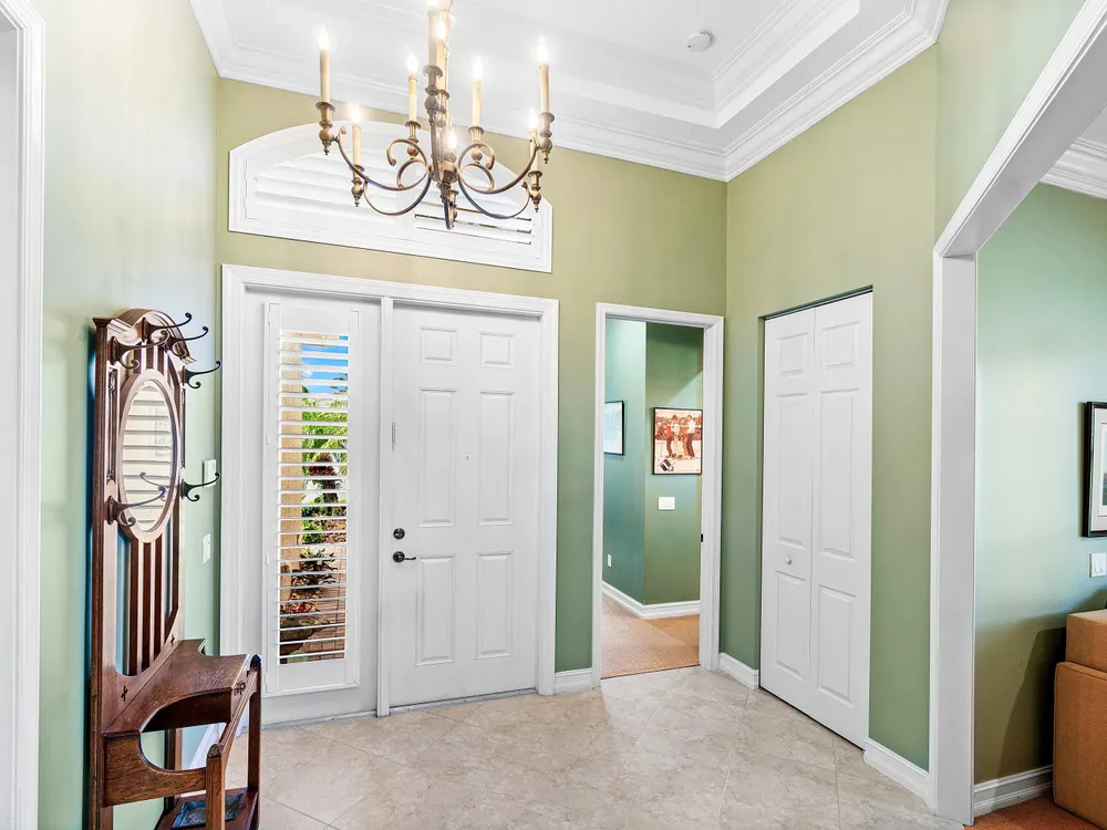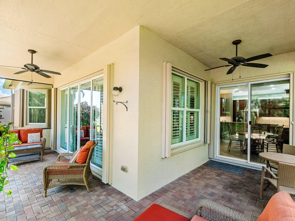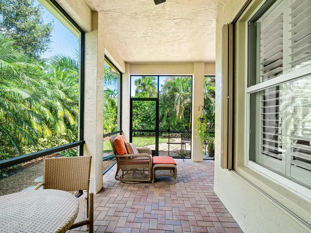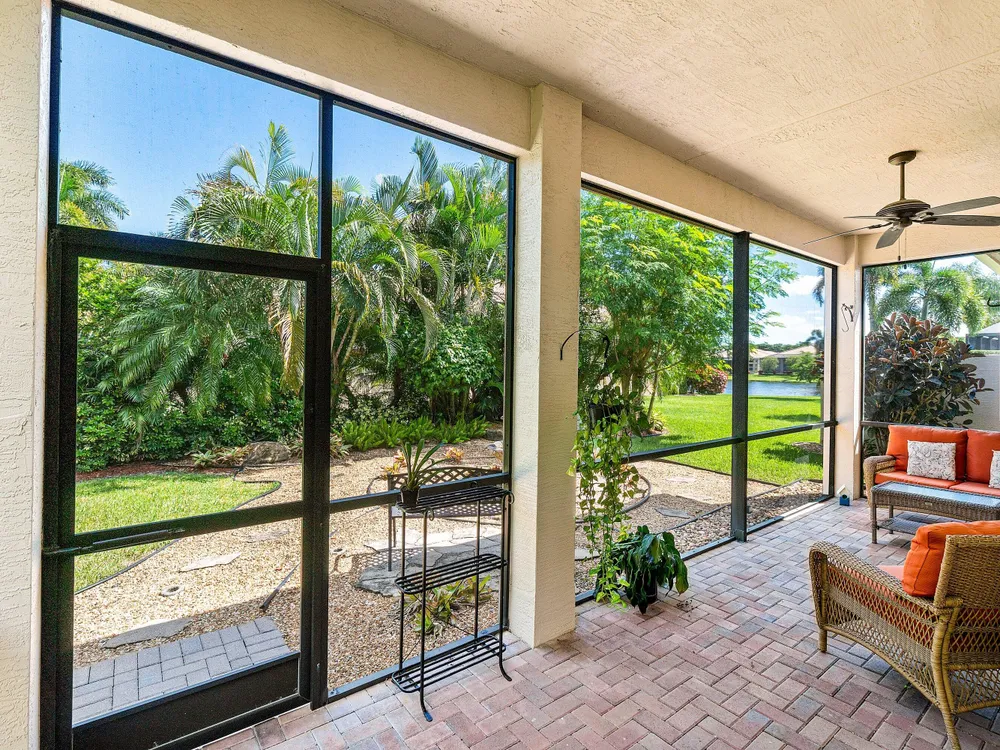 Charming Atlantic Grand features 2 bedrooms + den, 2.5 baths and a screen-enclosed patio overlooking a beautifully landscaped and private backyard with a partial water view. Upgrade highlights include neutral tile on the diagonal throughout main living areas and Den, tons of kitchen and bath upgrades, custom closet systems and upgraded vanities in the Primary suite, crown molding throughout, hi hats, plantation shutters, and accordion shutters. Please call for details on Valencia Reserve clubhouse renovations including renovation renderings. HOA Fee includes exterior painting of house, lawn care, alarm monitoring, cable and internet.