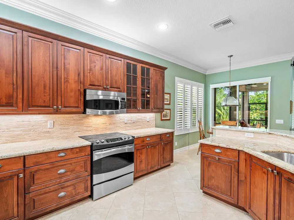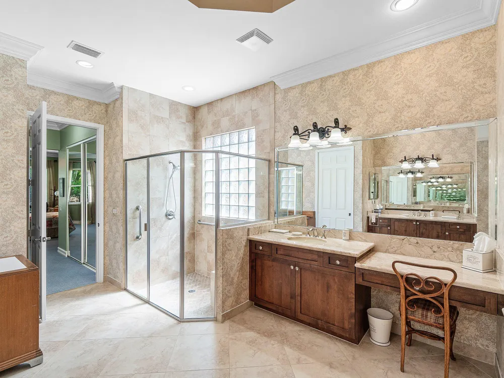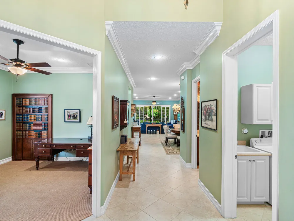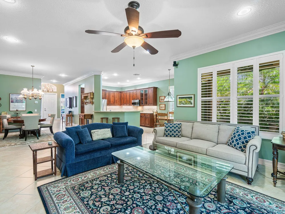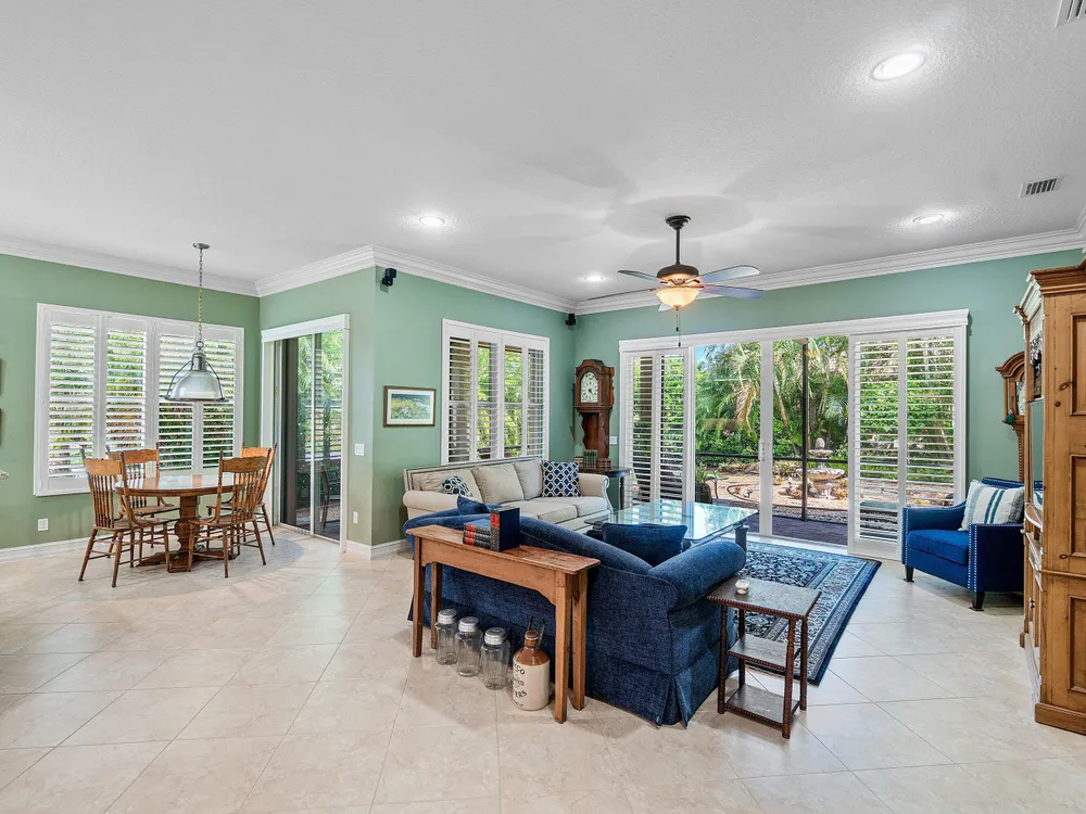 - Entrance Foyer, Split Bedrooms, Walk-In Closet(s), Home Office, Great Room, Kitchen/Dining Combo, Eat-in Kitchen, Blinds, Dual Sinks, Primary Downstairs, Separate Shower, Storm Shutters